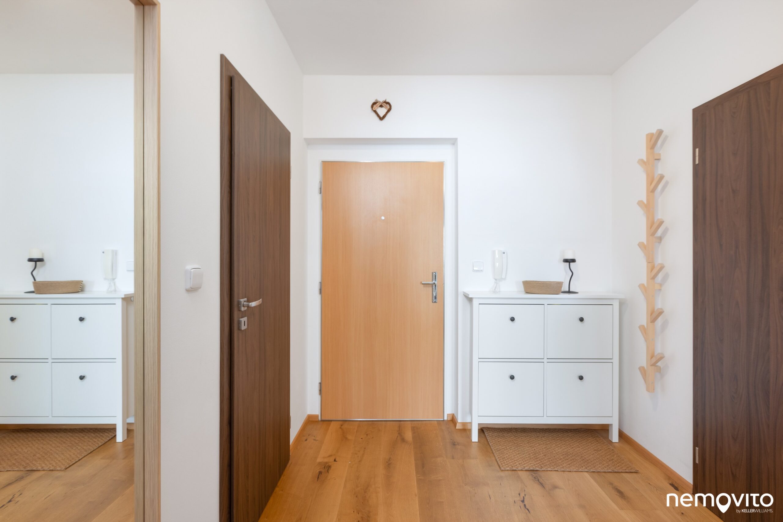 Z chodby je přístupná velmi cenná místnost, kterou je samostatná komora o velikosti 4,7 m2. Znamená to tedy, že například kola, kočárek nebo cokoliv dalšího, co se hodí mít po ruce, můžete mít přímo v bytě.