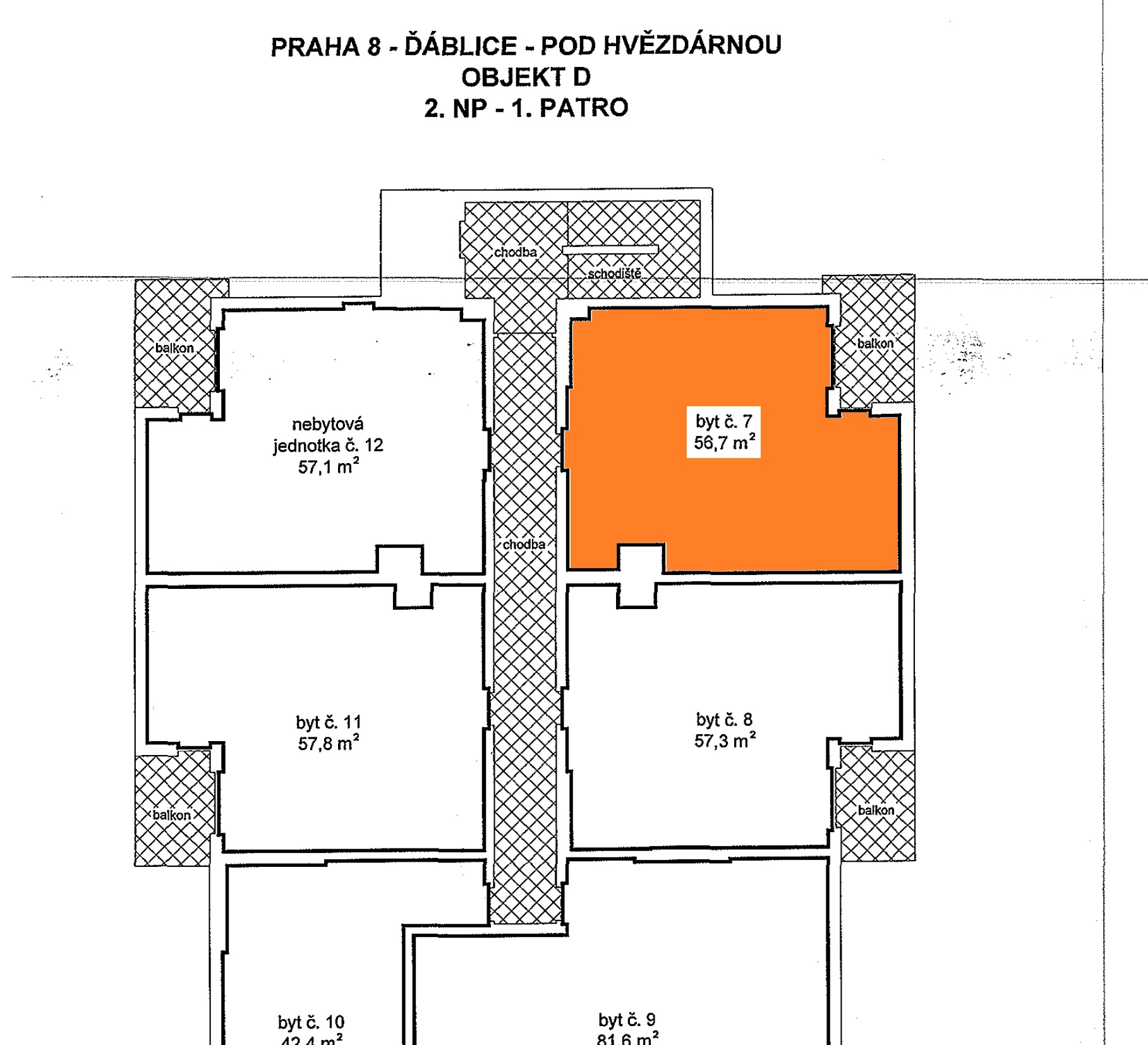 56,7 m2 byt | 7,6 m2 balkon | 3,5 m2 sklep