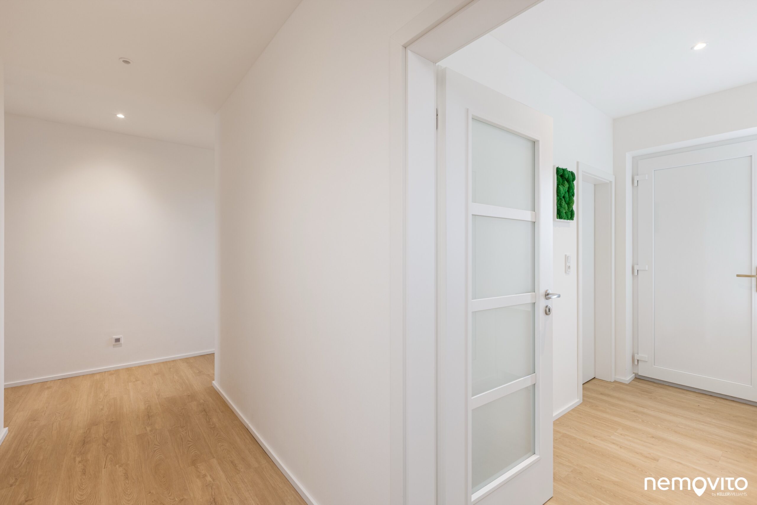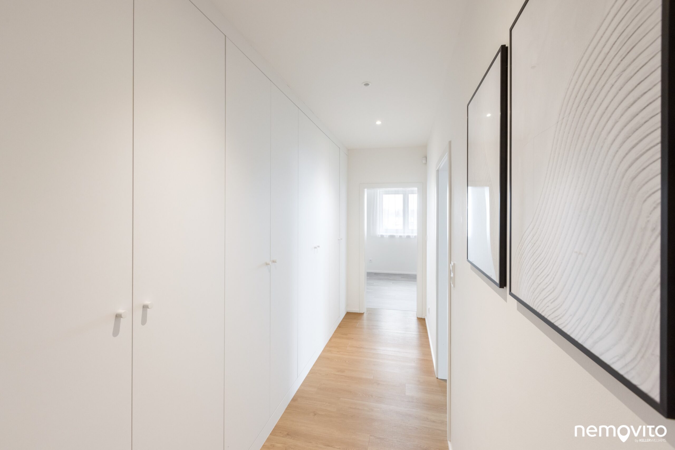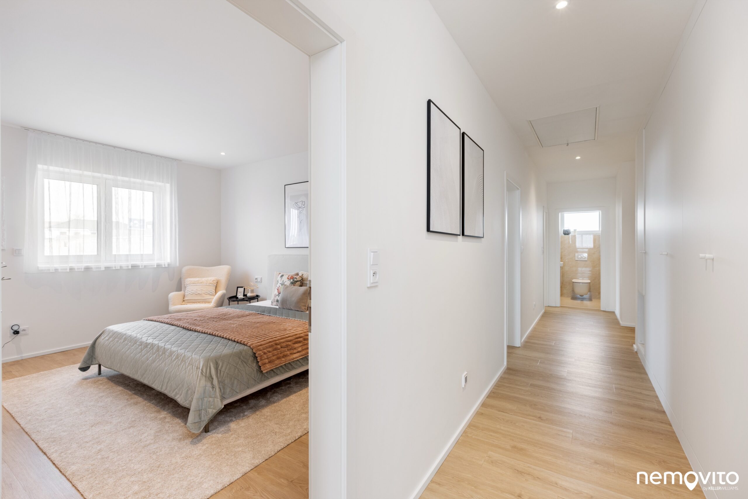 Na první fotce vlevo je vidět vstup do pracovny. To oceníte, pokud vám k domů často chodí pracovní návštěvy, které tam nemusí trajdat přes půl domu. Na druhé fotce je pak chodba směrem k ložnicím a koupelně.