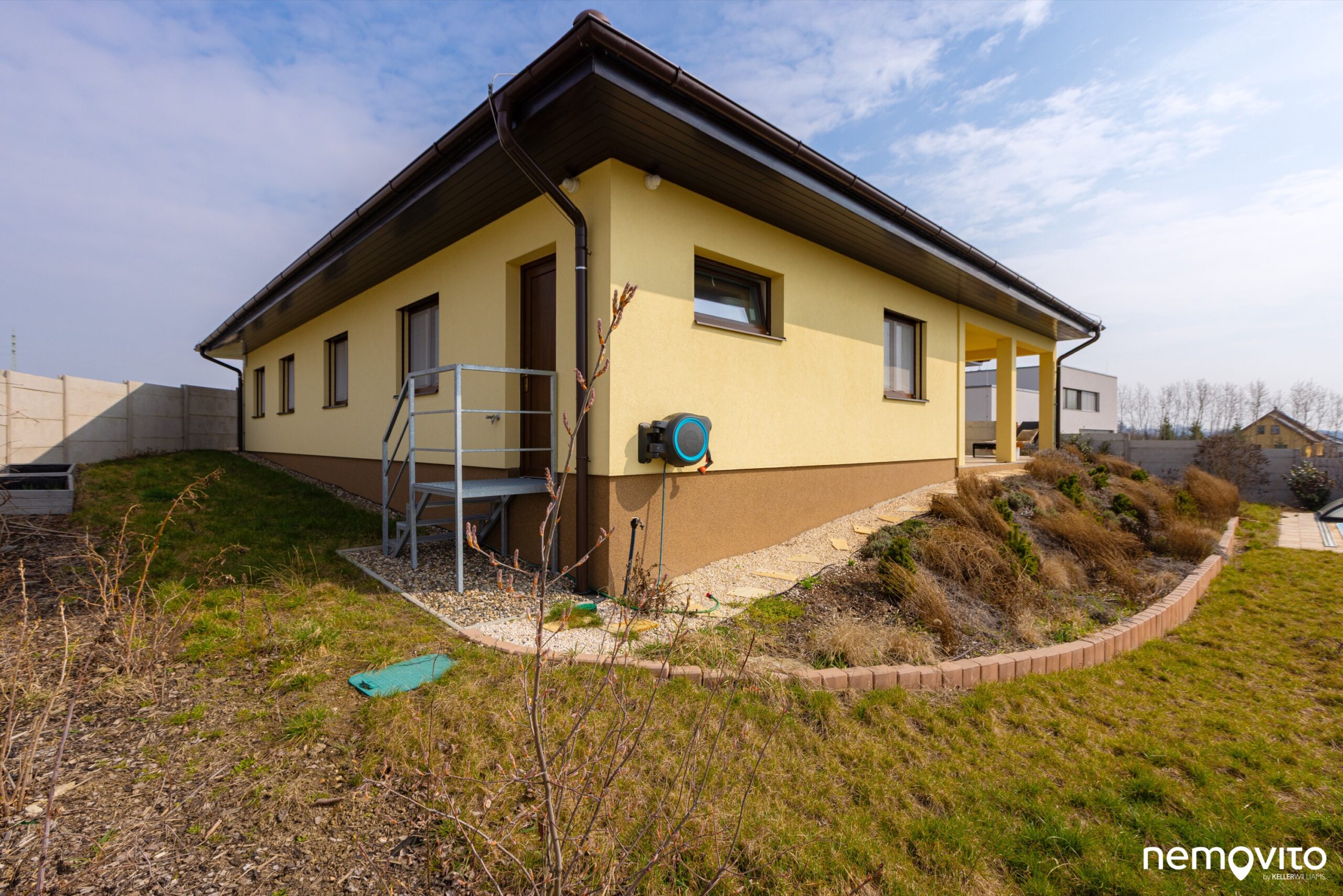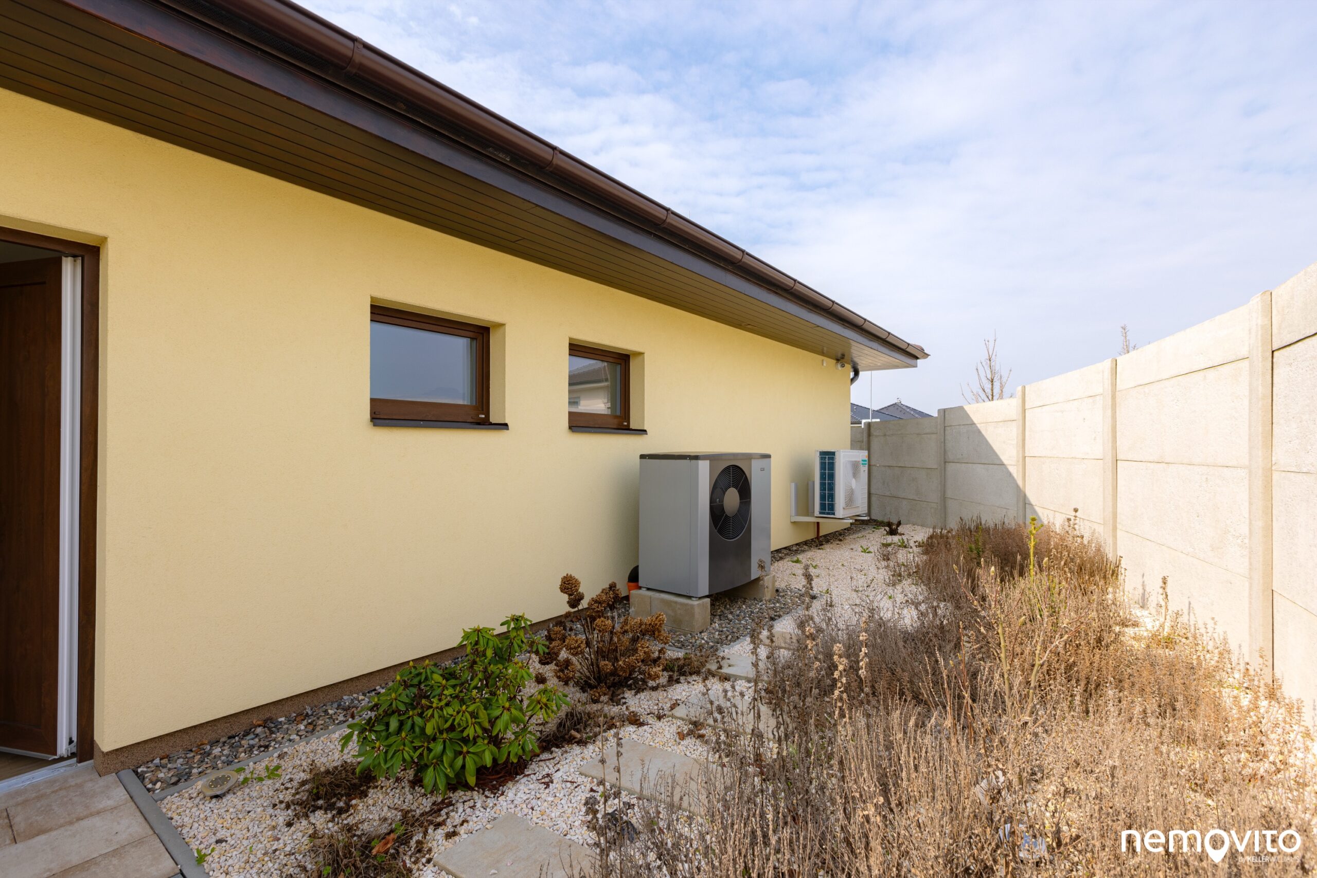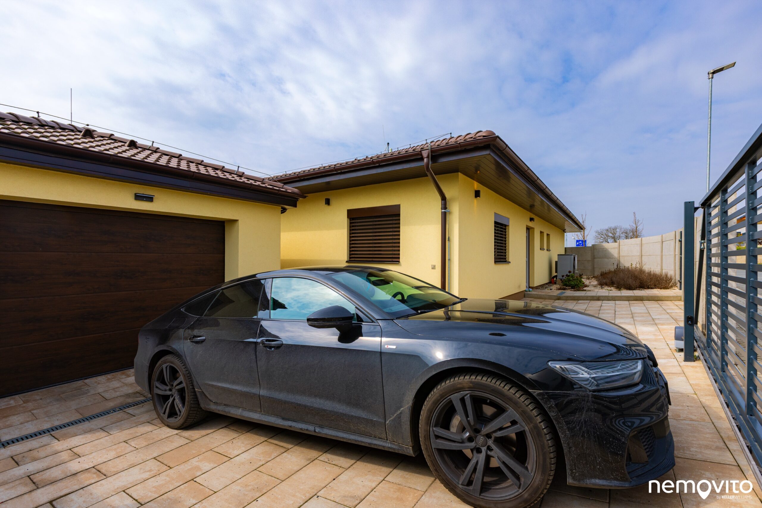 Dvoupodlažní dům vás neláká. Nechcete běhat, složitě uklízet, cokoliv. Prostě chcete zůstat pěkně v jedné úrovni. Najít bungalov, jehož plocha by nebyla do 150 m2, na které se prostě nevejdete, je docela složitý úkol. A zejména pak ještě, když k němu chcete i samostatnou garáž, ideálně bazén, a místo někde v klídku. Řešením vašeho složitého rébusu, který se jmenuje Nové místo pro náš domov, jste možná nalezli u Mělníka. Novotou stále vonící dům, který byl proveden ve vysokém a zcela soudobém standardu, tu stojí teprve od roku 2023. A má všechno, co od moderního domu chcete. Kvalitní materiály, vytápění tepelkem s podlahovým topením, fotovoltaiku, venkovní stínící žaluzie, a skvěle vypadající interiérový design. Na více než 180 m2 vás čeká obrovský obývák, ale nejvíc šokující je snad ta koupelna. Ta je vážně obrovská!