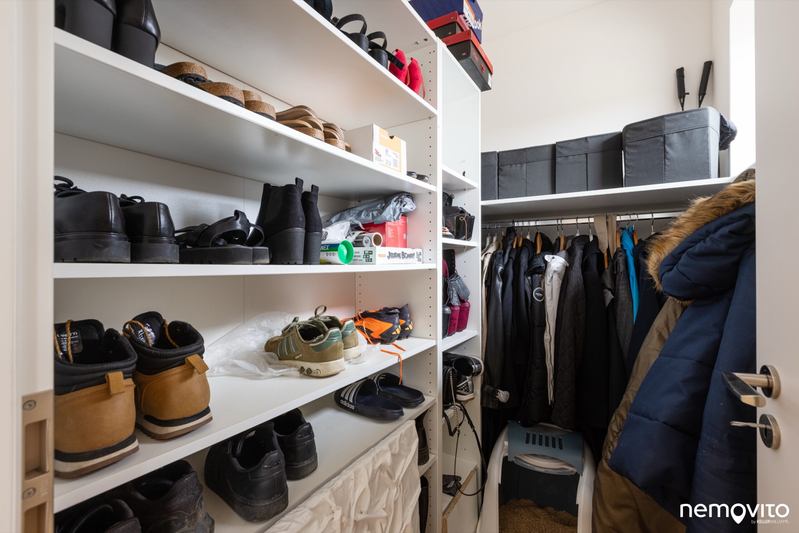 Při vstupu je hned vpravo botník nebo šatna, jejíž plocha je 2.5 m2. Hned za ní je pak technická místnost s prádelnou, která je ještě o metr větší.