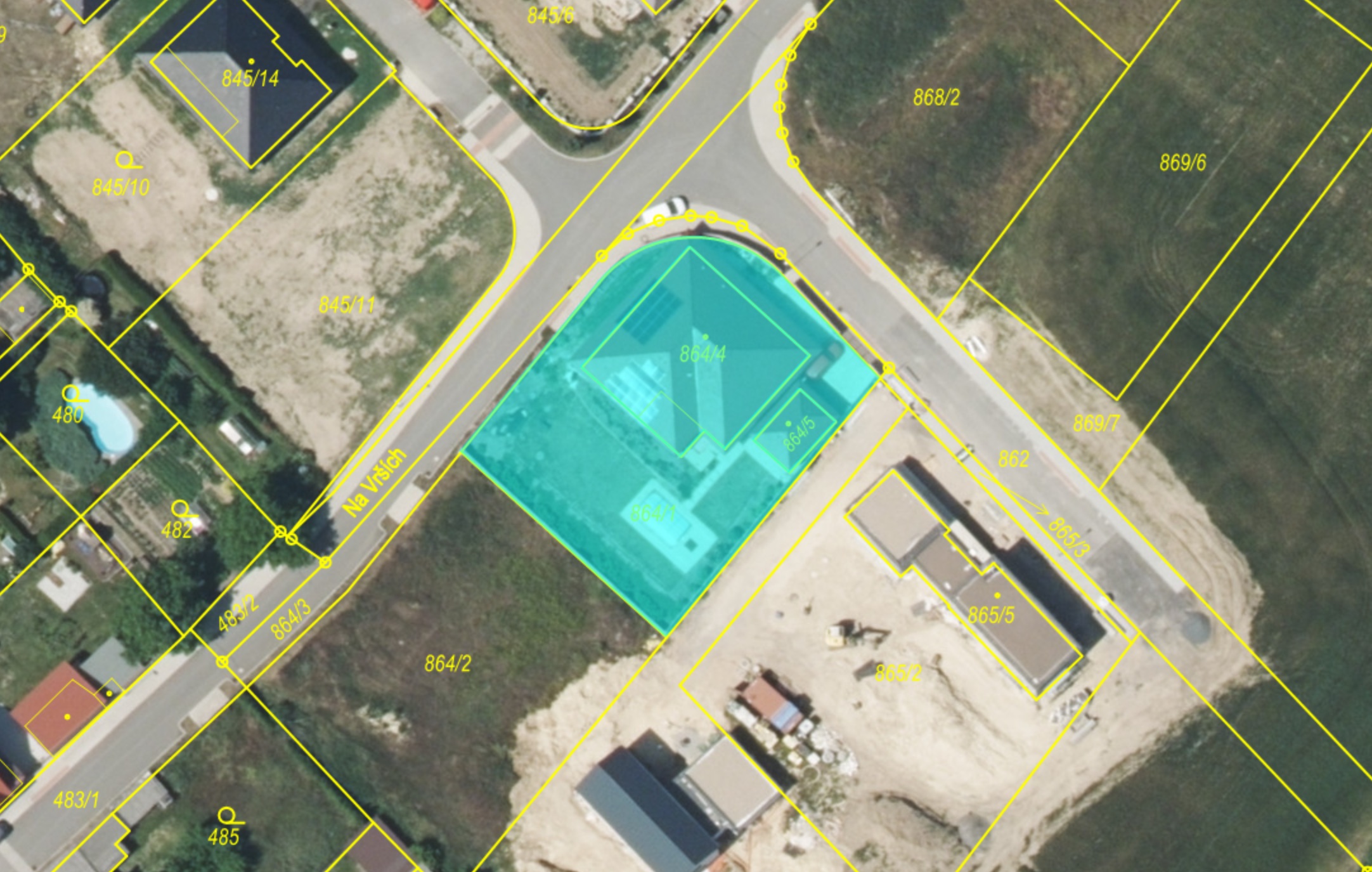 Pozemek má celkovou plochu 893 m2 a je orientovaný jihozápadním směrem. S ohledem na původní terén, který byl mírně svažitý, byl dorovnán do roviny. Tato vzniklá plocha, která je kolem bazénu, má velikost cca 200 m2.