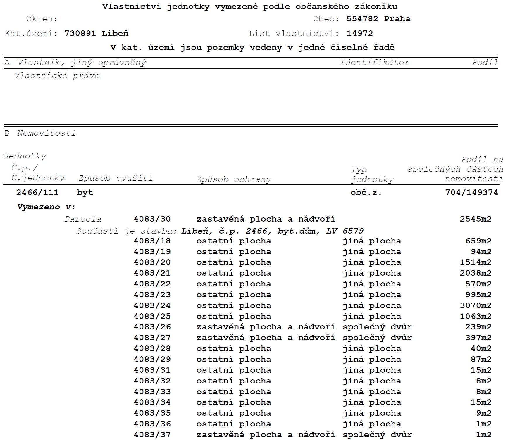 Výpis z katastru - byt | garáž a sklep na samostatném LV