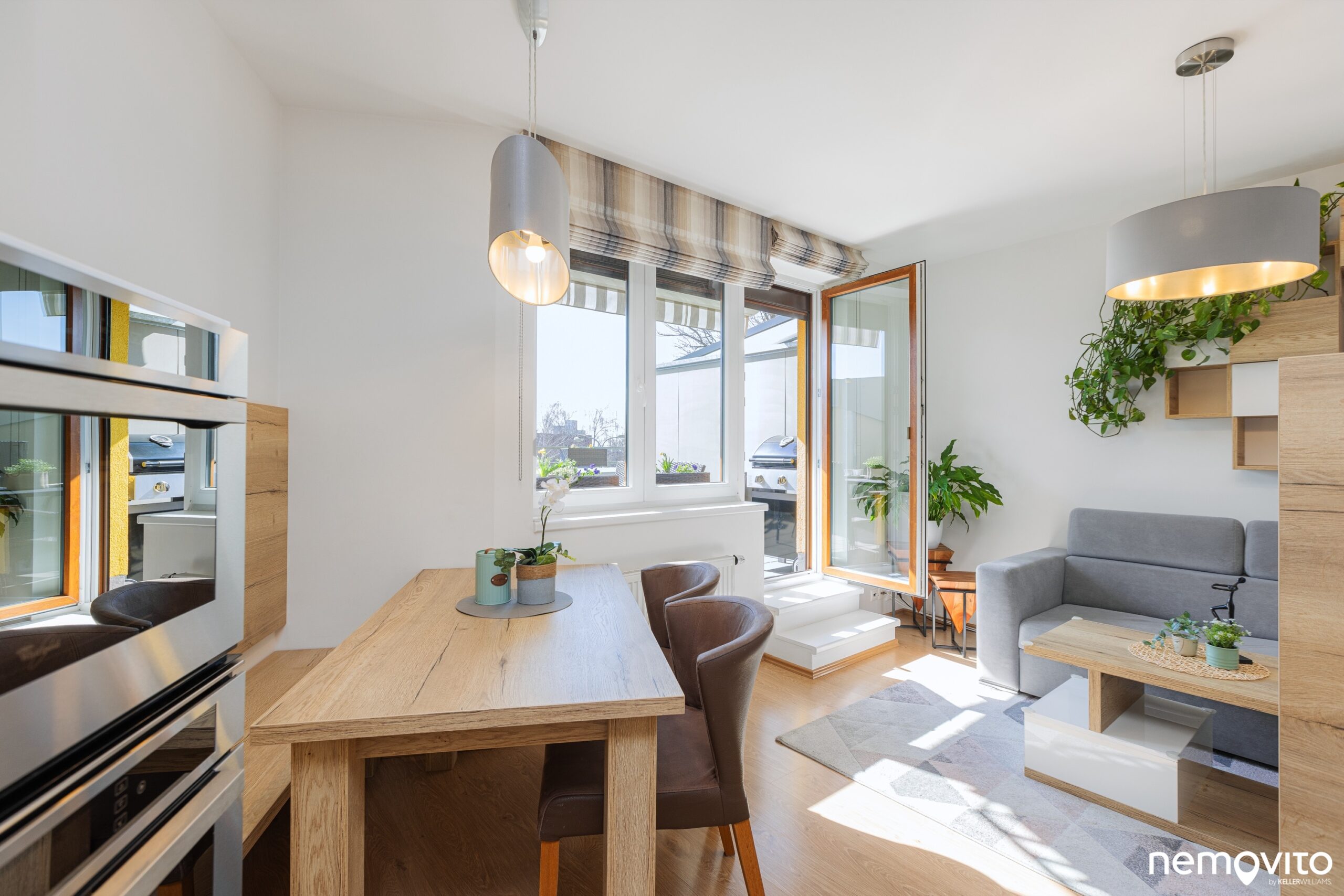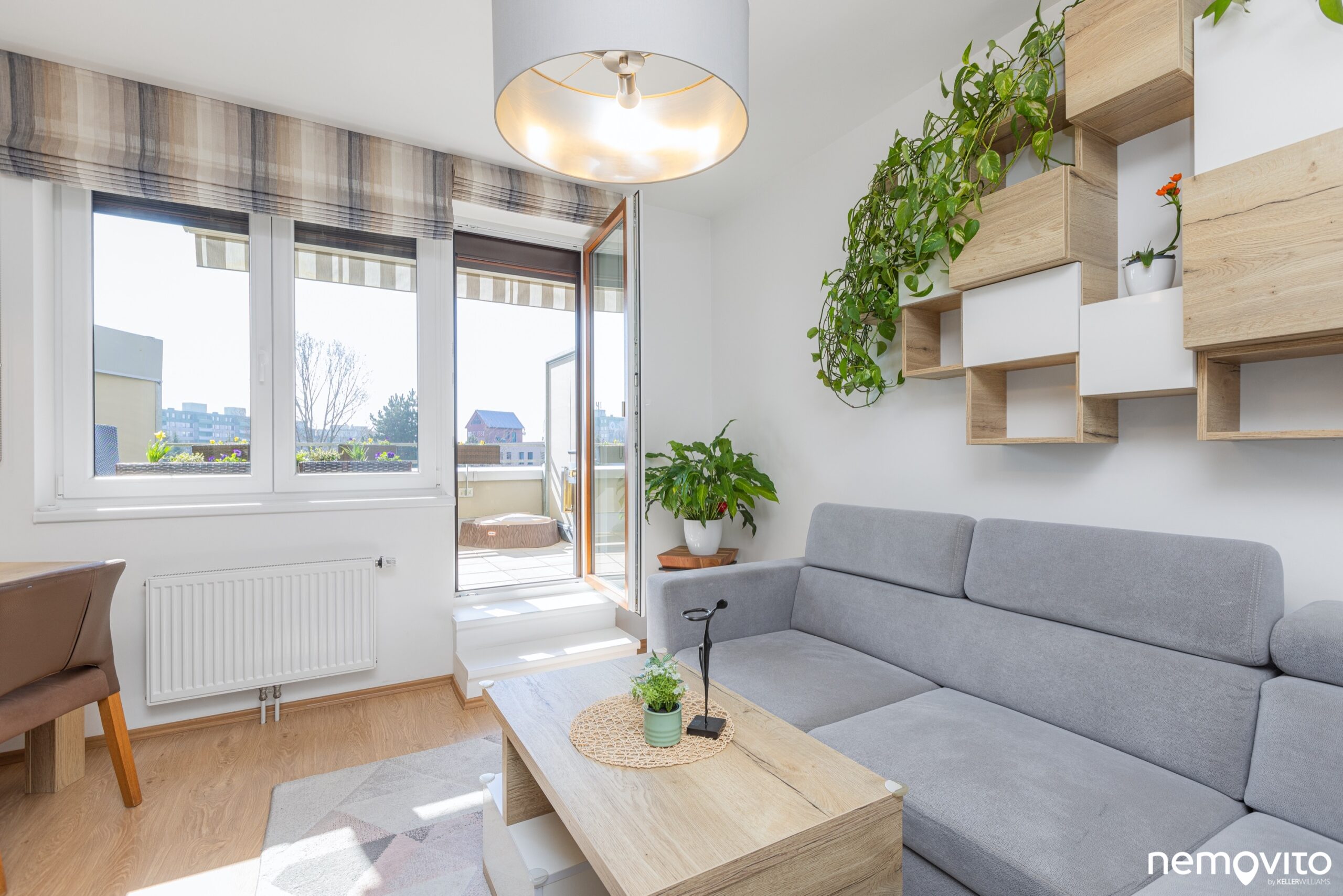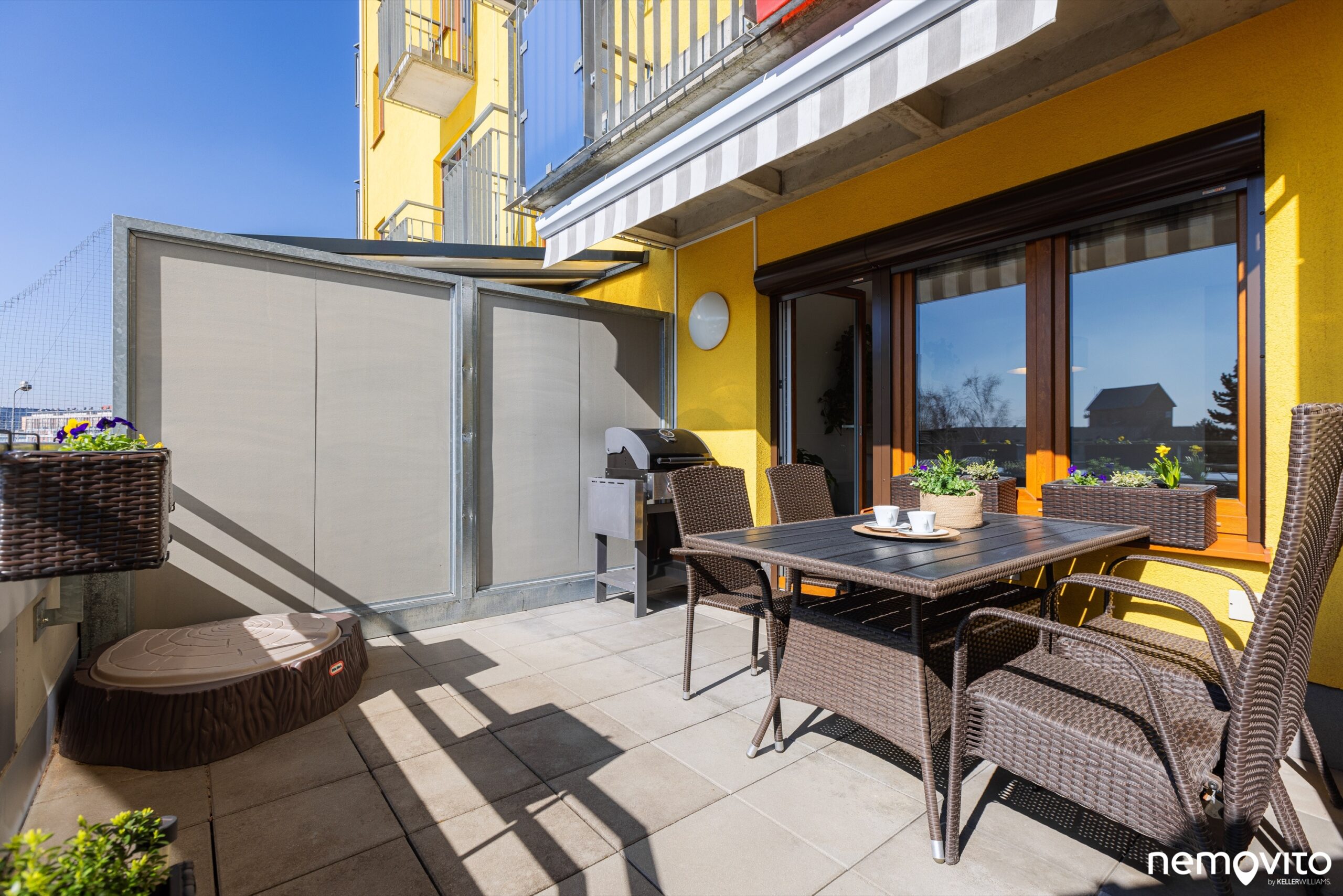 Hlavní highlight bytu? Bezesporu 13 metrová terasa se slunnou orientací na jihozápad, která se stane vašim nejlepším kámošem zejména v teplých měsících. Ale nebojte, nesnesitelného tepla se bát nemusíte. K dispozici je jak stínící roleta na okně, tak také elektrická markýza Proalu.