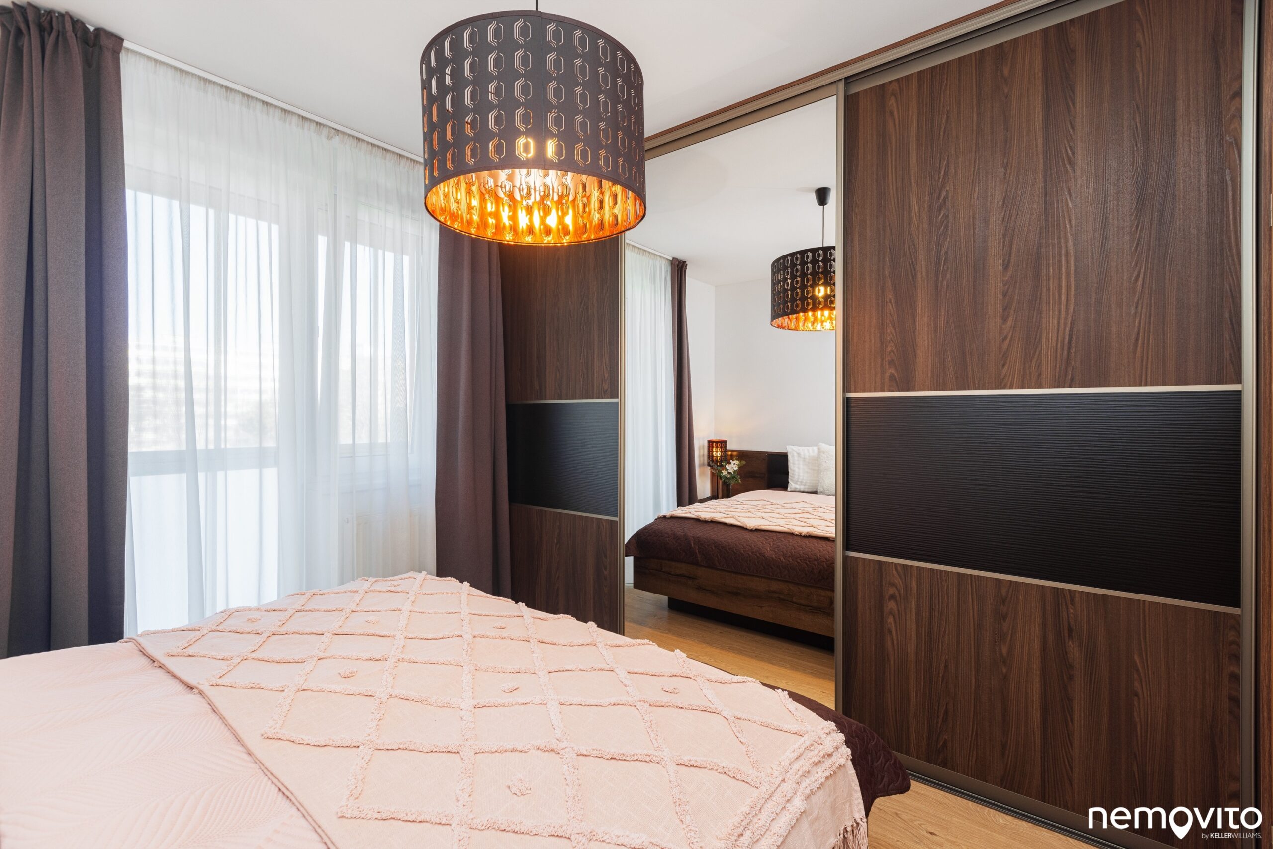 12 metrová hlavní ložnice je rovněž vybavena vestavěným nábytkem. Orientace obou pokojů je naopak na chladnější severovýchod, takže žádné vystavení letním pařákům.