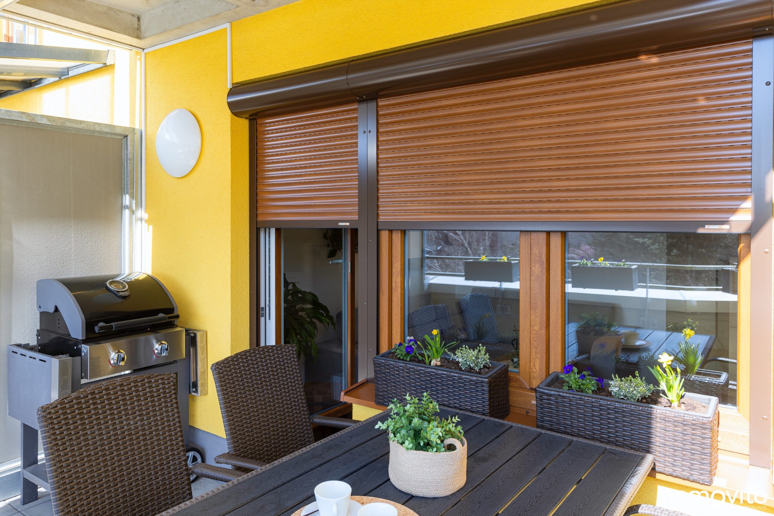 Jako bezpečnostní prvek mohou fungovat i rolety, nicméně pokud nechcete vytahovat markýzu, jedná se především o stínění. To zajišťují i neprůhledné bočnice, takže vám soused maso z grilu nevezme 🙂