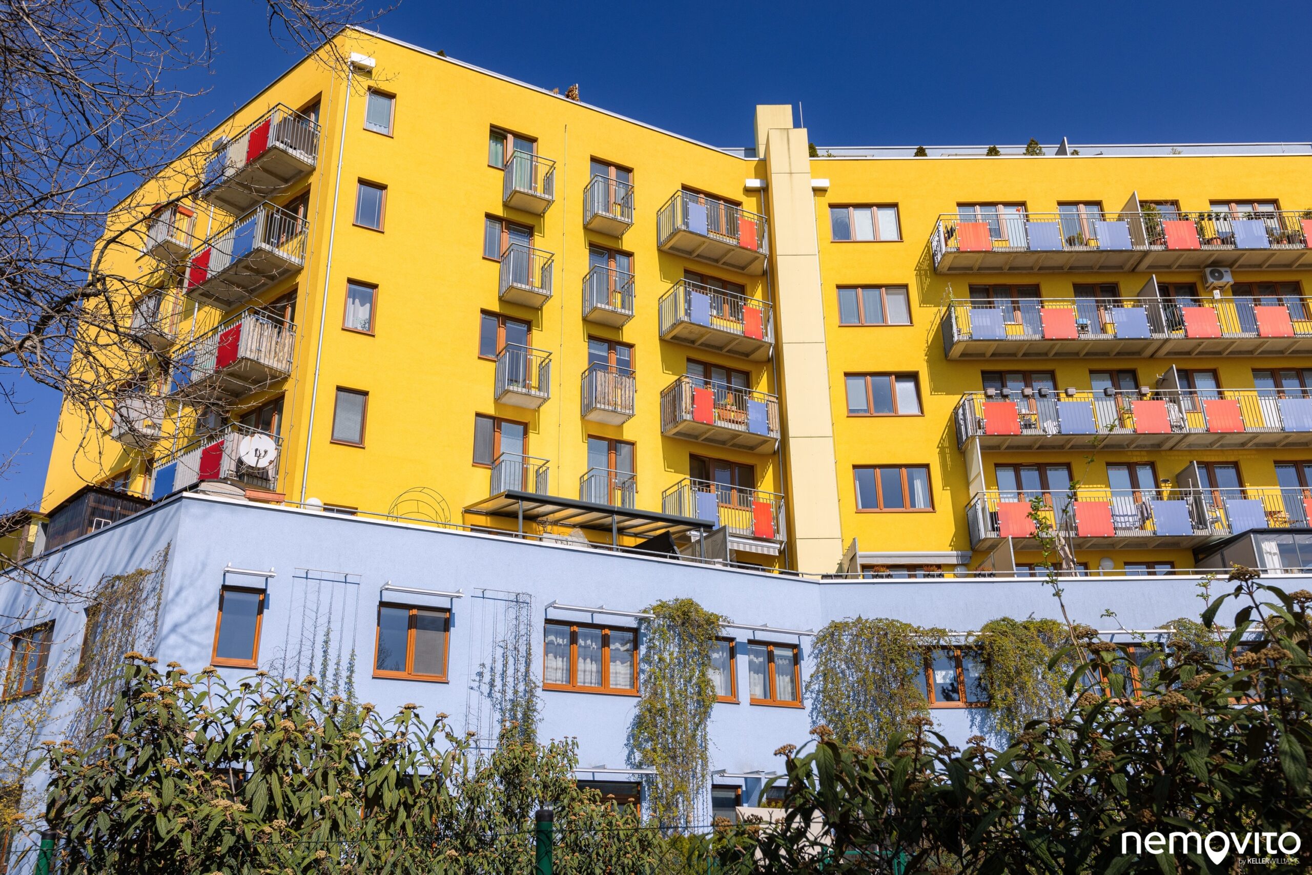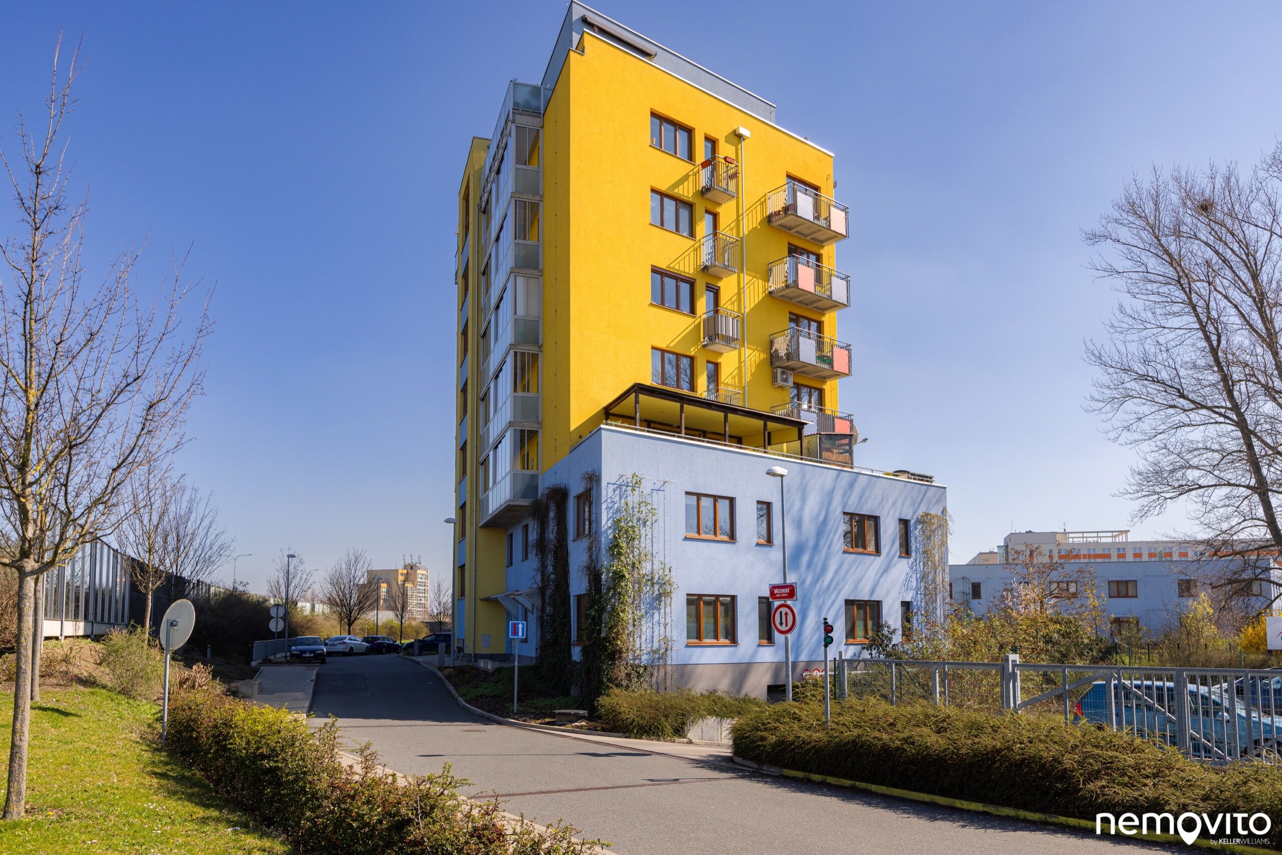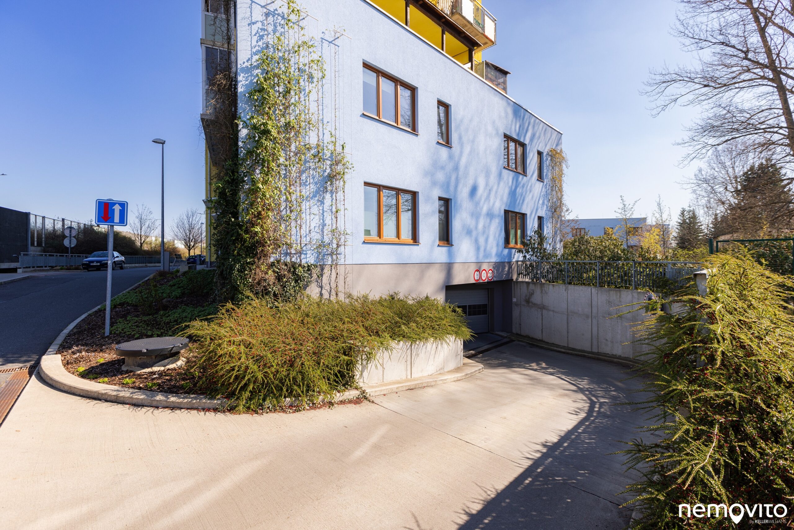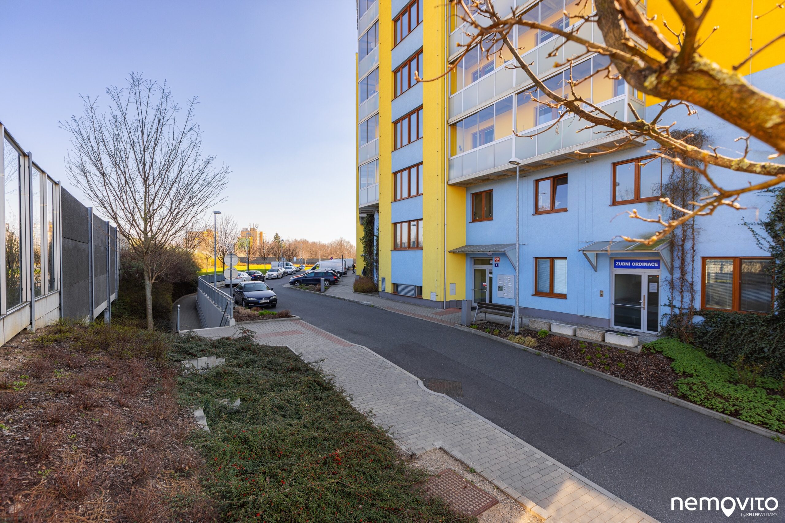 Avšak také stání v ulici jsou využitelná pro obyvatele domu a jejich návštěvy - patří totiž SVJ. Dům je umístěný ve slepé ulici, ve které tím pádem není žádný provoz. Ložnice jsou umístěné tímto směrem, jedná se tedy o severní fasádu. Všimnou si můžete zasklených balkonů.