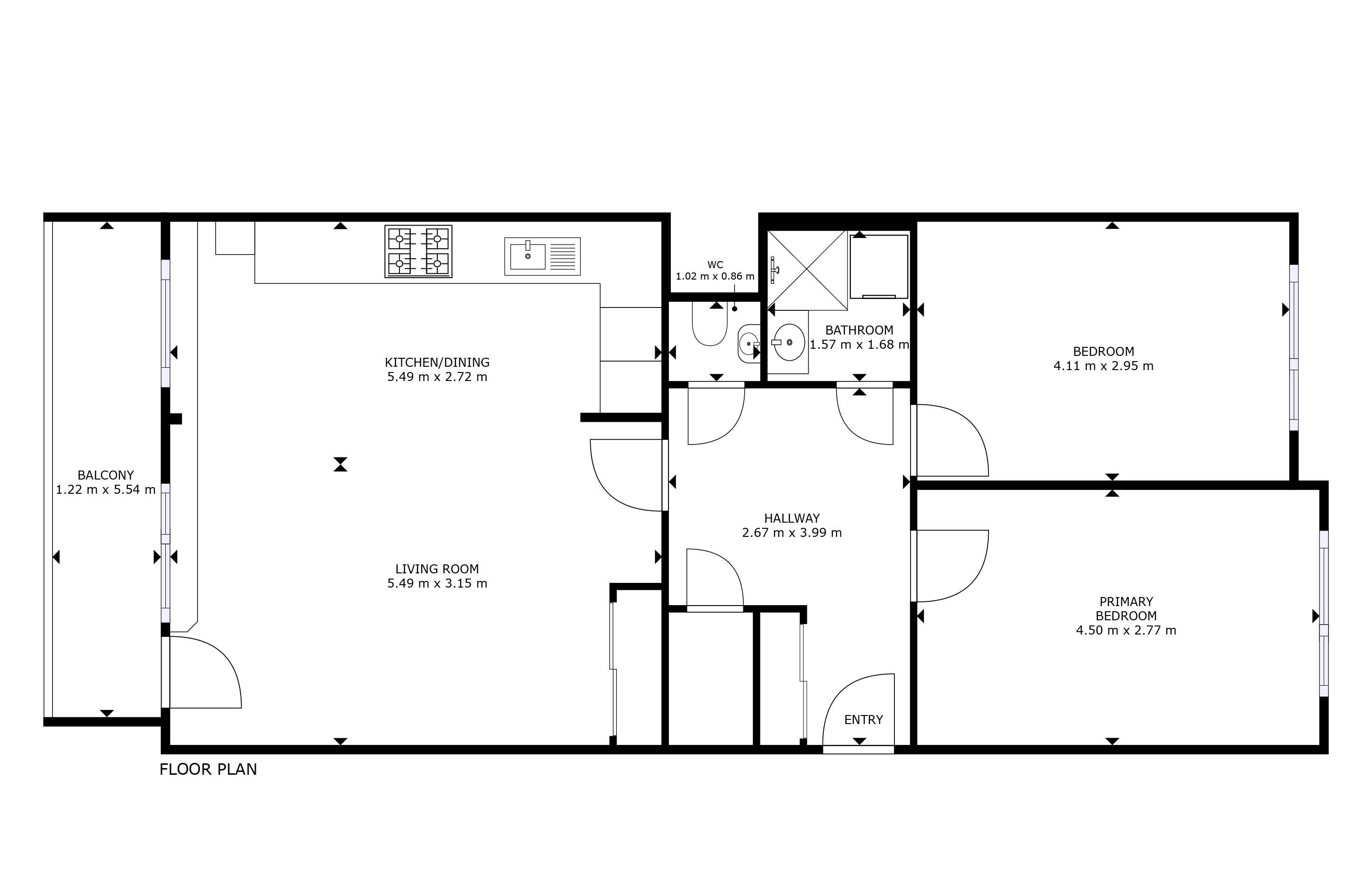 Vstupní chodba spojuje všechny místnosti bytu. U vstupu naleznete mimo vestavěné šatní skříně také komoru.