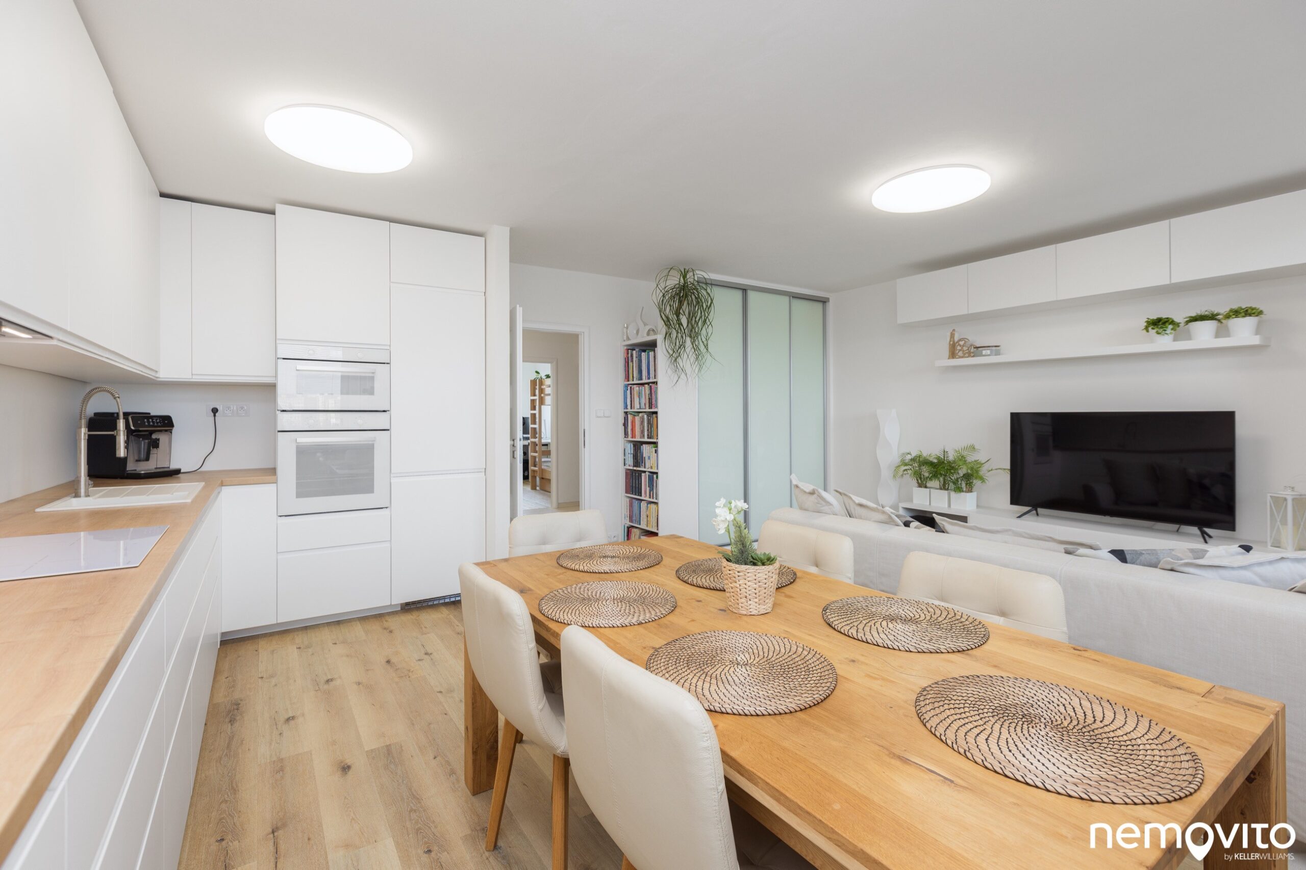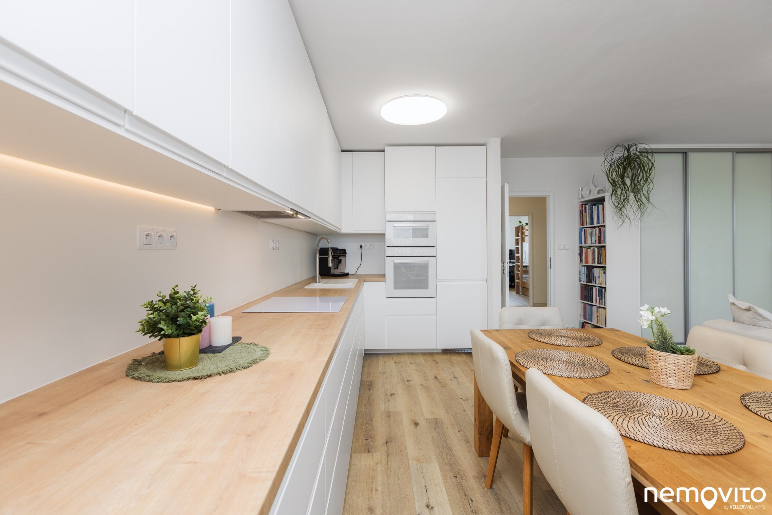 Byt prošel v na podzim roku 2022 kompletní a zdařilou rekonstrukcí, její zásadní bod spočíval v propojení tehdy oddělené kuchyně do jedné velké obývací místnosti.