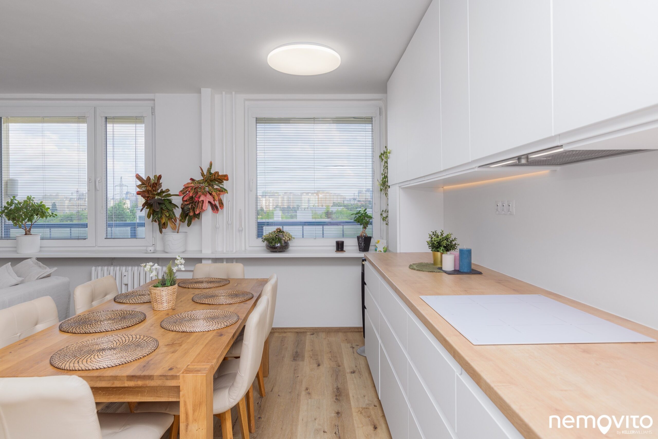 Čerstvě zrekonstruovaný byt, který boří zažité stereotypy o panelových domech. Že jsou všechny stejné? Na to zapomeňte. A to nejen uvnitř bytu samotného, ale také v okolí, které vás překvapí v tom nejlepším slova smyslu. Poslední dům v řadě, jehož sousedem je velká zelená louka a spousta stromů. Tohle už neodpovídá klasické sídlištní šedi, že? A co kdyby tu byla ještě jedna třešnička na dortu? Tento dům totiž není napojený na drahou teplárnu, ale má k dispozici vlastní tepelné čerpadlo. I v době těch nejvyšších cen tak vycházel náklad na vytápění na pouhých 8 stovek měsíčně. Byla tedy věta o zbořenému stereotypu nadnesená? V případě téhle nabídky ani o písmenko.