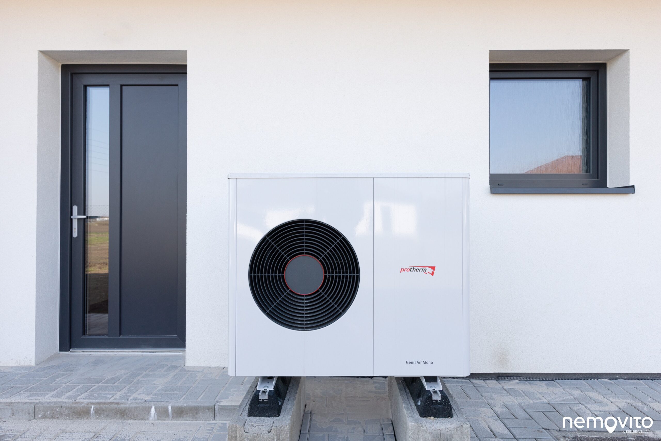 Vytápění obou domů je řešeno tepelným čerpadlem s teplovodním podlahovým topením, které se reguluje přes centrální termostat.