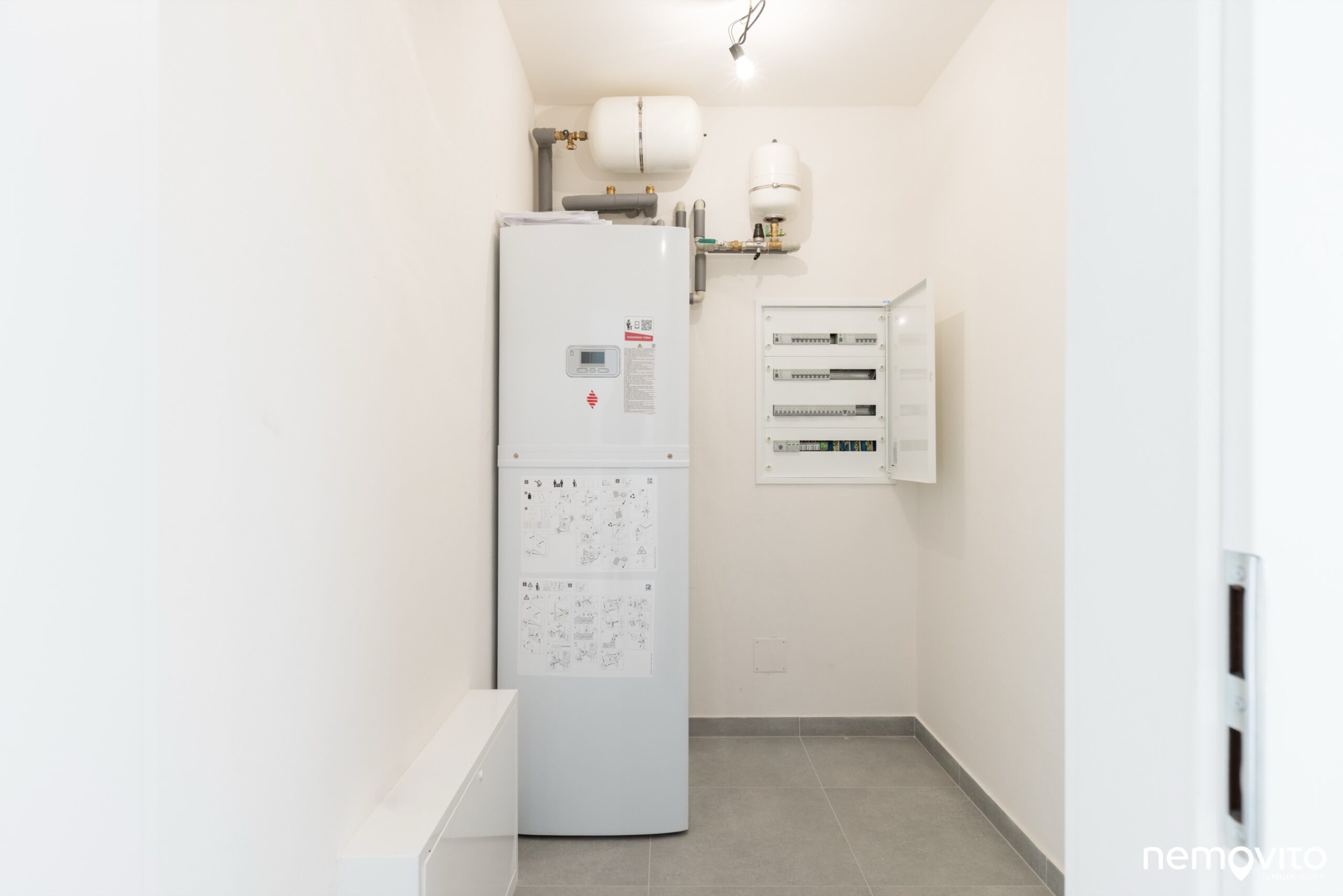 Praktická je také samostatná technická místnost, kde je umístěna vnitřní jednotka tepelka, rozvaděč, a taky místo na případnou technologii k fotovoltaice. Husí krky jsou již připravené. S ohledem na plochu a orientaci střechy na všechny strany je instalace jednoduchá, a systém dům posune spotřebou do pár jednotek MWh elektřiny ročně. I teď se ale s přehledem vejdete do 10.