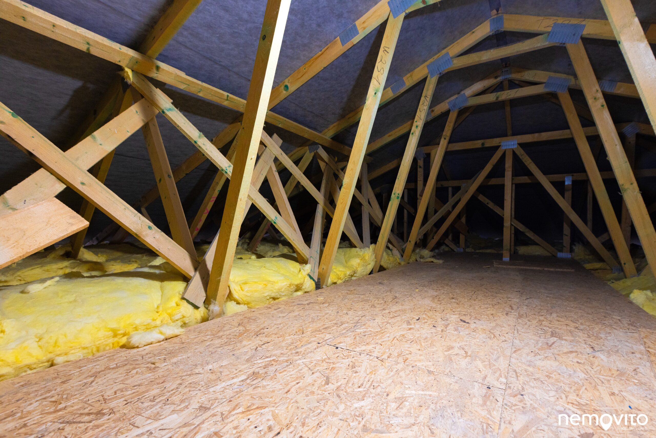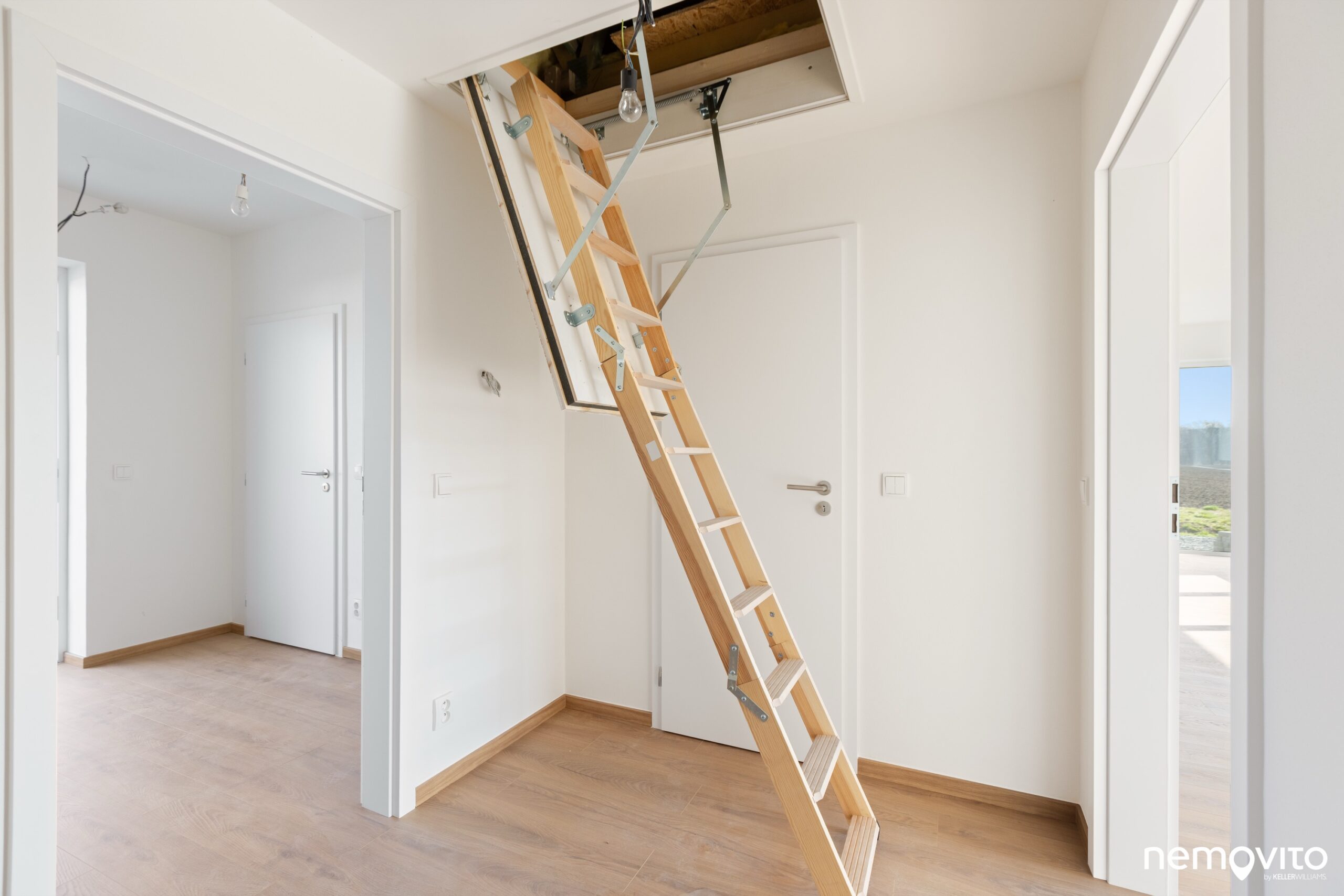 V této části chodby je k dispozici vstup na půdu, která je skutečně obrovská. Sbíjené vazníky střechy jsou řešeny tak, aby uprostřed vznikl úložný prostor o velké světlé výšce. Na další pokoj to není, ale na všechna vaše harampádí rozhodně ano.