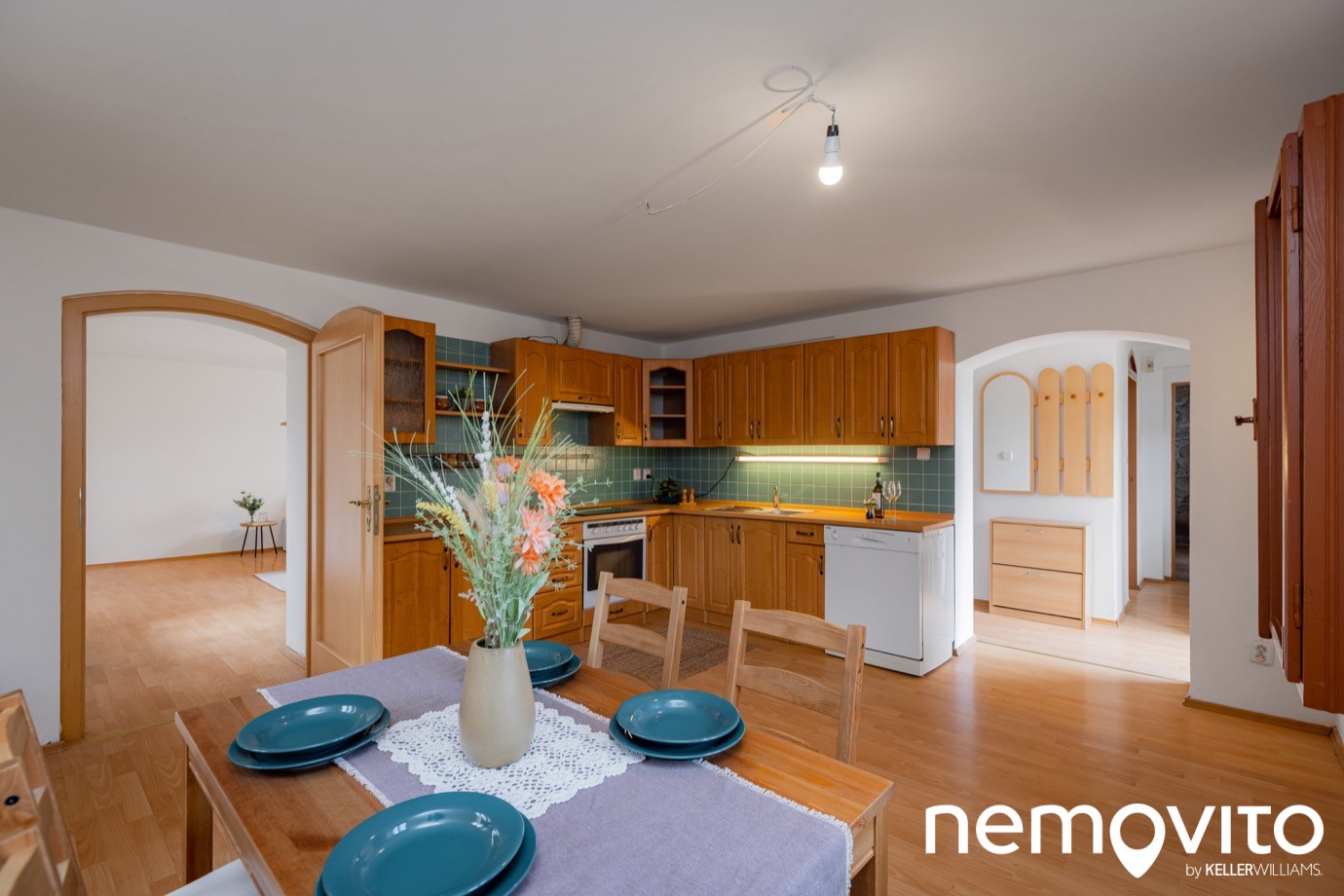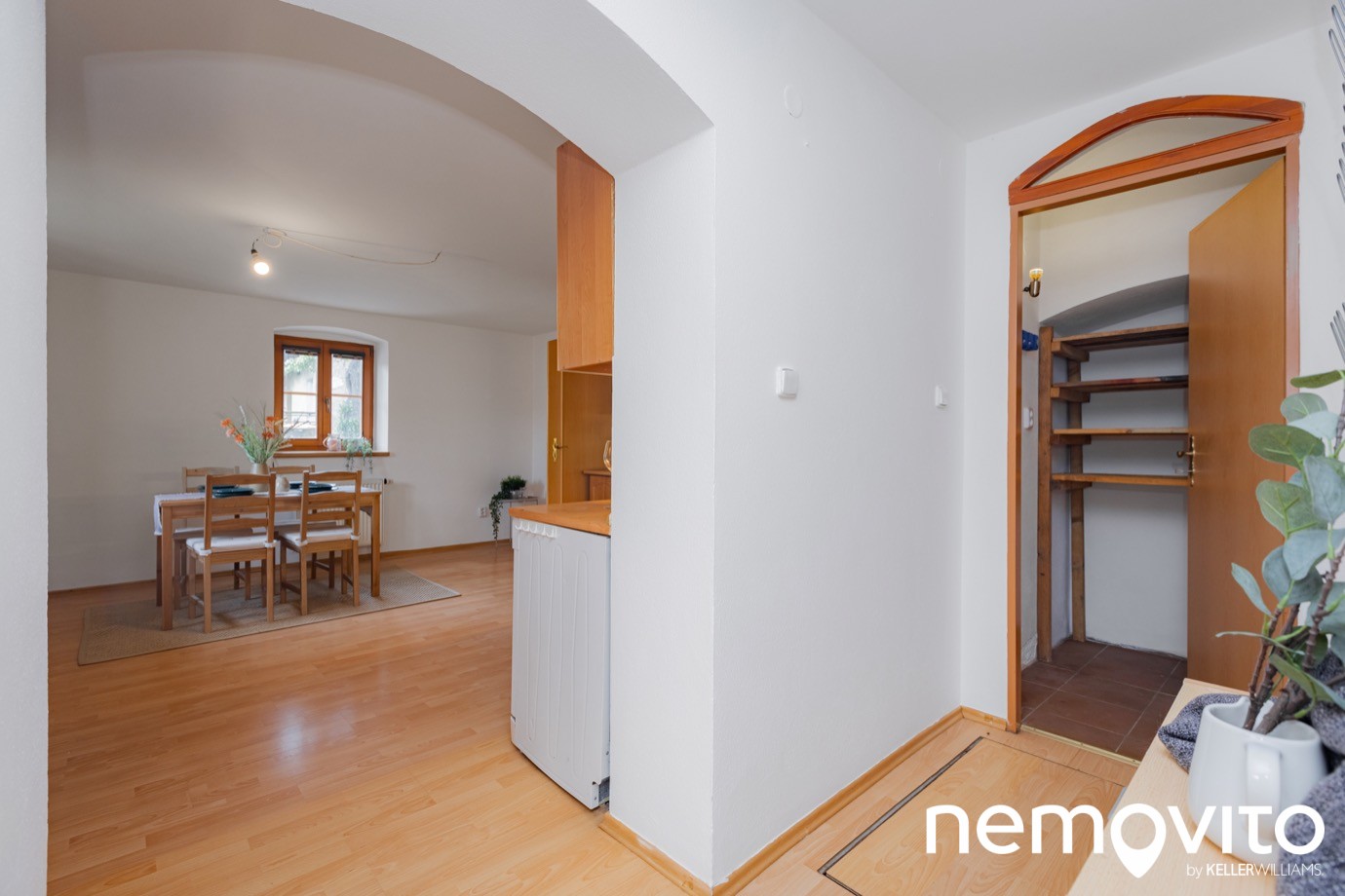 Na jídelny většinou moc místa nezbývá. Jelikož je místnost samostatná a nejedná se jen o kuchyňský kout s obývákem dohromady, klidně pohostíte i 10 hostů. A kdybyste byli méně nároční, pak kuchyni přesunete vedle a využití této místnosti zůstane na vaší fantazii. A nebo všechno úplně jinak? Obývák s kuchyňským koutem tady a ve vedlejších velké 30 metrové místnosti královská ložnice?