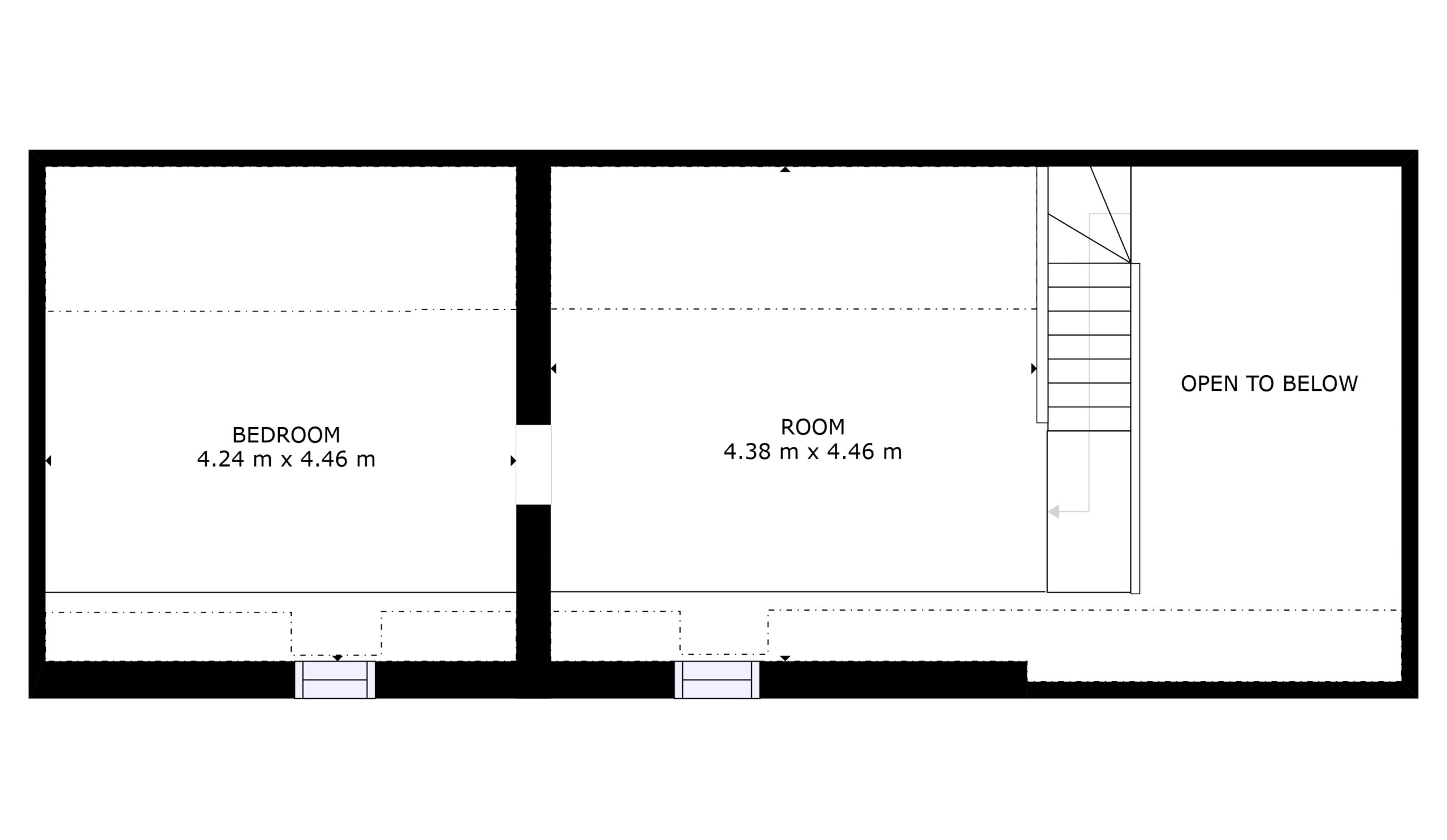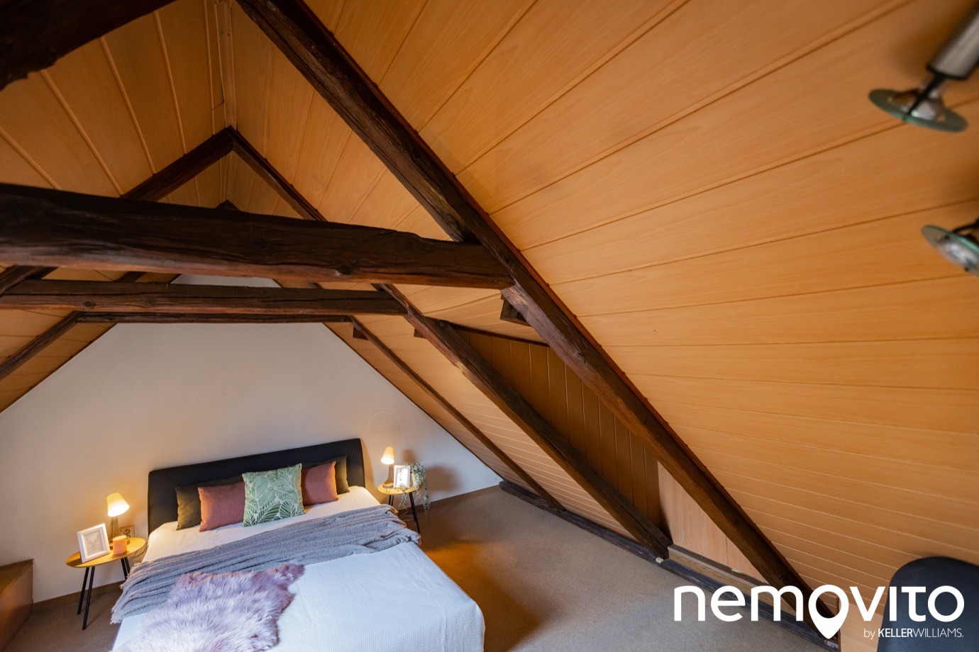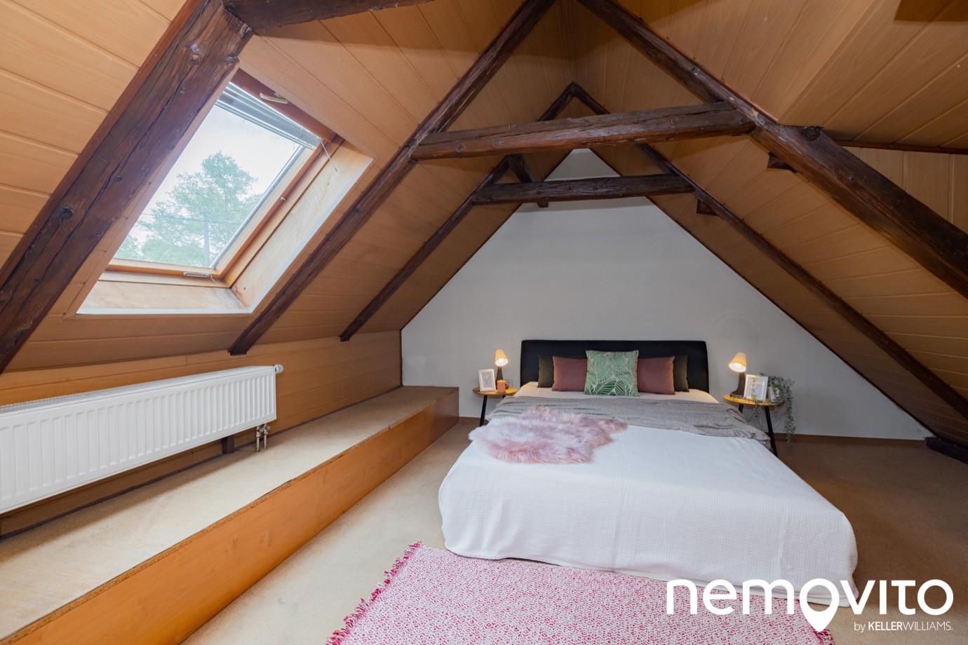 Výška stropu je omezená trámy, s více než 180 cm se pod ně nepostavíte. Zadní pokoj má velikost 19 m2. Střešní okna byla samozřejmě vyměněna při rekonstrukci.