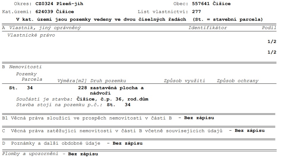 Výpis z katastru - předmět prodeje