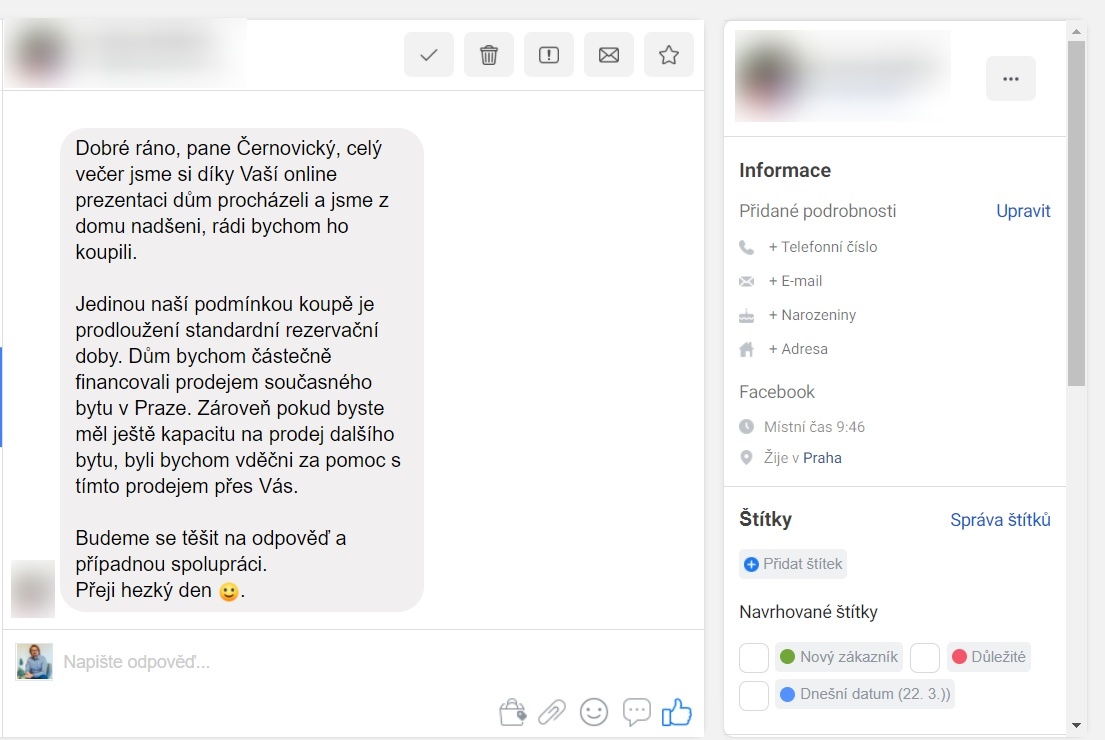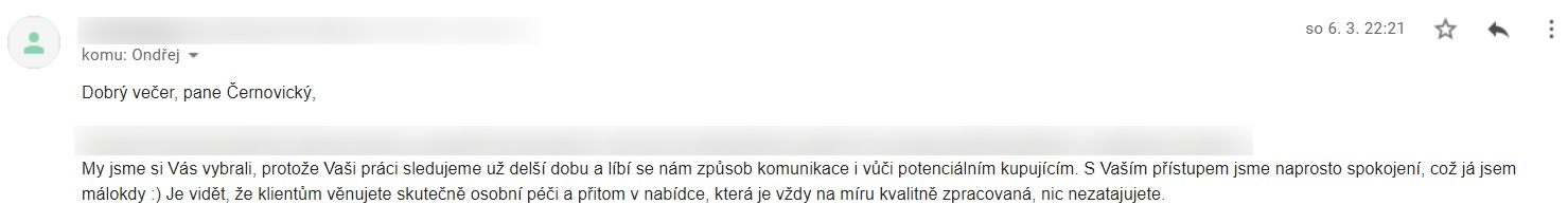 Opravdu milý email, kde mě strašně potěšilo, když klienti vnímají, že mi skutečně jde o transparentnost a důvěryhodnost nejen sebe samotného, ale i nabídky na prodej.