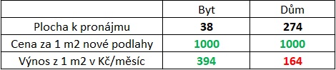 Jednou ze základních myšlenek dobrého nájmu, alespoň tedy z mého pohledu, je minimalizovat náklady a maximalizovat výnosy z každého metru, který pronajímám. Malometrážní byt je na tom z tohoto hlediska téměř 2.5 x lépe proti velkému domu.