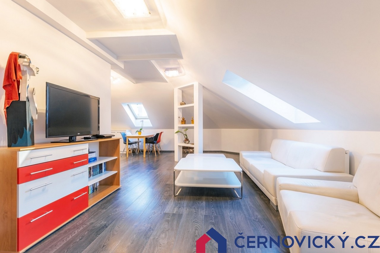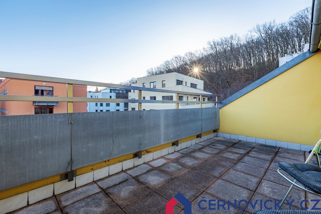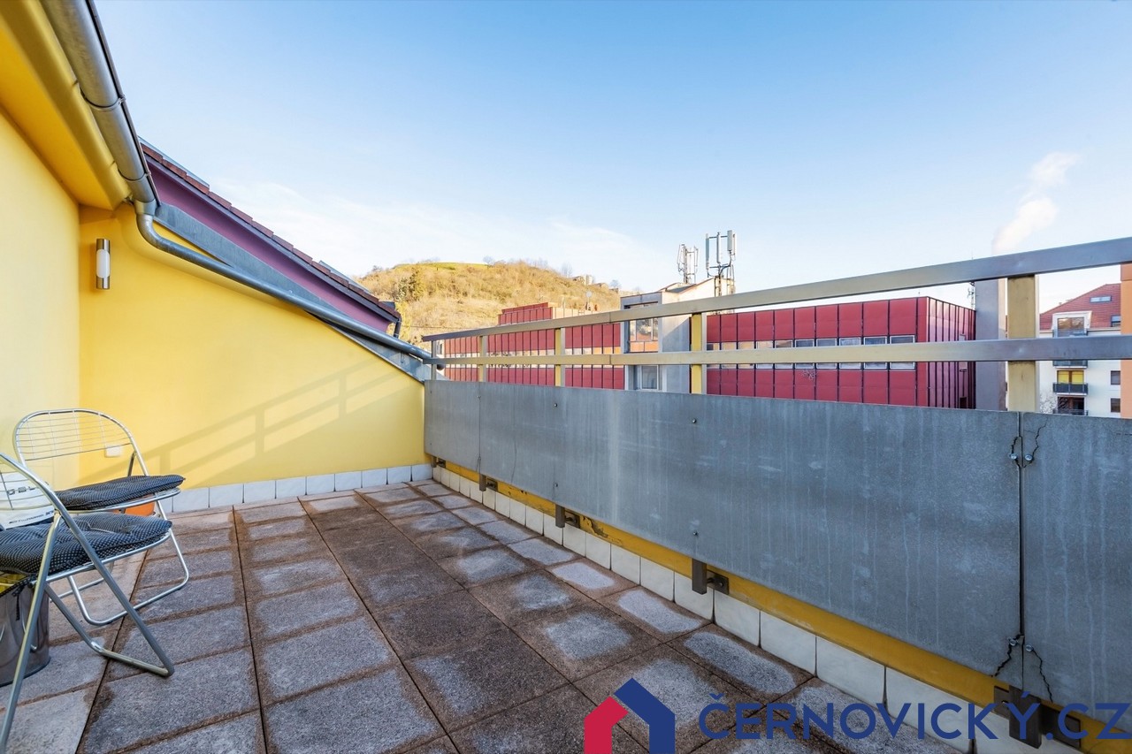 Na více než 150 metrech (bez terasy) můžete doslova tančit. Přístup do bytu je realizován přes vlastní schodiště a protože u žádného pořádného bytu nesmí chybět kontakt s okolím, kávu si vypijete na terase přímo u kuchyně.