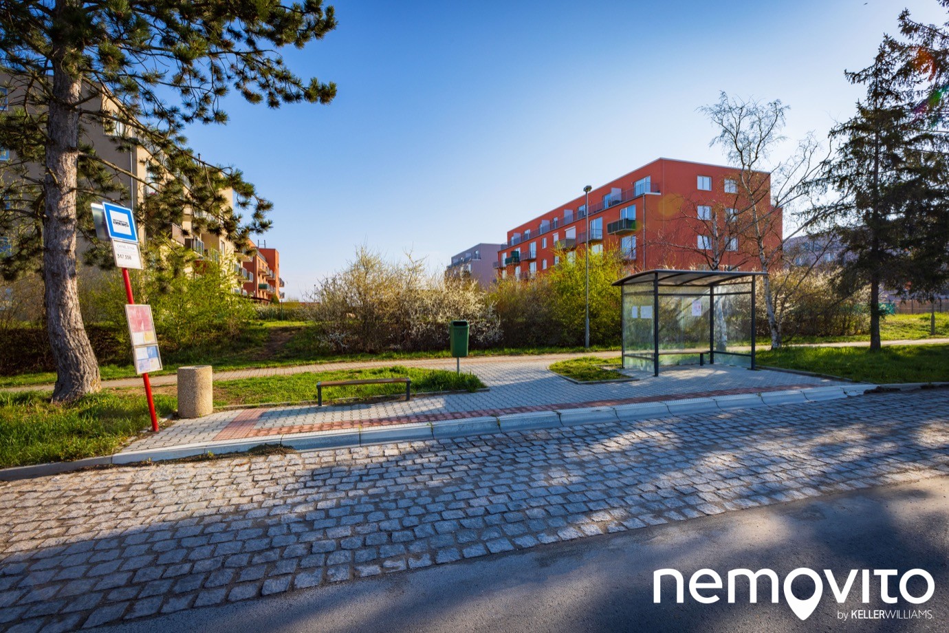 Pětipodlažní cihlový bytový dům se nachází jako poslední v řadě. Ačkoliv by mohla tato nově vzniklá lokalita působit nedostupně, opak je pravdou.