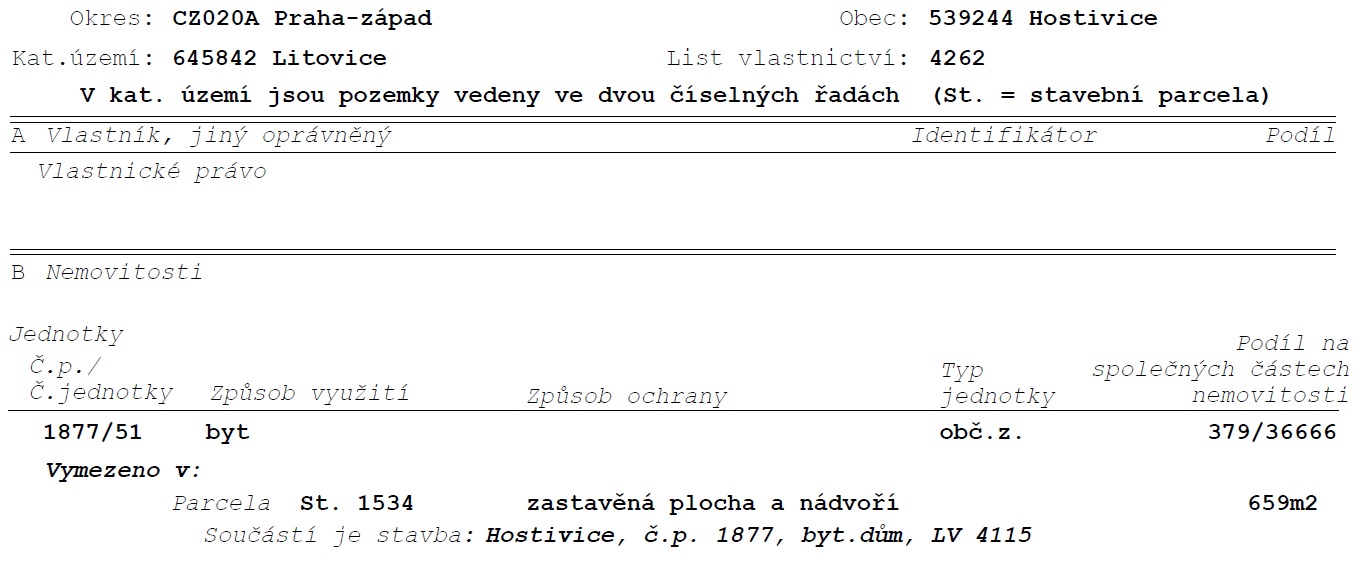 Výpis z katastru - předmět prodeje