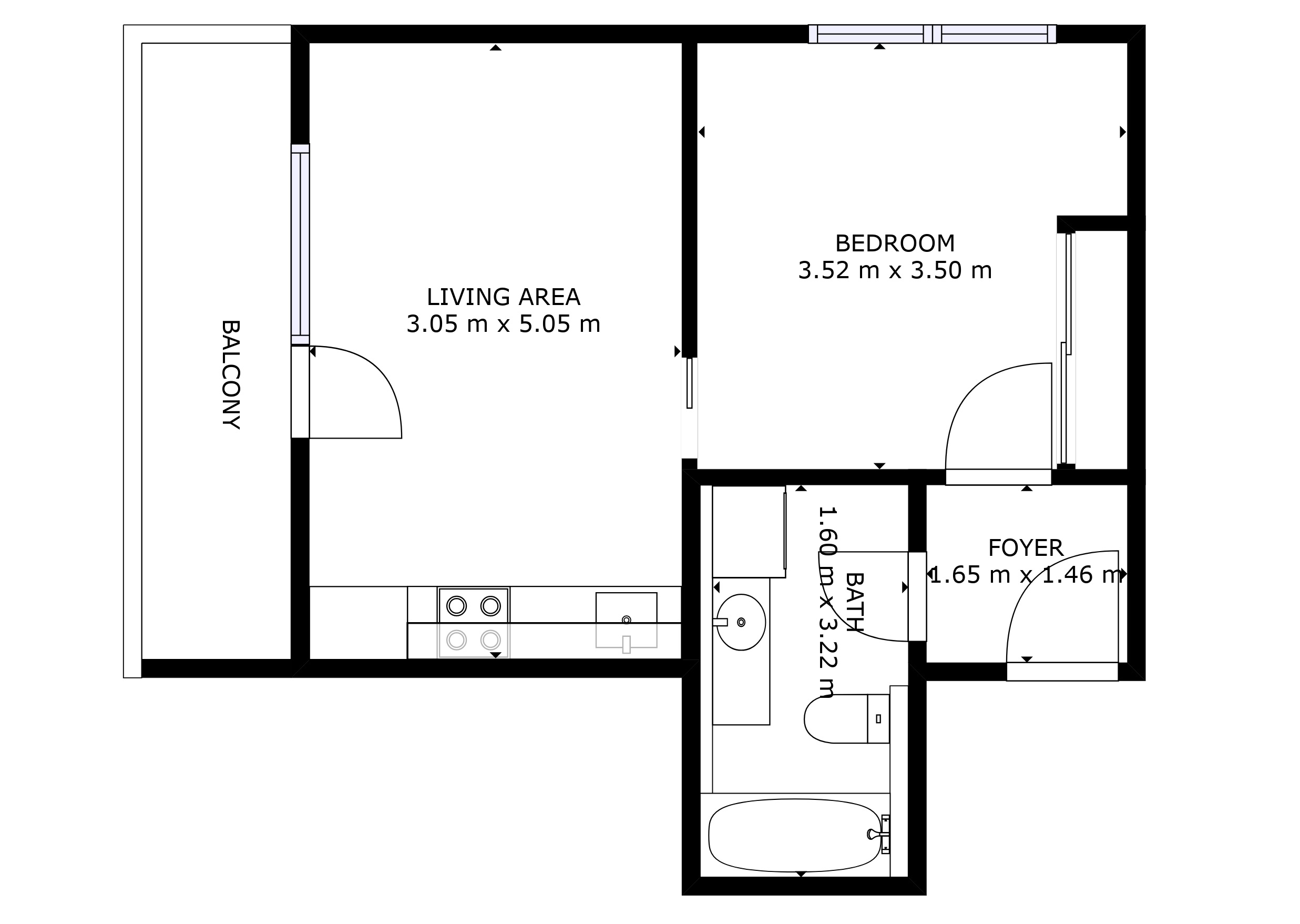 Ačkoliv se v tanci v obýváku příliš nerozletíte, jistě oceníte jednu naprosto zásadní výhodu proti koncepci 1+kk. V bytě jsou dvě samostatné zóny, které znamenají přinejmenším to, že nebudete v ložnici cítit spálený oběd ještě večer 🙂 Oddělení místností je pro úsporu místa řešeno posuvnými dveřmi do pouzdra.