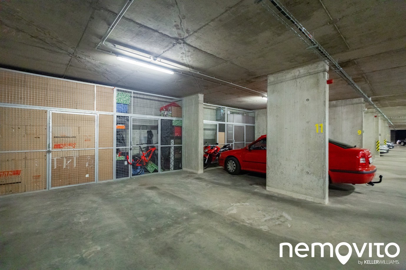 Skvělým bonusem je vlastní garážové stání přímo pod domem. Nachází se ve druhém podzemním podlaží, kam zajíždí autovýtah.