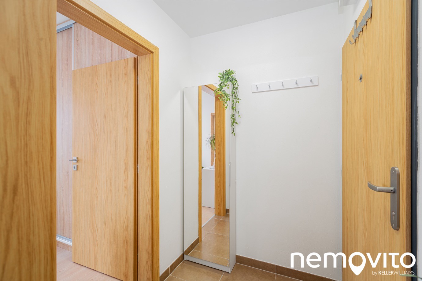Vstupní chodba o velikosti 2.4 m2 nabízí prostor pro botník či menší vestavěnou skříň. Anebo pokud máte drahé kolo, které nechcete nechat ve sklepě, můžete ho zavěsit u dveří do ložnice.