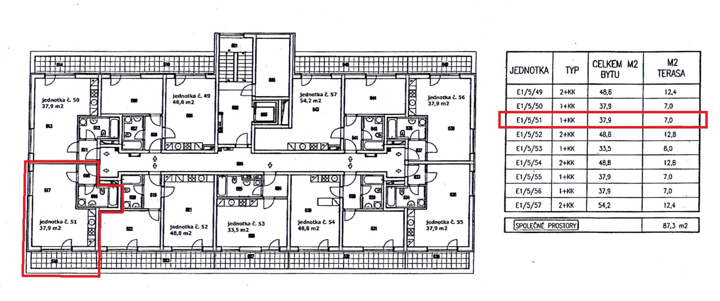 Plocha 38 m2 + 7 m2 terasa + 2 m2 sklep