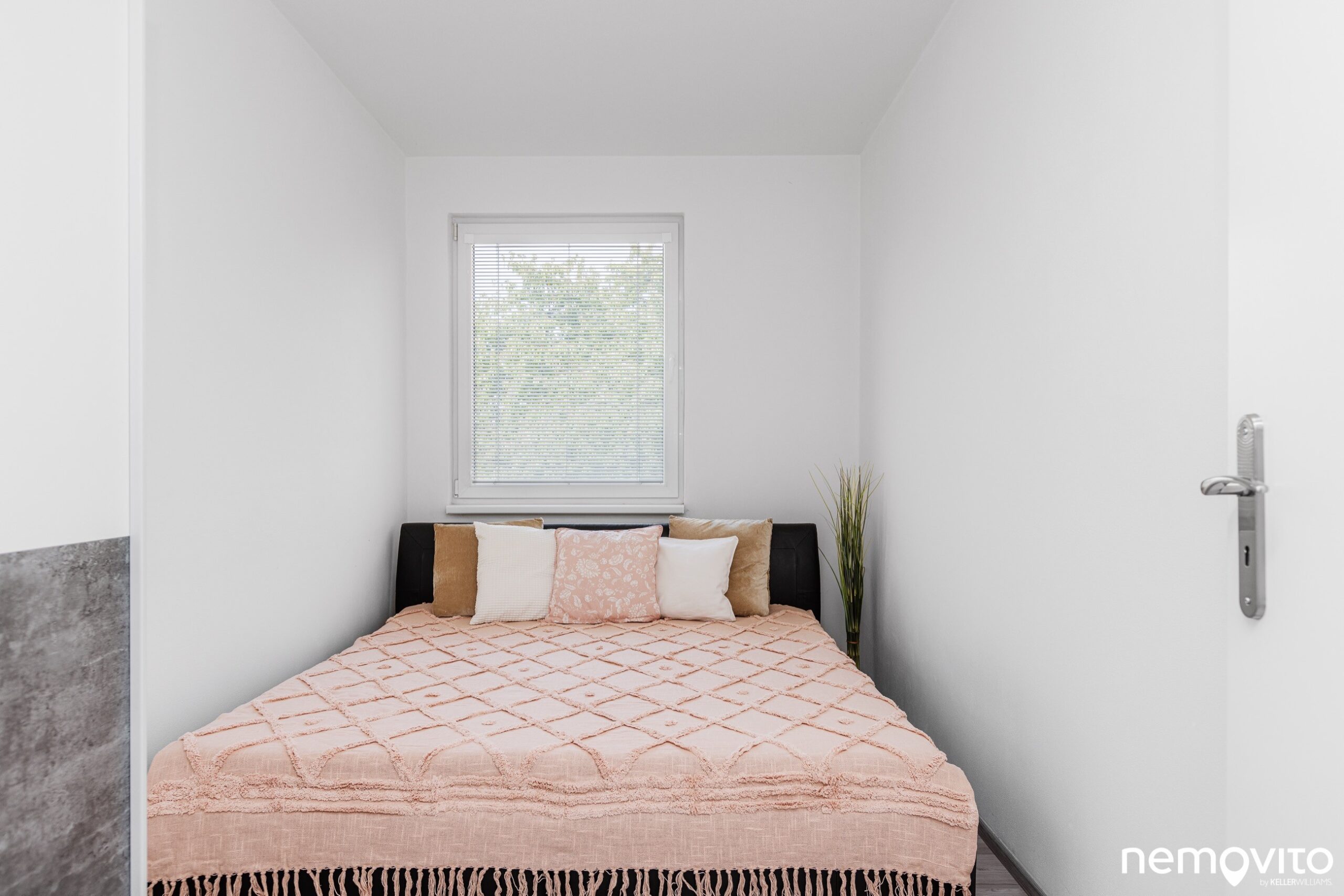Ta není s plochou 9 m2 nijak zvlášť obří, ale velkou postel a skříň pojme. Ostatně do ložnice nechodíte tančit a pokud se obáváte, že nebudete mít kam dát věci...