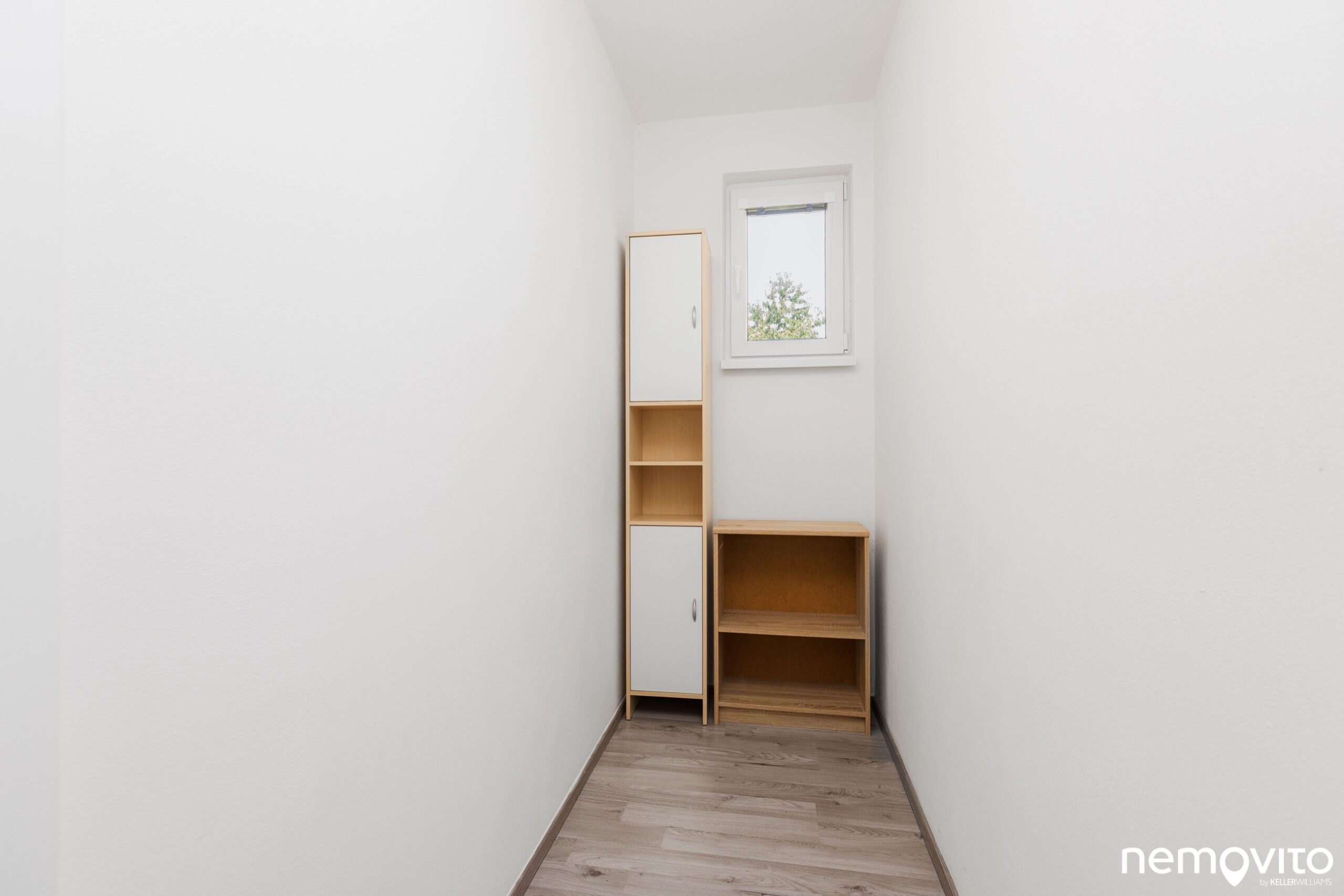 ...tak úplně zbytečně. Specialitkou tohoto bytu je totiž velká komora, do které můžete umístit například šatnu. Plocha komory je 4 m2, tedy 4 na délku a 1 m na šířku.