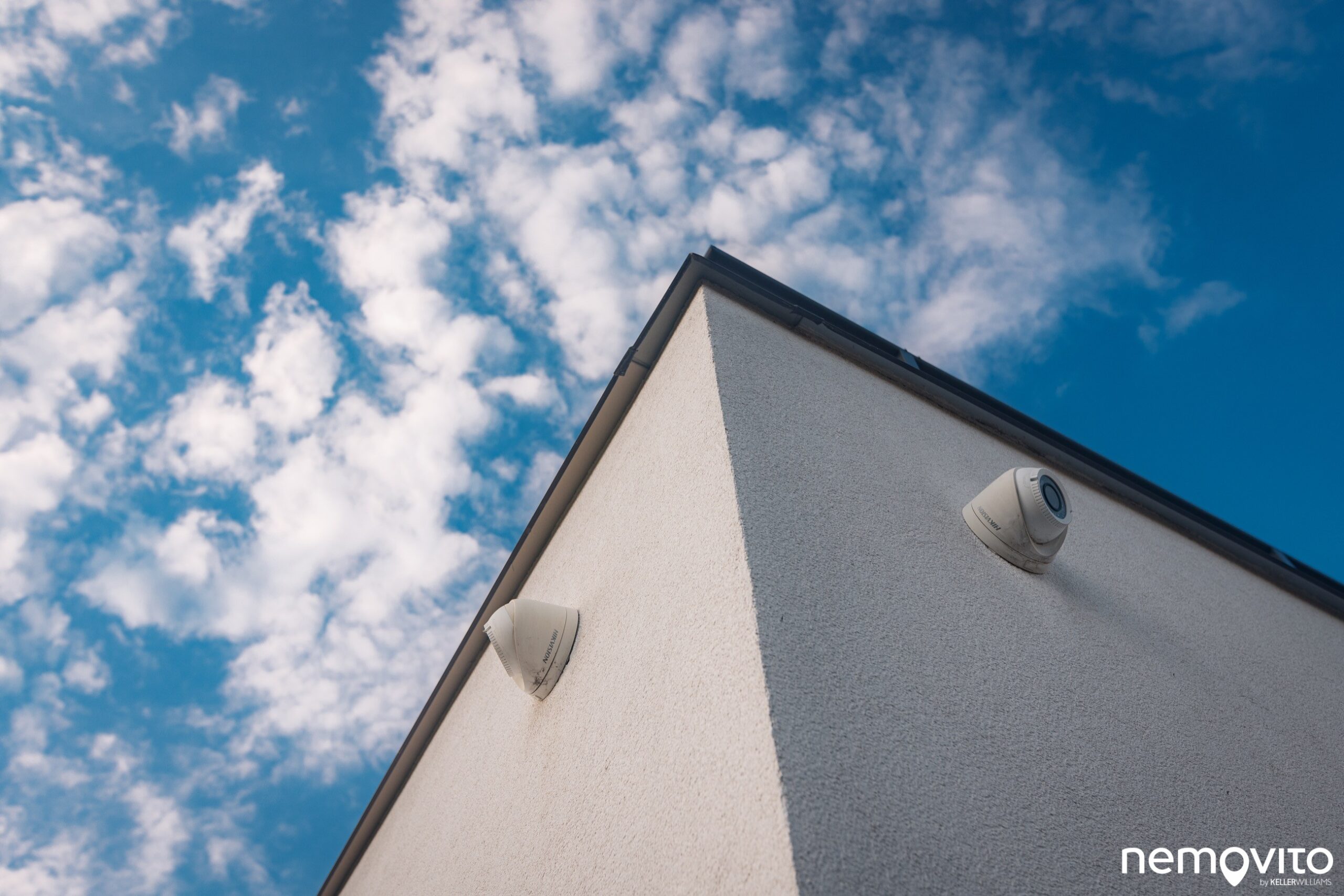 Dům je zabezpečen kamerovým systémem a alarmem Jablotron s pohybovými a magnetickými čidly. Systém lze ovládat z telefonu. Jak již bylo zmíněno, velkoformátová okna v obýváku jsou bezpečnostní s kaleným sklem.