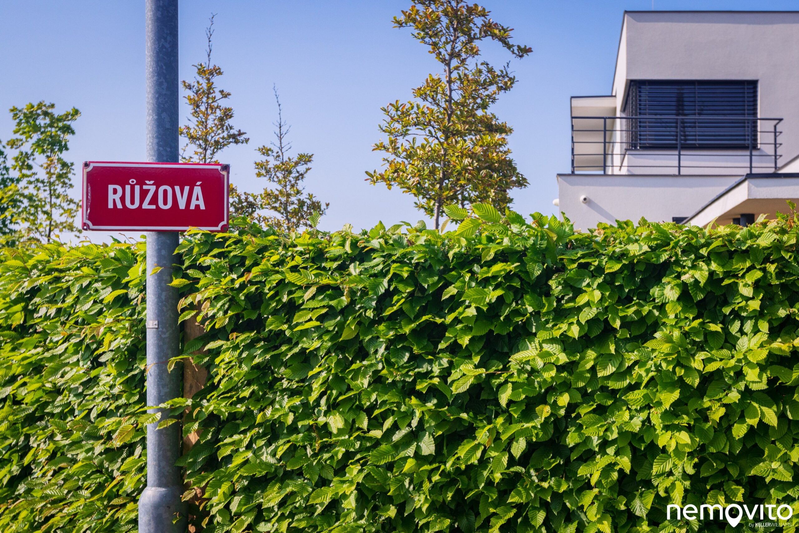 Rohový pozemek těží z minimálního počtu sousedů, zatímco živý plot zajišťuje absolutní soukromí směrem do ulice. Ta má minimální vytíženost, lokalita totiž není průjezdná, tudíž zde žádný velký provoz nečekejte. Dům jsme fotili dva dny, počet aut bychom napočítali na prstech dvou rukou. A z toho 3 byla naše. Nepřeháním.