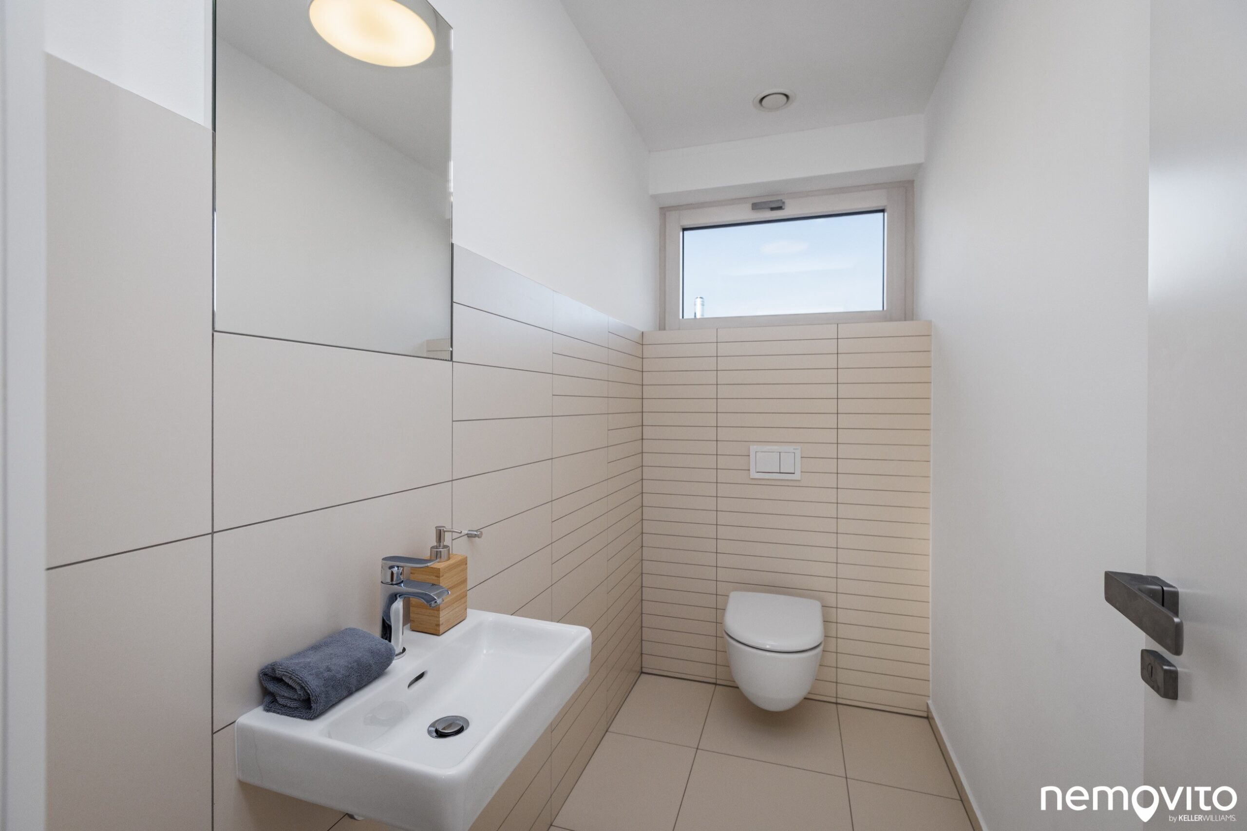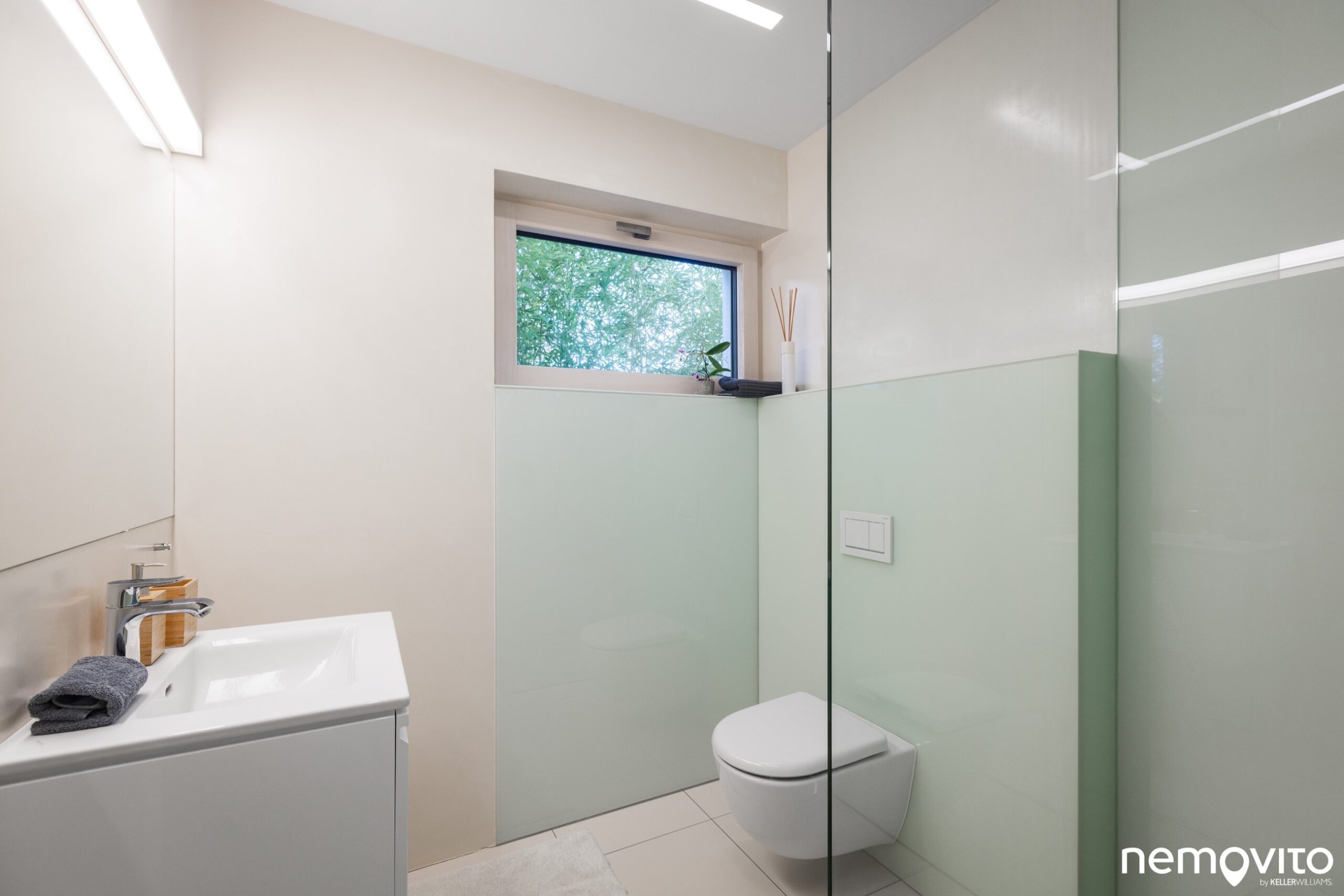 Vstupní část prosvětluje vysoké okno, které poskytuje i jinak tmavým koutům solidní porci denního světla. Mimo 3 koupelen je v domě i samostatná toaleta na každém podlaží. Ta spodní se nachází při vstupu tak, aby byla ihned po ruce.