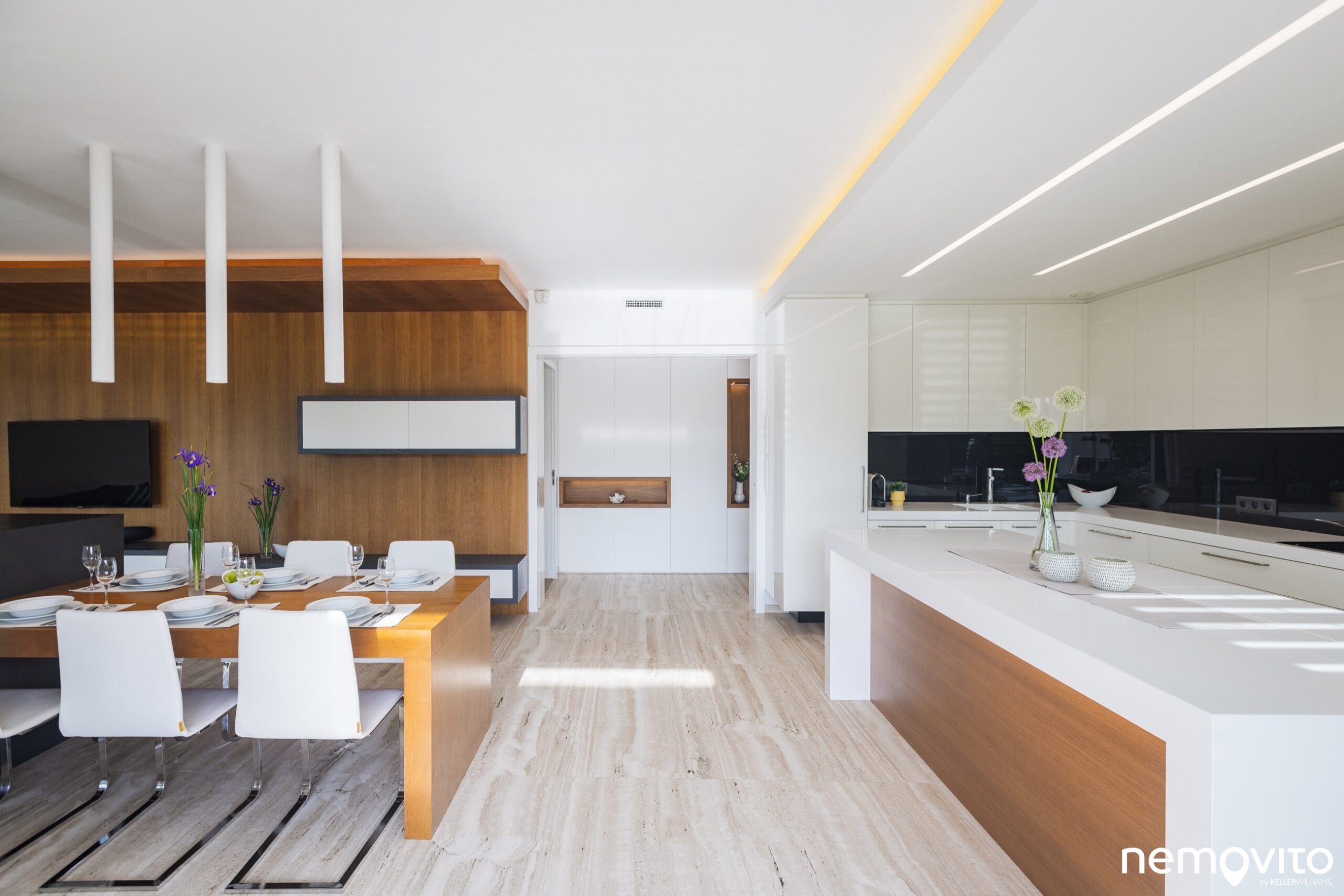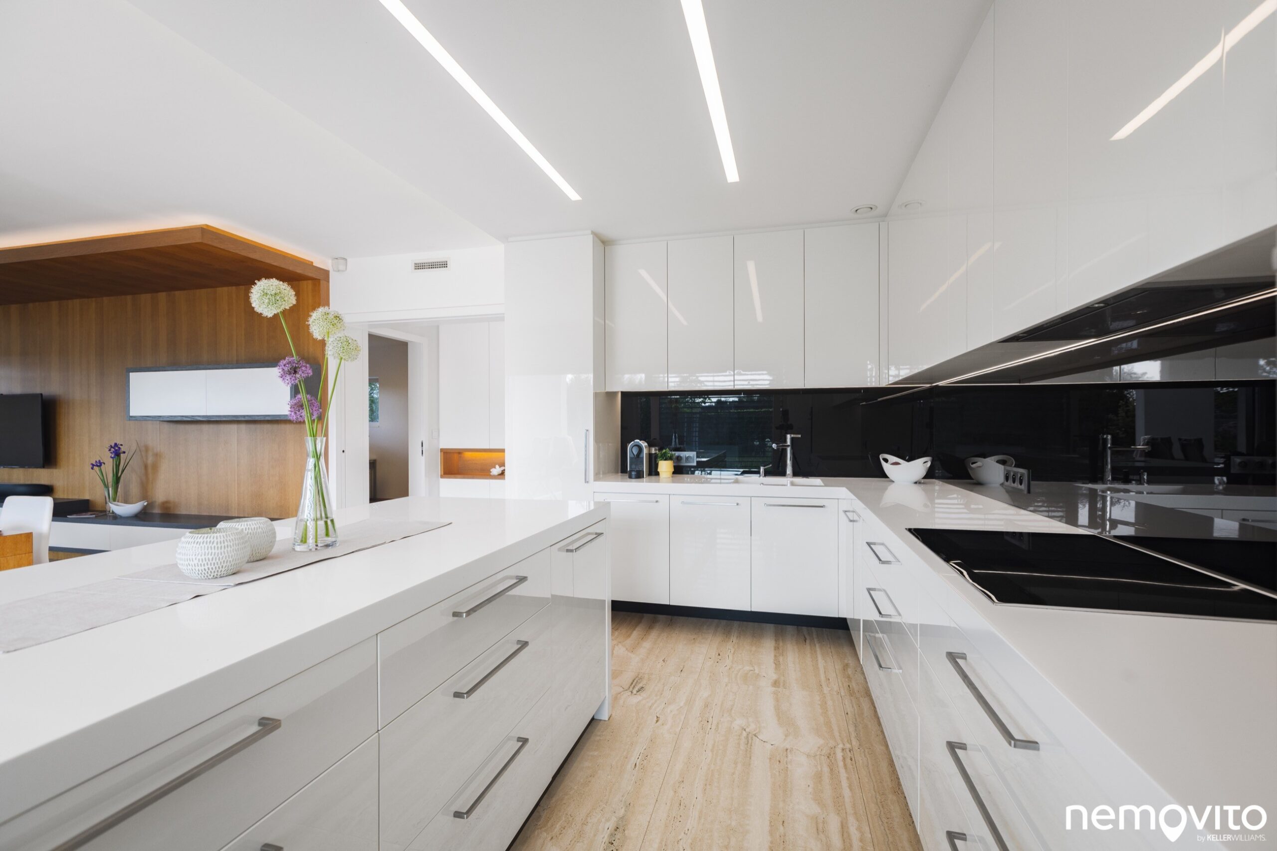 Linka v prostoru levituje. Absence spodních lišt dává vyniknout objemu prostoru. Dalším důležitým faktorem je také to, že toto řešení významně usnadňuje úklid. Robotický vysavač zajede úplně všude. A pokud nefandíte robotům, pak vám bude k ruce centrální vysavač s teleskopickou hadicí, kterou nemusíte nikam napojovat.