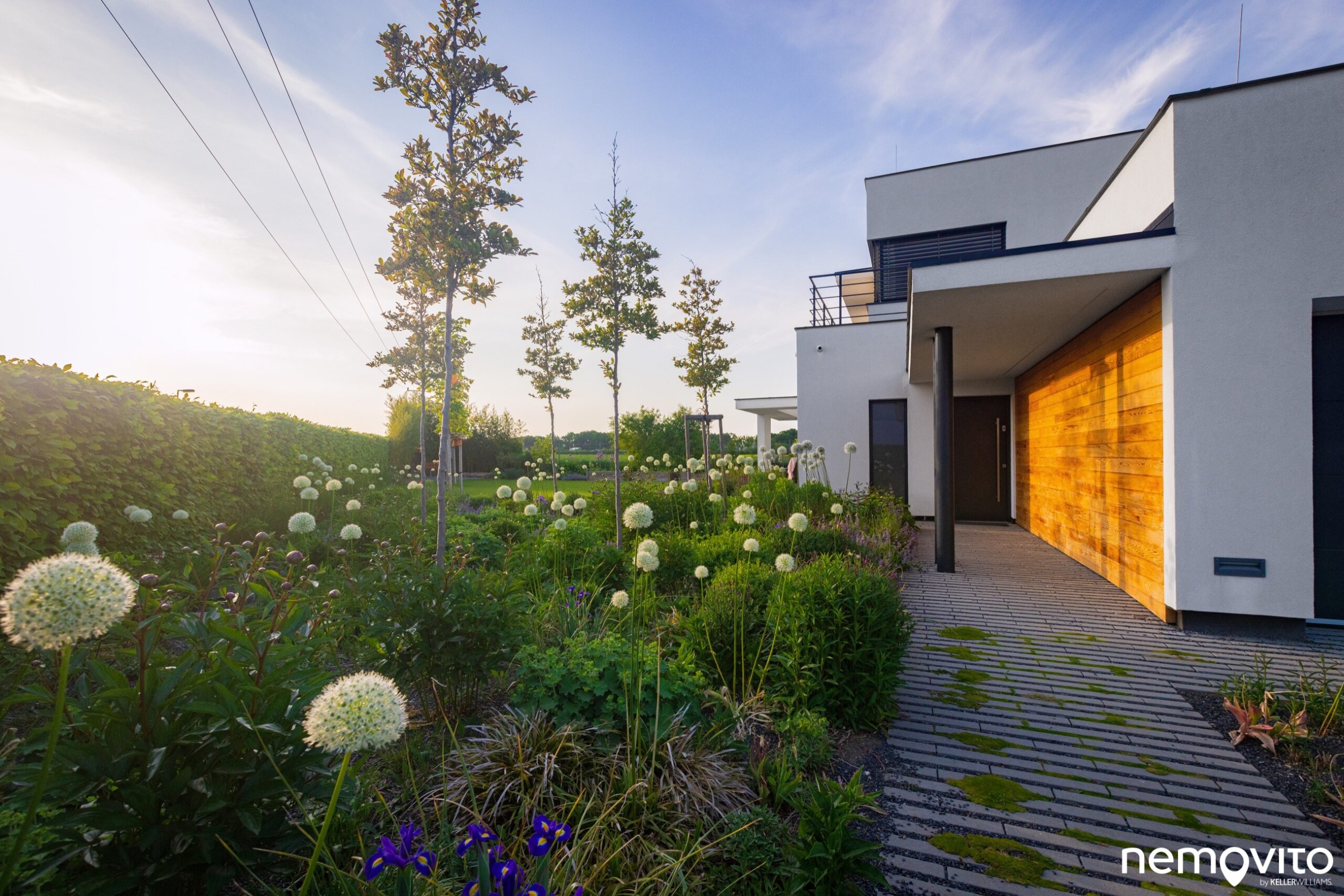 Než se do toho pořádně pustíme, vezmeme to pěkně od začátku. Tedy od pohledu z ulice, kterým vás bude váš nový dům každý den vítat. V živém plotu z habrů, který pozemek lemuje a zajišťuje mu vysokou míru soukromí, zahlédl jsem škarohlída. Ten běžně tvrdí, že duši mají staré domy, a že ty nové postrádají osobnost. Nepochodil, se sklopeným zrakem musel zase o dům dál. Jsou totiž domy, které ač jsou nové, za srdce vás chytnou. Věk je totiž jenom číslo a charisma se jím neřídí.