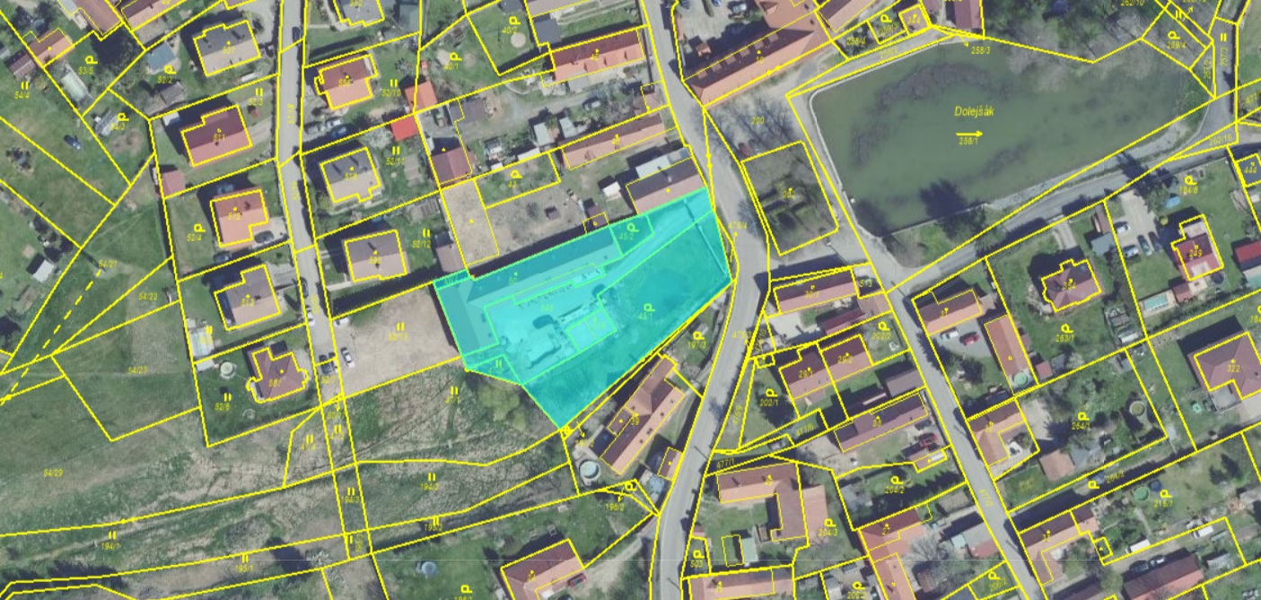 (modře vyznačený je pozemek, který je součástí prodeje)