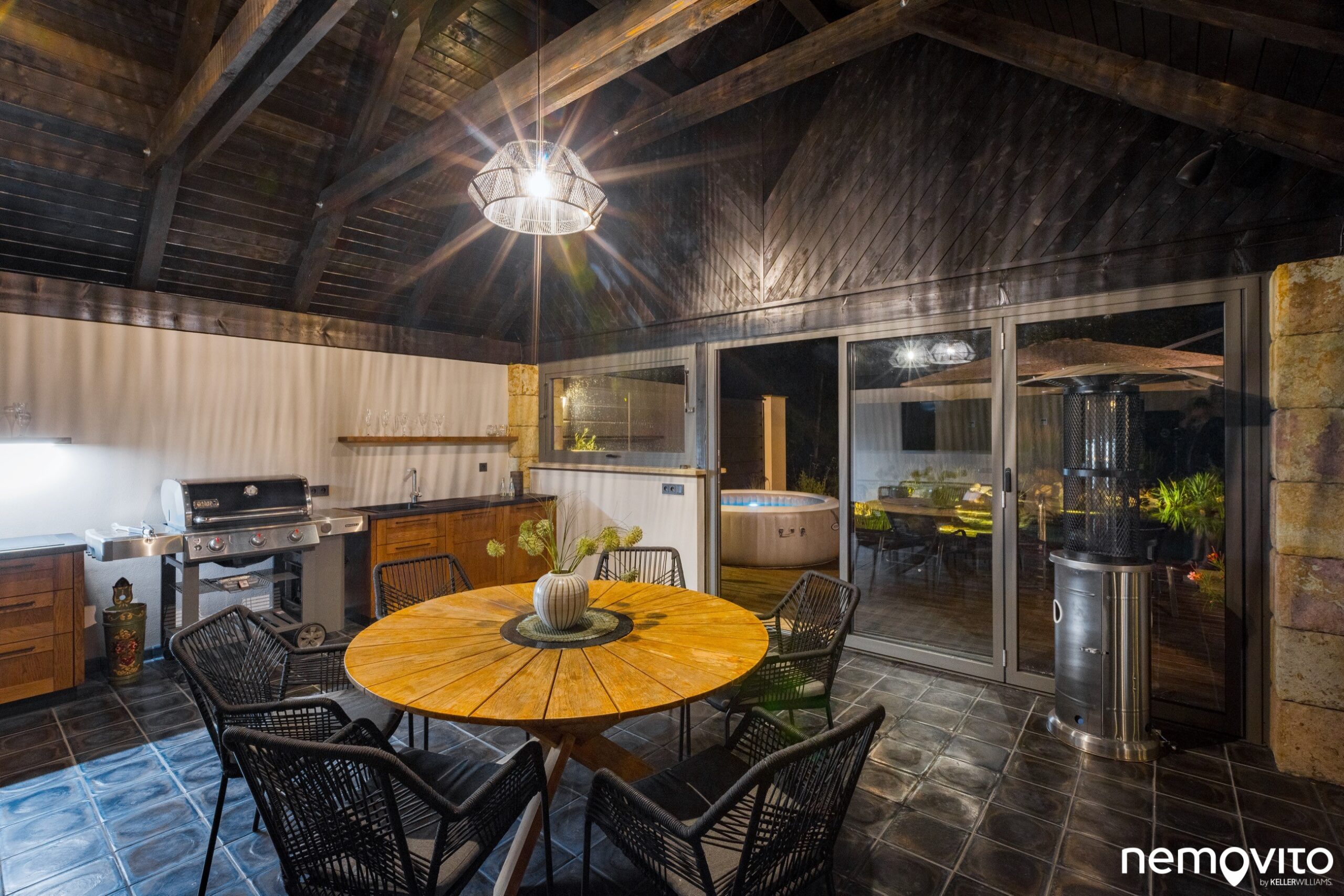V letní kuchyni nechybí plynový gril, dřez, lednice, televize a možnost otevřít velké hliníkové dveře úplně do stran tak, aby vznikla otevřená stěna. Také okno, u kterého jsou zvenčí barové židle, lze vyklopit. Veškeré vybavení, které vidíte na fotkách, zůstává součástí prodeje. Jen maso už budete muset mít vlastní 🙂 Kdyžtak něco seženu!