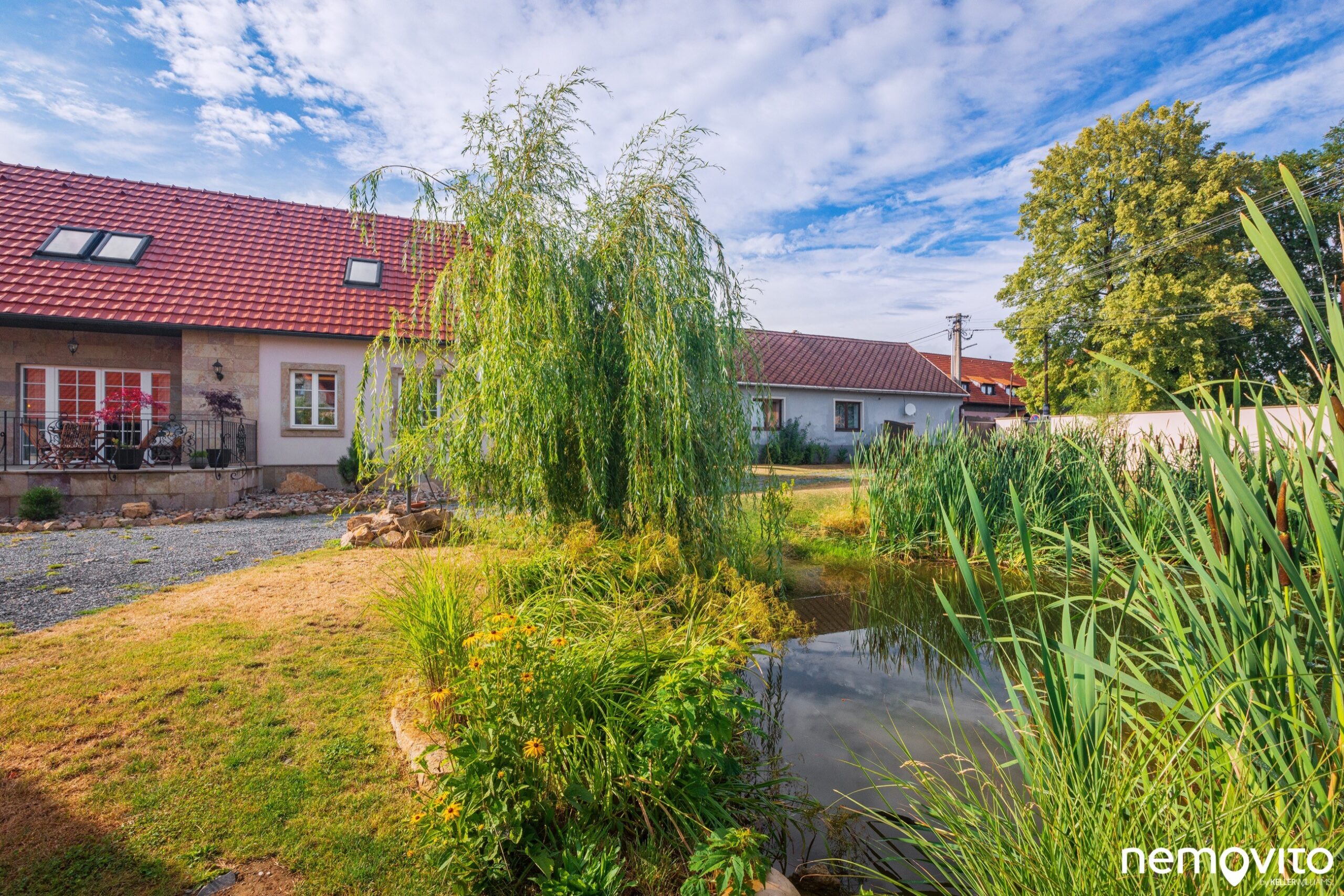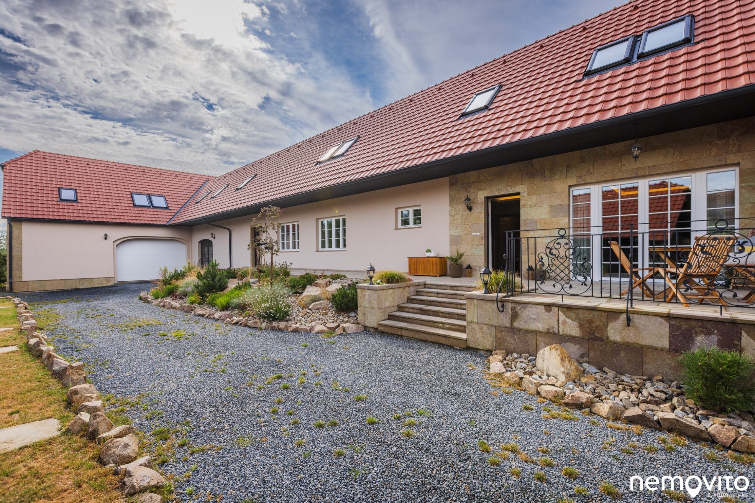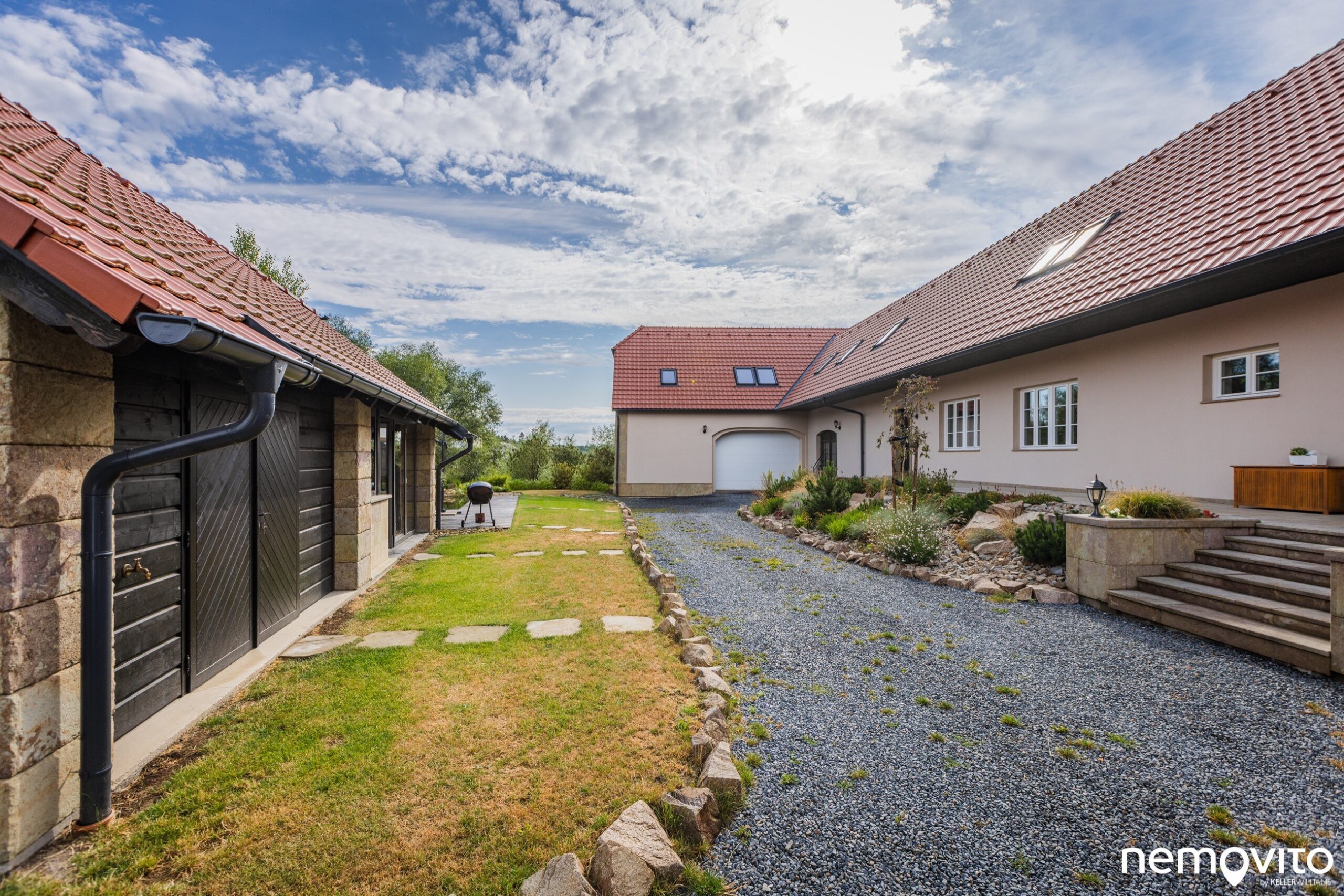 Místo, kde trávíme nejvíce času, utváří celý náš život. To není žádné moudro, ale jednoduchý fakt. Právě proto se chcete stěhovat. Chcete pro děti lepší zázemí, chcete to mít blíže do práce, chcete větší pozemek, větší klid, místo na podnikání nebo koníčky - chcete zkrátka něco, co je lepší než dosud. Budete se ale mít kam posunout odtud? Dost možná ne. Areál tohoto stavení, které si zachovalo tradiční vesnickou podobu navzdory tomu, že je od podlahy zcela nové, nabízí dokonalé zázemí snad pro všechno, na co si vzpomenete.  A pokud vás láká představa uzavřeného světa, ze kterého musíte odcházet jen tehdy, kdy vážně chcete, 35 km od metra Anděl se váš sen může zhmotnit. Toužili jste po velkém pozemku? Po biotopu? Po rybníčku? Po špičkovém zázemí pro grilování a vaše sešlosti? Chcete velkou garáž na několik aut? Mít kam ukládat vaše víno? Vaše umělecká duše potřebuje prostor na tvoření? A co rodiče nebo návštěvy, chcete je ubytovat v samostatném bytě v rámci jednoho domu? Všechno můžete. To poslední dokonce dvakrát. Zní to až moc dobře? Dobré věci zkrátka dobré jsou, nehledejte v tom žádný háček.