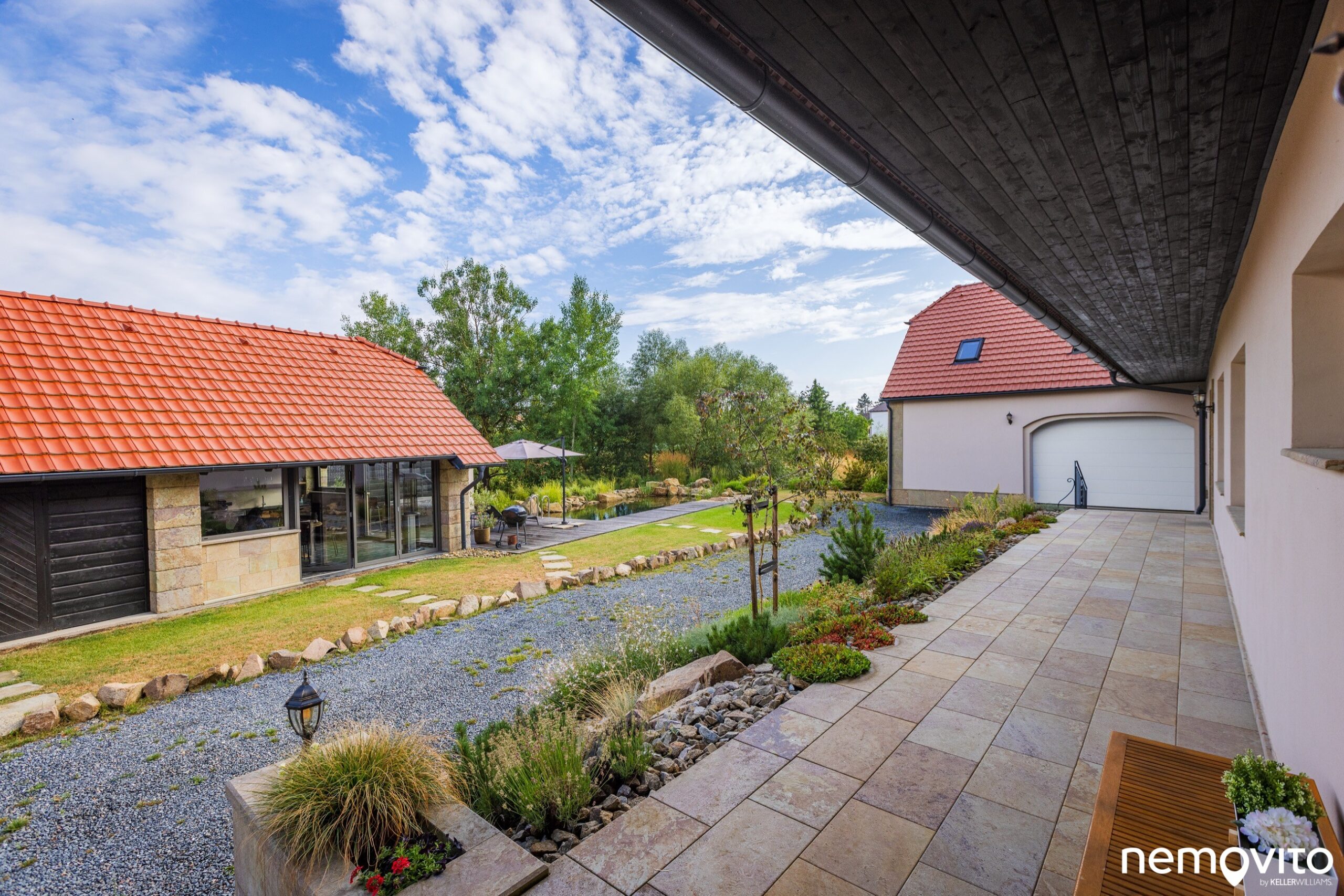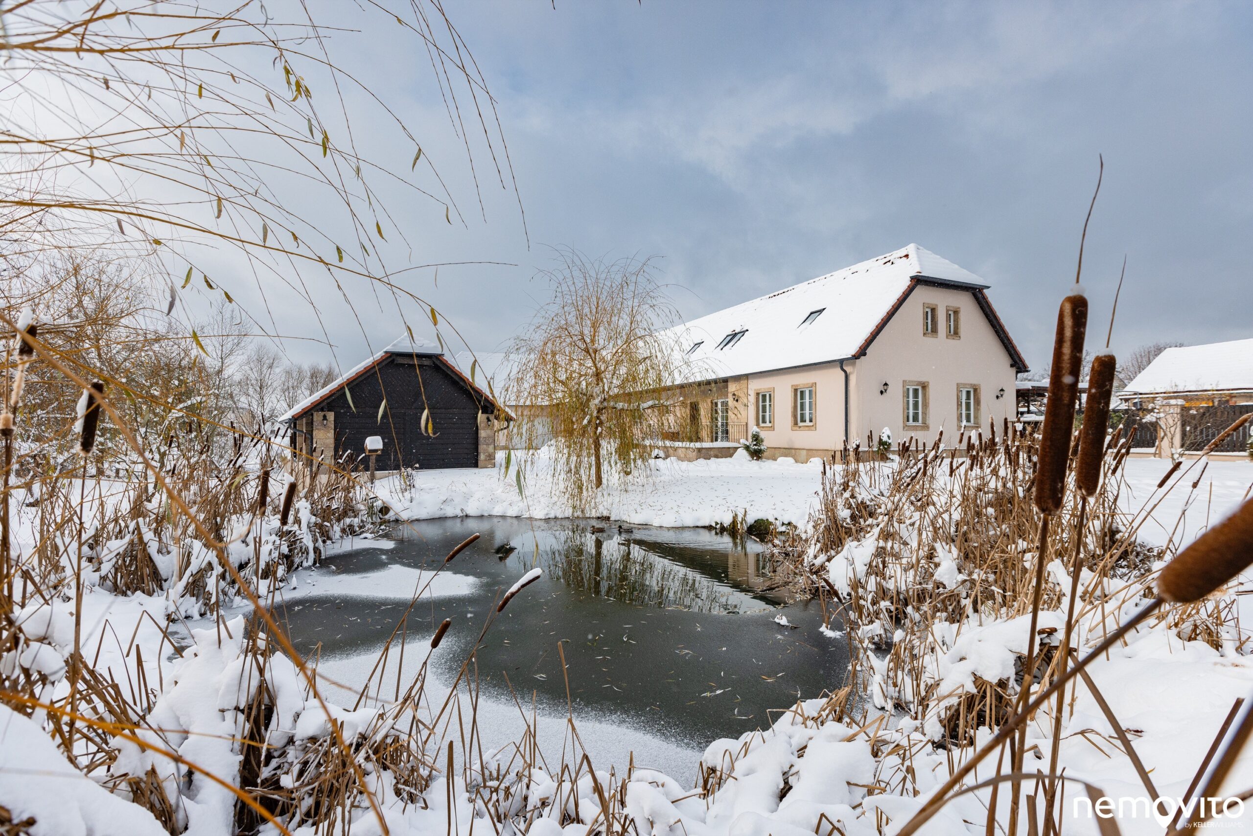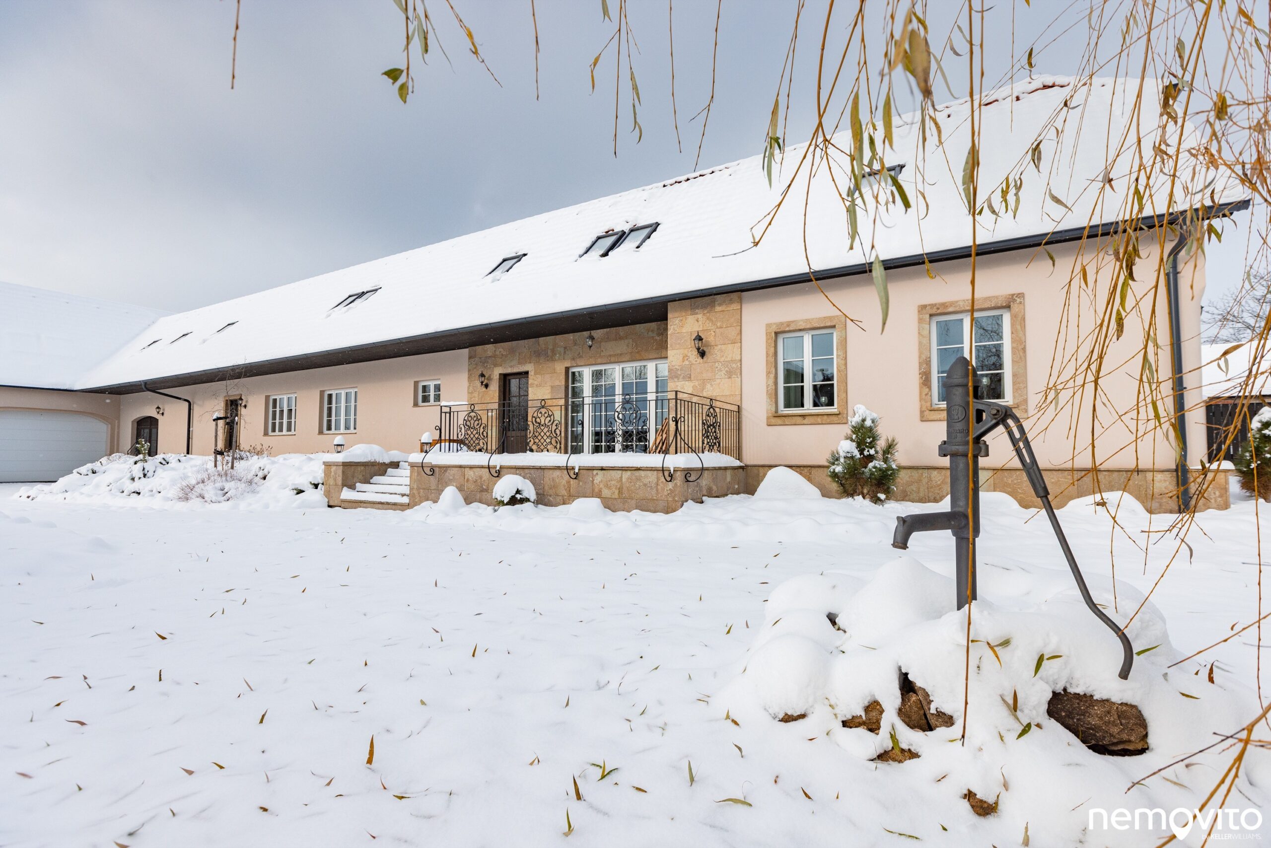 Místo, kde trávíme nejvíce času, utváří celý náš život. To není žádné moudro, ale jednoduchý fakt. Právě proto se chcete stěhovat. Chcete pro děti lepší zázemí, chcete to mít blíže do práce, chcete větší pozemek, větší klid, místo na podnikání nebo koníčky - chcete zkrátka něco, co je lepší než dosud. Budete se ale mít kam posunout odtud? Dost možná ne. Areál tohoto stavení, které si zachovalo tradiční vesnickou podobu navzdory tomu, že je od podlahy zcela nové, nabízí dokonalé zázemí snad pro všechno, na co si vzpomenete.  A pokud vás láká představa uzavřeného světa, ze kterého musíte odcházet jen tehdy, kdy vážně chcete, 35 km od metra Anděl se váš sen může zhmotnit. Toužili jste po velkém pozemku? Po biotopu? Po rybníčku? Po špičkovém zázemí pro grilování a vaše sešlosti? Chcete velkou garáž na několik aut? Mít kam ukládat vaše víno? Vaše umělecká duše potřebuje prostor na tvoření? A co rodiče nebo návštěvy, chcete je ubytovat v samostatném bytě v rámci jednoho domu? Všechno můžete. To poslední dokonce dvakrát. Zní to až moc dobře? Dobré věci zkrátka dobré jsou, nehledejte v tom žádný háček.