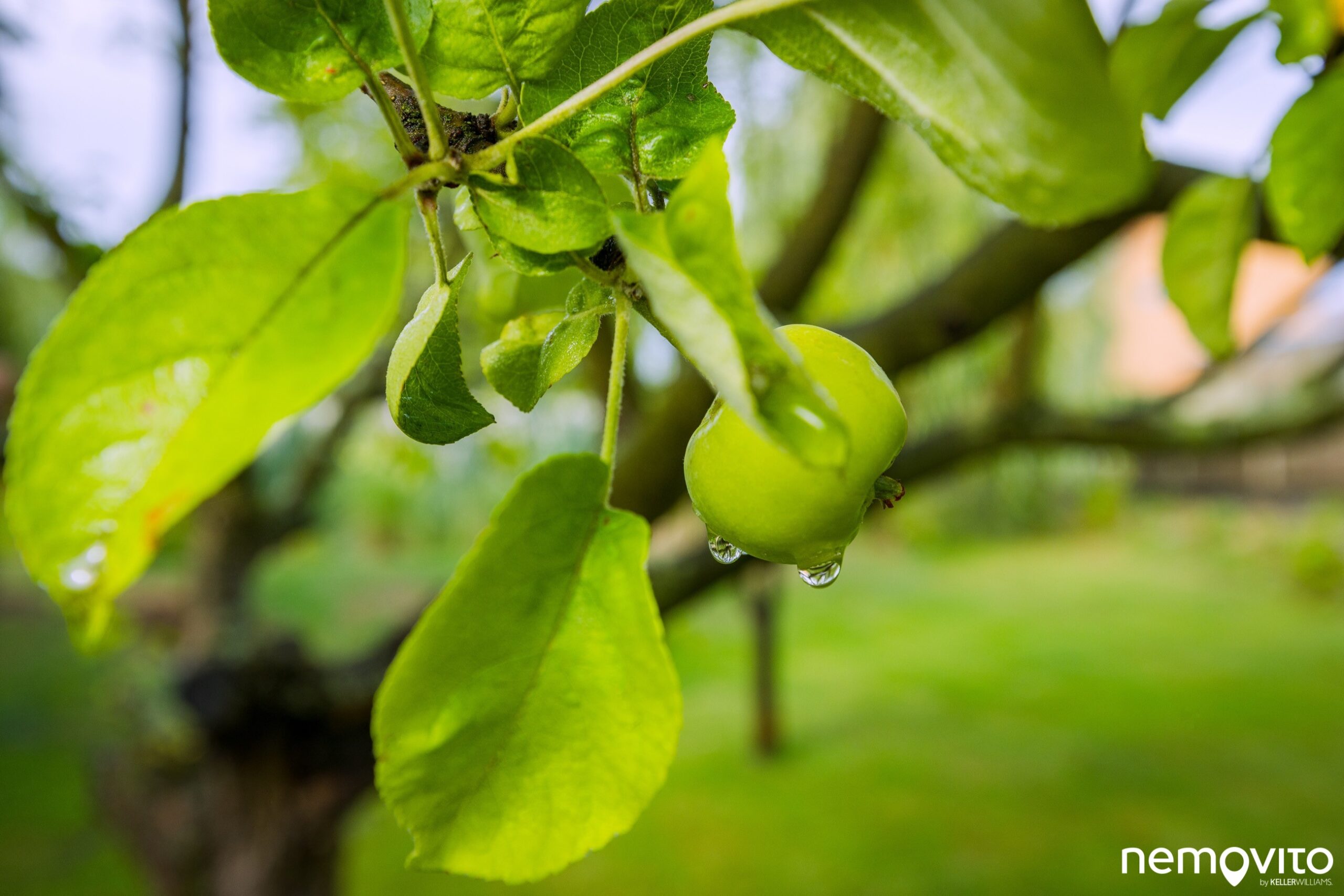 Zahrádka, která se nachází za potůčkem zpoza zahradního domku, nabízí společně s rybníčkem zhruba 850 m2 plochy, na které je řada vzrostlých stromů.