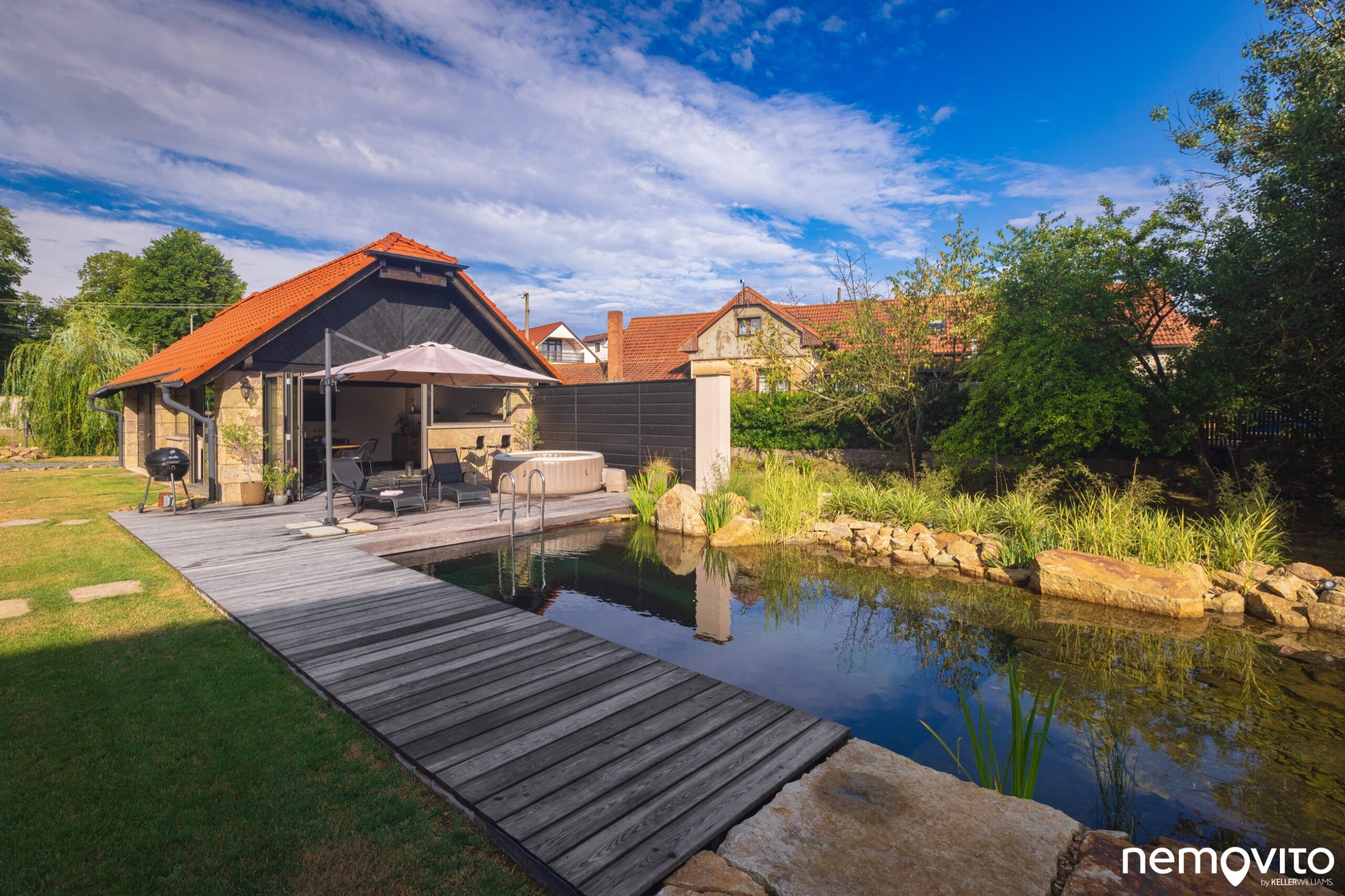 Když už je řeč o té vodě, biotopem jsme neskončili. Před zahradním domkem se totiž nachází skutečný přírodní rybníček. Pokud jste fanoušci rybolovu, pár kousků si můžete umístit rovnou domů.