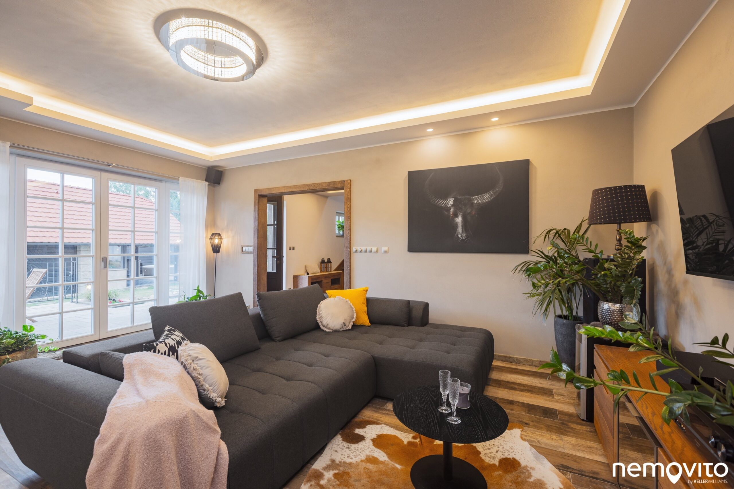 Vše na jednom místě. Dokonalé útočiště pro celou vaši rodinu, která si bude moci užívat obrovského množství místa. Dům o velikosti přes 600 m2 doplňuje pozemek o ploše bezmála 2.500 m2. Uff, to jsou čísla! Na papíře vypadají jako opravdu veliká. Počkejte ale, až tady budete osobně a zažijete to, co fotky ani popis neumí věrohodně přenést. Ať jsou parametry této nemovitosti sebevíc nevídané, tu hlavní show tady tvoří kouzelné slůvko na 9 písmen. Atmosféra. Ve dne, v noci. Za slunce či deště. Měl jsem to štěstí tady zažít všechno. Už teď vám ale mohu tiše závidět. Zažít a žít je rozdíl. Na vás čeká to druhé. Žít svůj sen můžete začít právě teď. A nemarněte čas, vaše nová životní etapa už je za dveřmi.