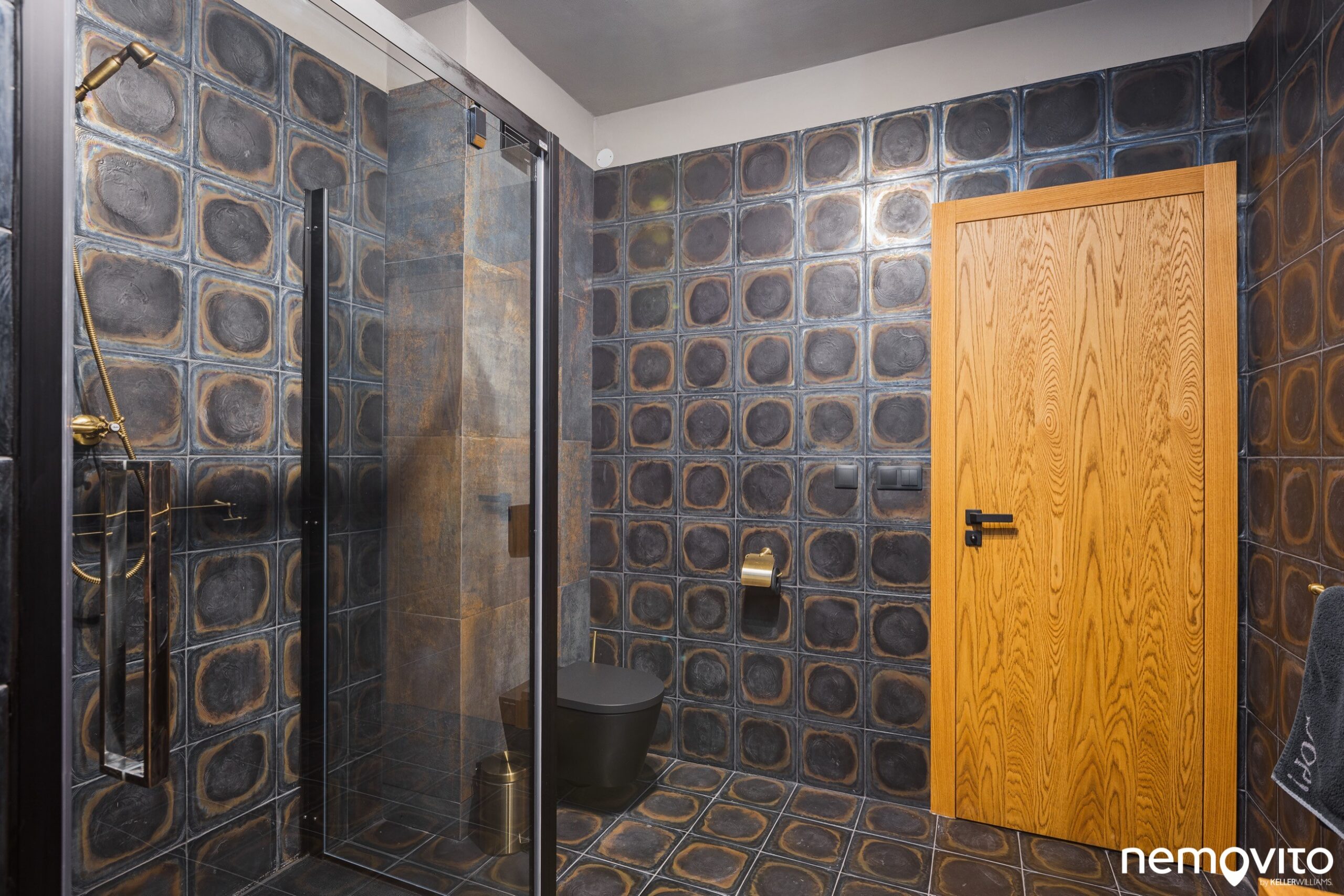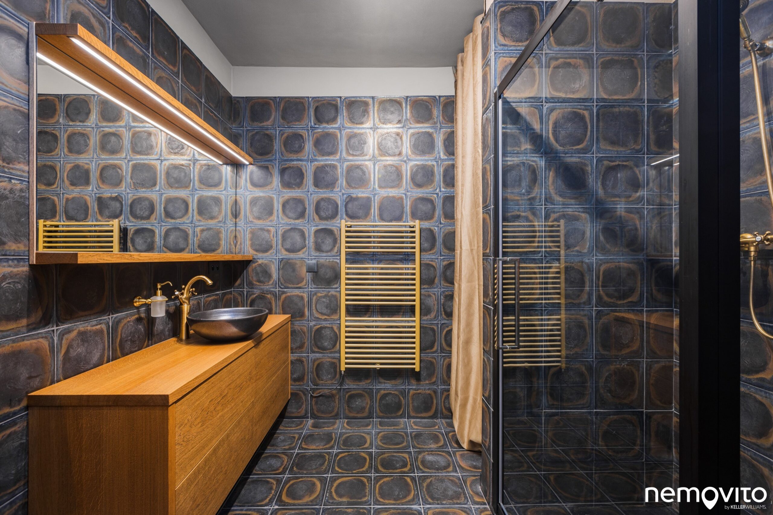 Podlahy a obklady tvoří v menších jednotkách sjednocená čedičová dlažba. Ta nejen dobře vypadá, ale také je praktická. Zejména pak pro situaci, kdy byste se rozhodli přilepšit rodinnému rozpočtu dlouhodobým či krátkodobým pronájmem. Žádná poškrábaná dřevěná podlaha, tohle snese ledacos. Hosty, děti, zvířata.