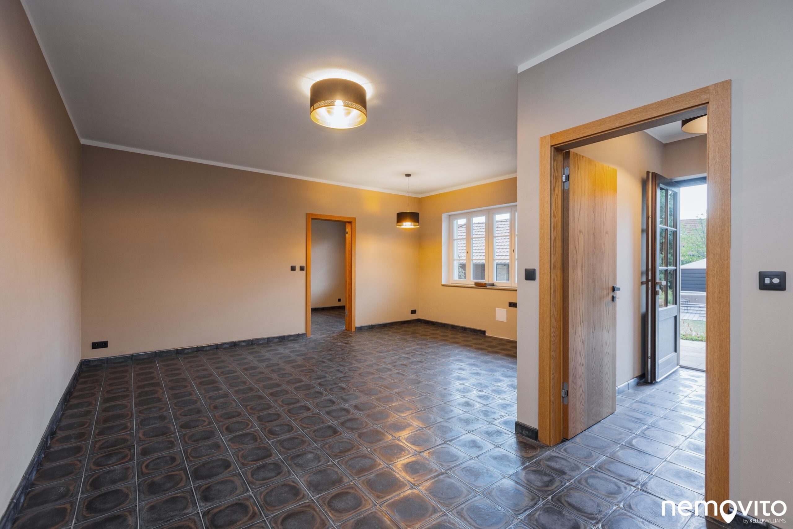 Obývacímu pokoji slouží celá přední část domu. Propojení s terasou je možné přes velké křídlové dveře.