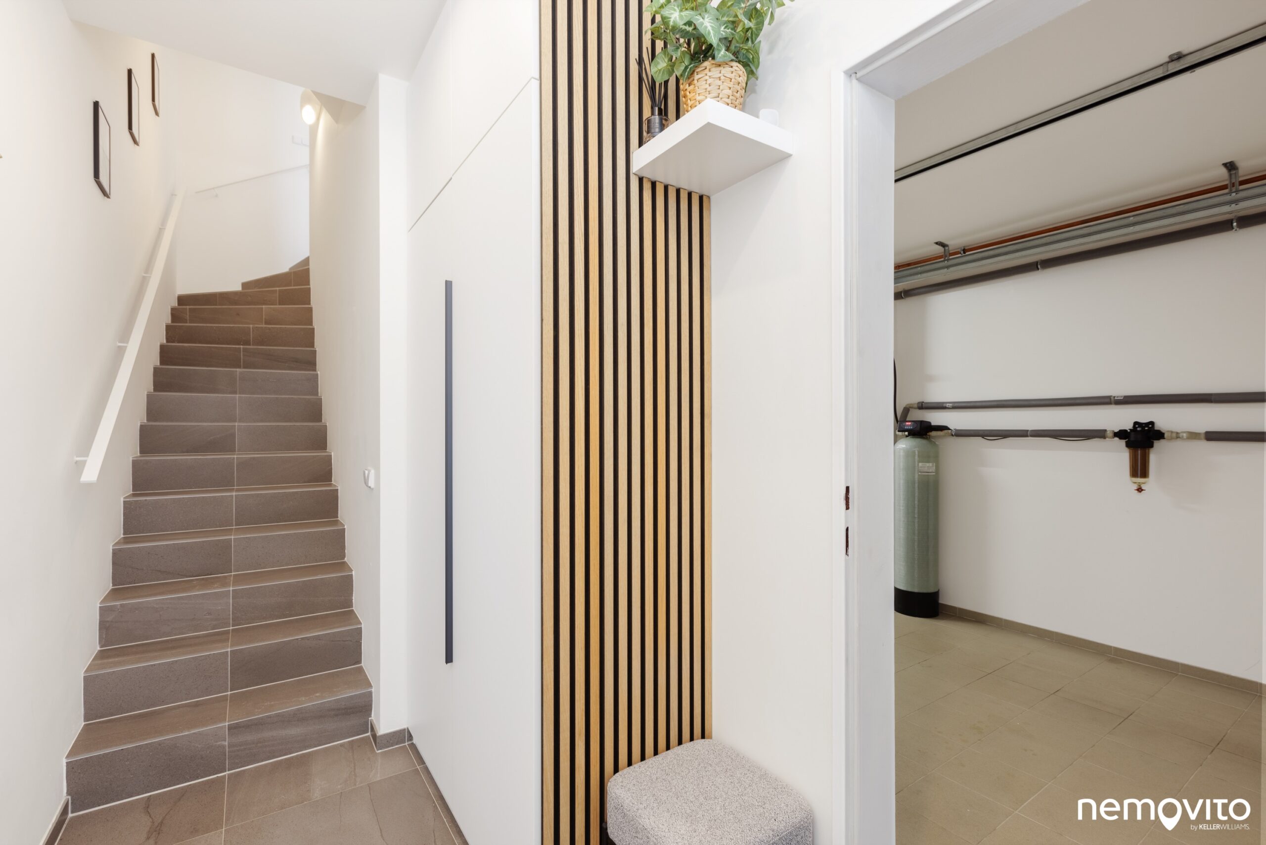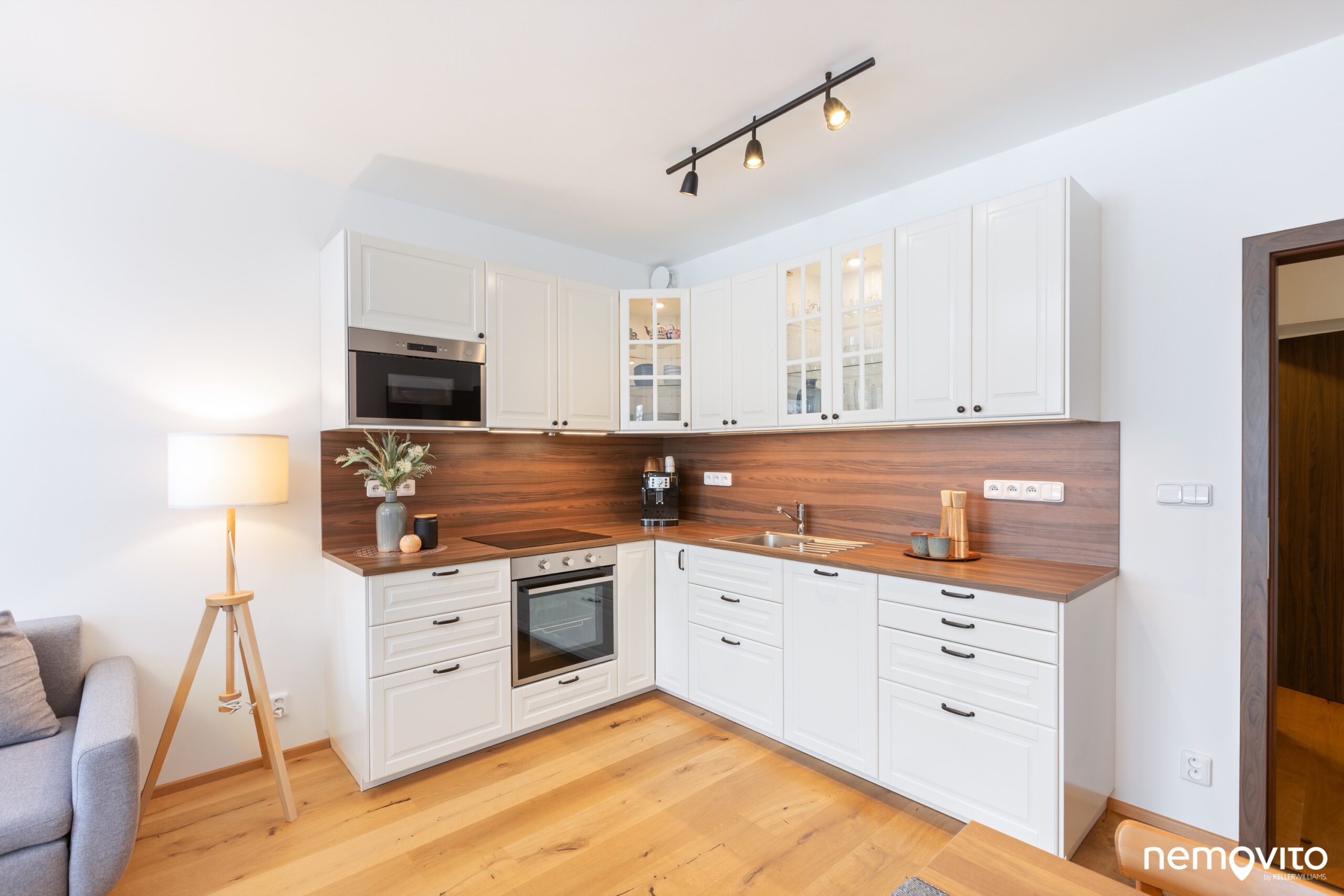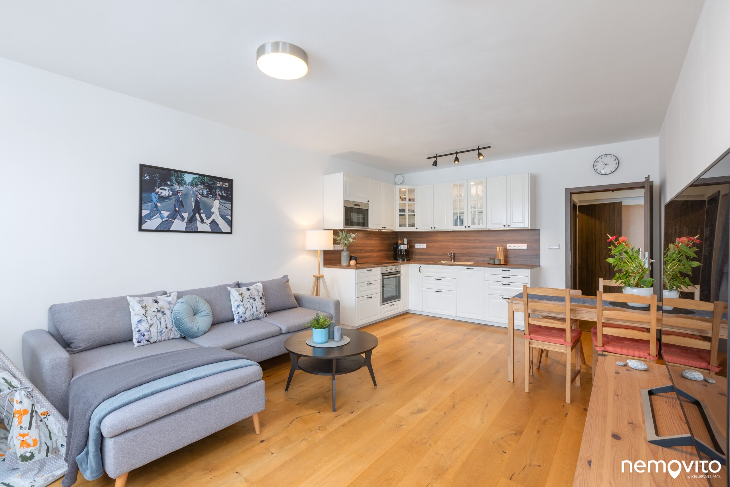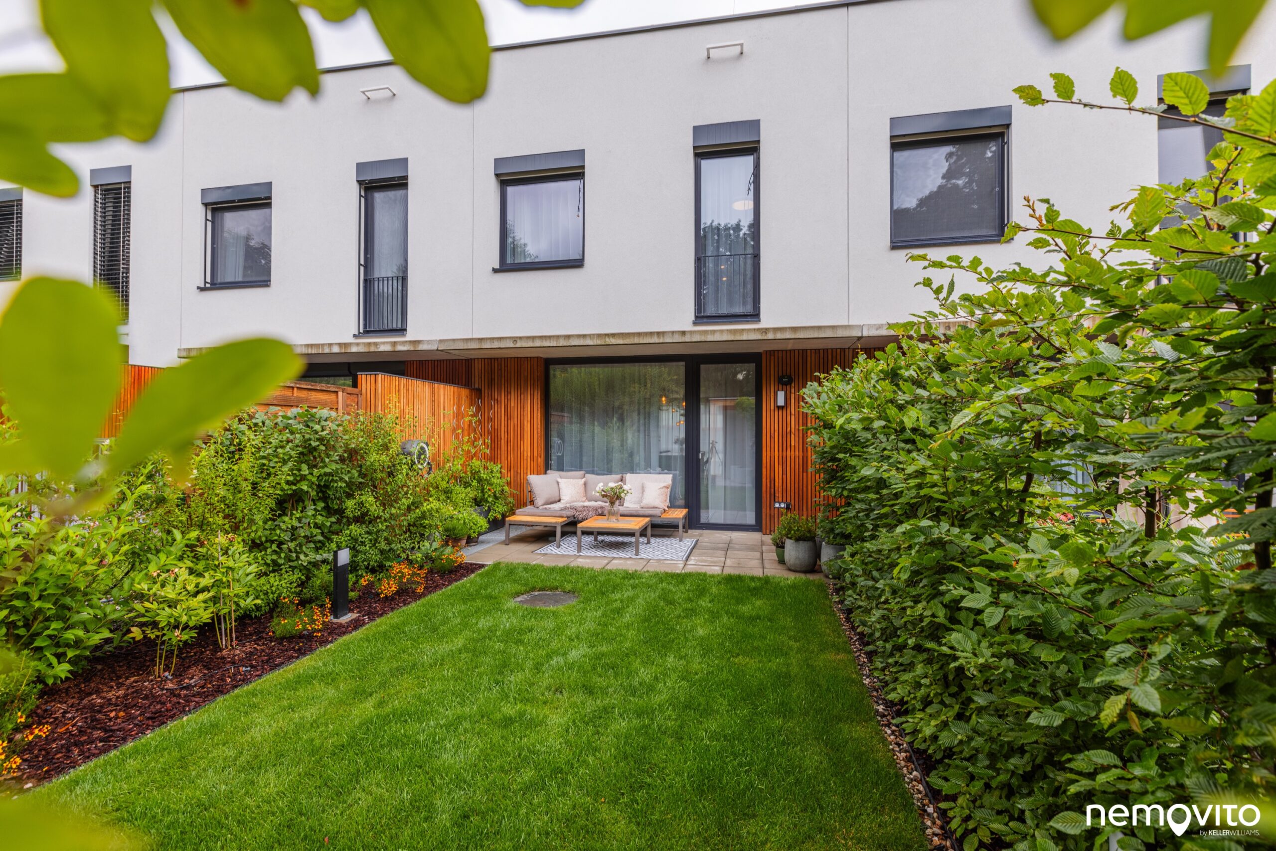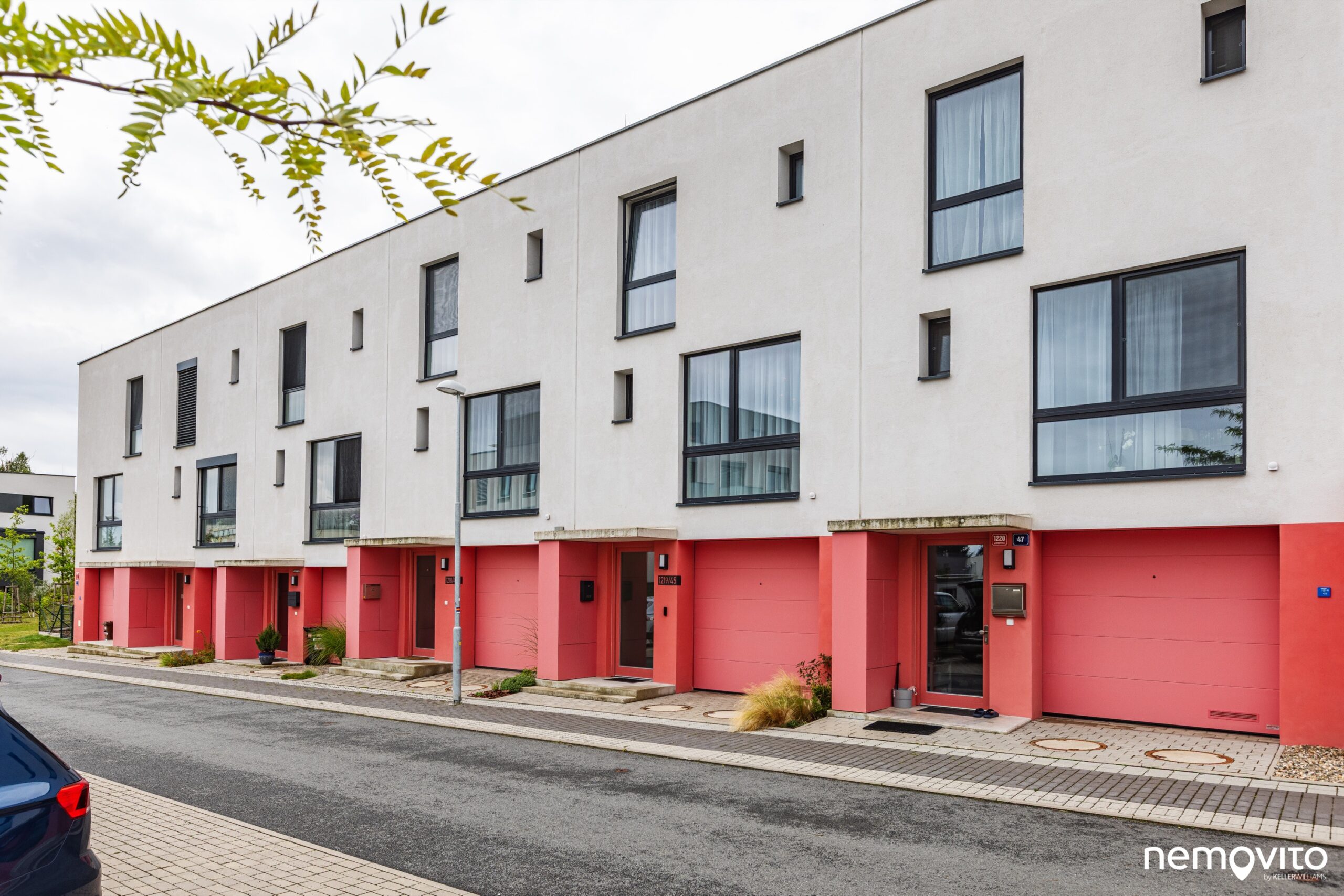 Nejen 4 stěny, ale rovnou celý domov. Tento špičkově vybavený dům, ve kterém proti původnímu standardu nezůstal kámen na kameni, totiž pořizujete přesně tak, jak ho vidíte. Včetně veškerého nábytku. Majitel si pouze odveze kufry s osobními věcmi a stejně tak můžete postupovat i vy. Okamžitě ready, ve špičkovém stavu. A na perfektním místě v projektu, který získával ceny od odborné veřejnosti. Řadovky sice klamou tělem, ale v tomto případě je překvapení dvojnásobné. Kdo by čekal v řadovce takhle obří garáž? Nebo obývák, jehož plocha je skoro 50 m2? Dispozice, která vznikla dle aktuálních potřeb a standardů, nabízí vše pro život moderní rodiny. Soukromá zóna ložnic je až nahoře, vaše návštěva tak nemusí narušovat privátní provoz vaší rodinky. Ponožky tak klidně nechejte poházené kolem postele, ale byla by to přece jenom škoda. Ta krásná dřevěná podlaha by měla zůstat na očích. A co teprve ta kuchyně. Ta by rovnou mohla na titulku magazínu o bydlení.