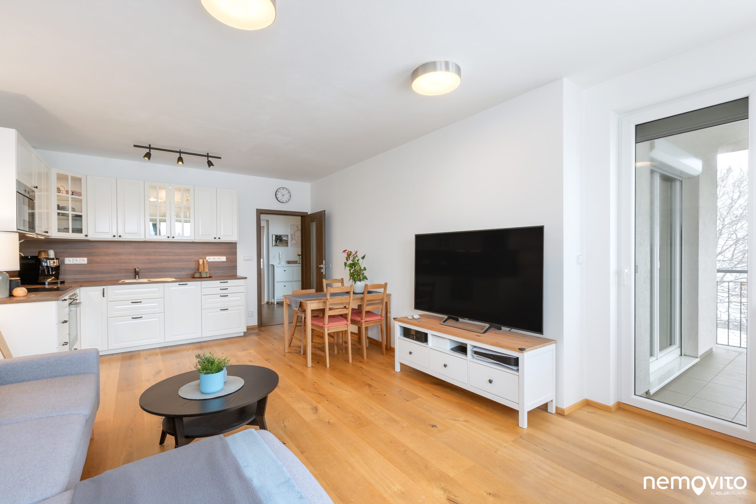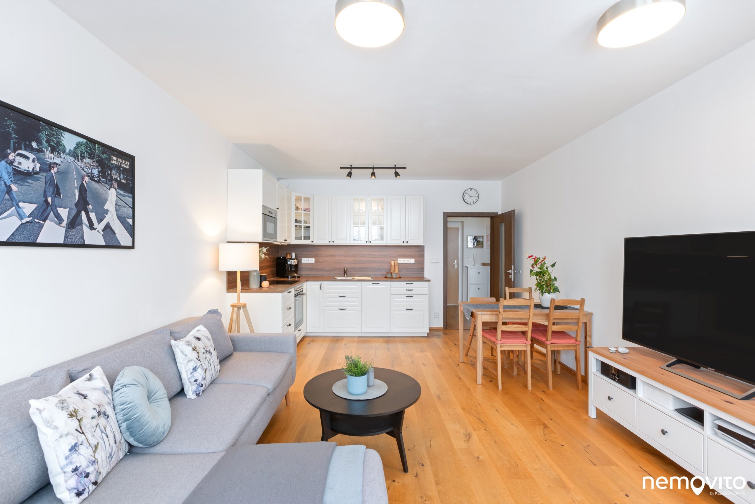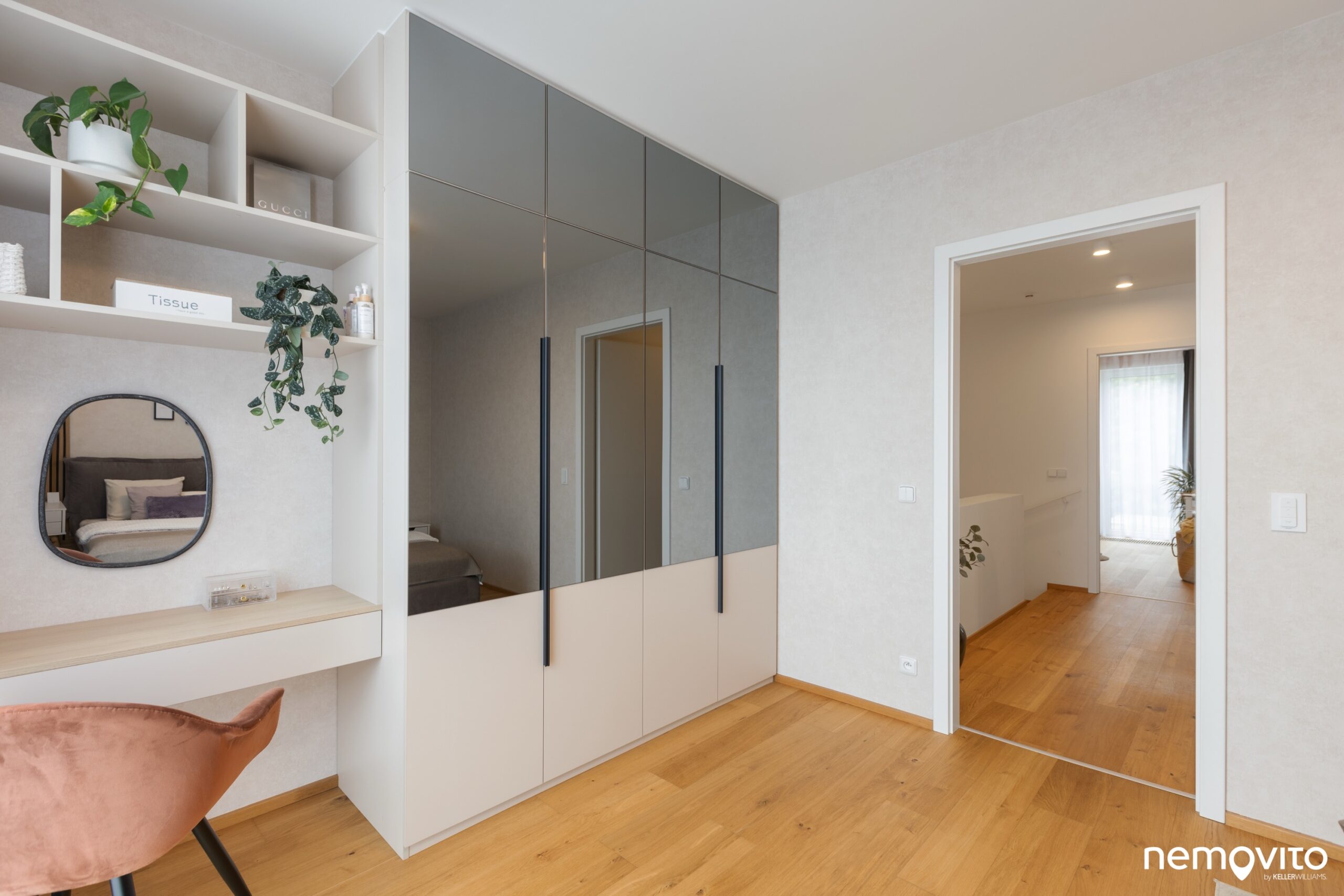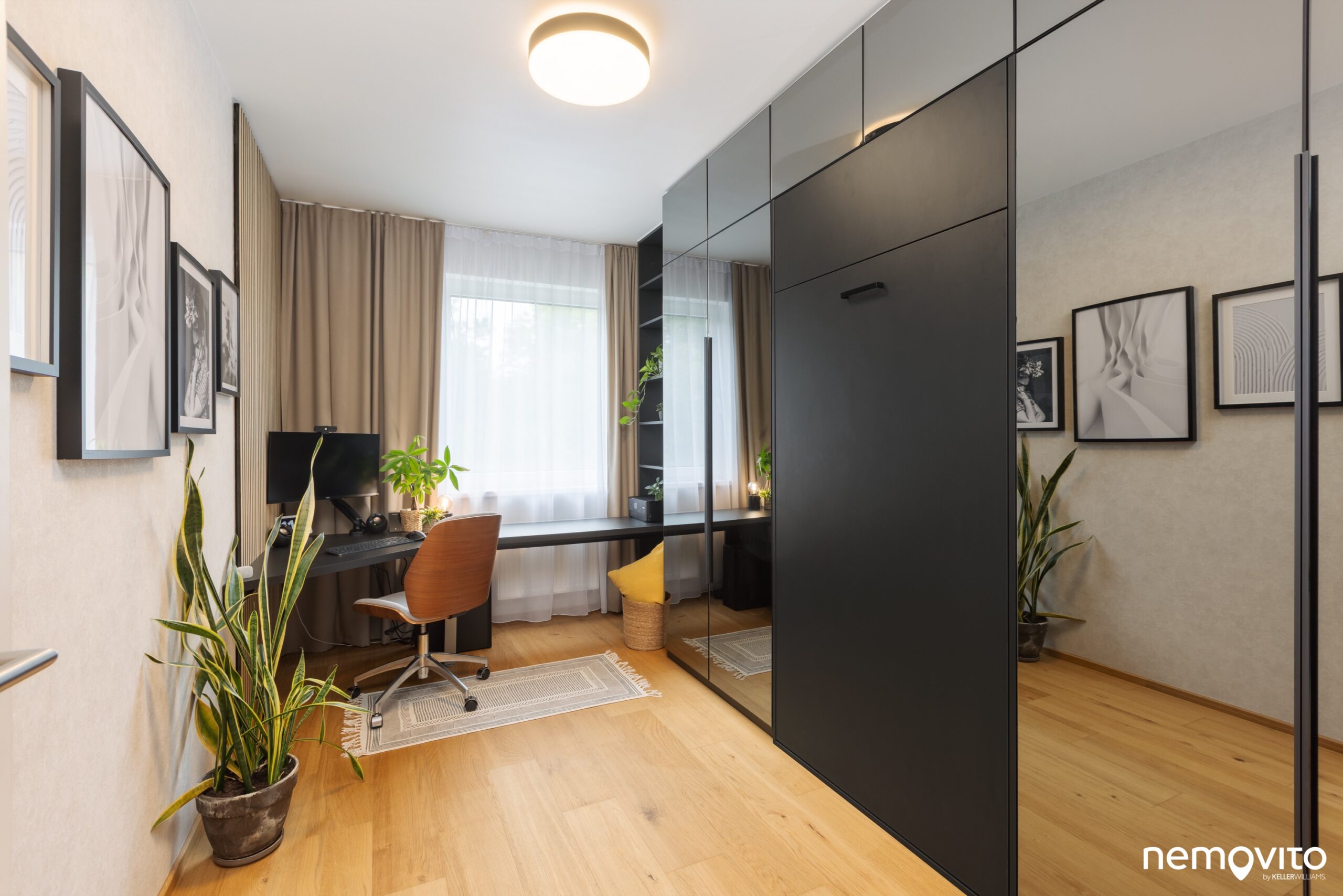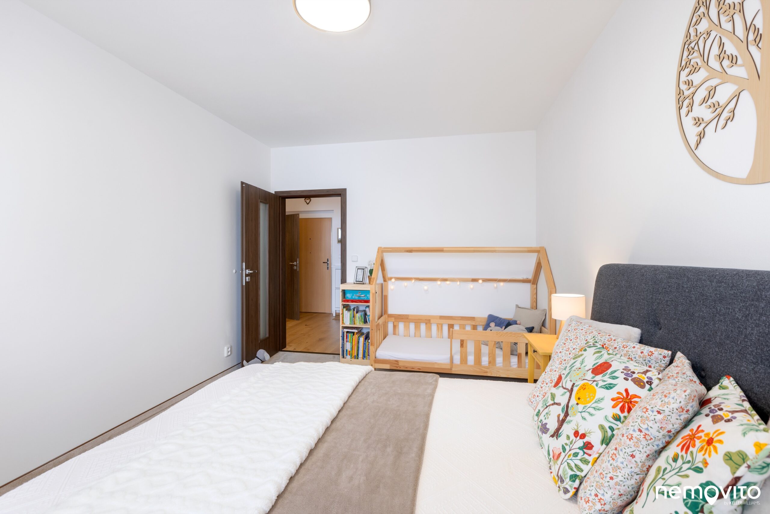 Nejen 4 stěny, ale rovnou celý domov. Tento špičkově vybavený dům, ve kterém proti původnímu standardu nezůstal kámen na kameni, totiž pořizujete přesně tak, jak ho vidíte. Včetně veškerého nábytku. Majitel si pouze odveze kufry s osobními věcmi a stejně tak můžete postupovat i vy. Okamžitě ready, ve špičkovém stavu. A na perfektním místě v projektu, který získával ceny od odborné veřejnosti. Řadovky sice klamou tělem, ale v tomto případě je překvapení dvojnásobné. Kdo by čekal v řadovce takhle obří garáž? Nebo obývák, jehož plocha je skoro 50 m2? Dispozice, která vznikla dle aktuálních potřeb a standardů, nabízí vše pro život moderní rodiny. Soukromá zóna ložnic je až nahoře, vaše návštěva tak nemusí narušovat privátní provoz vaší rodinky. Ponožky tak klidně nechejte poházené kolem postele, ale byla by to přece jenom škoda. Ta krásná dřevěná podlaha by měla zůstat na očích. A co teprve ta kuchyně. Ta by rovnou mohla na titulku magazínu o bydlení.