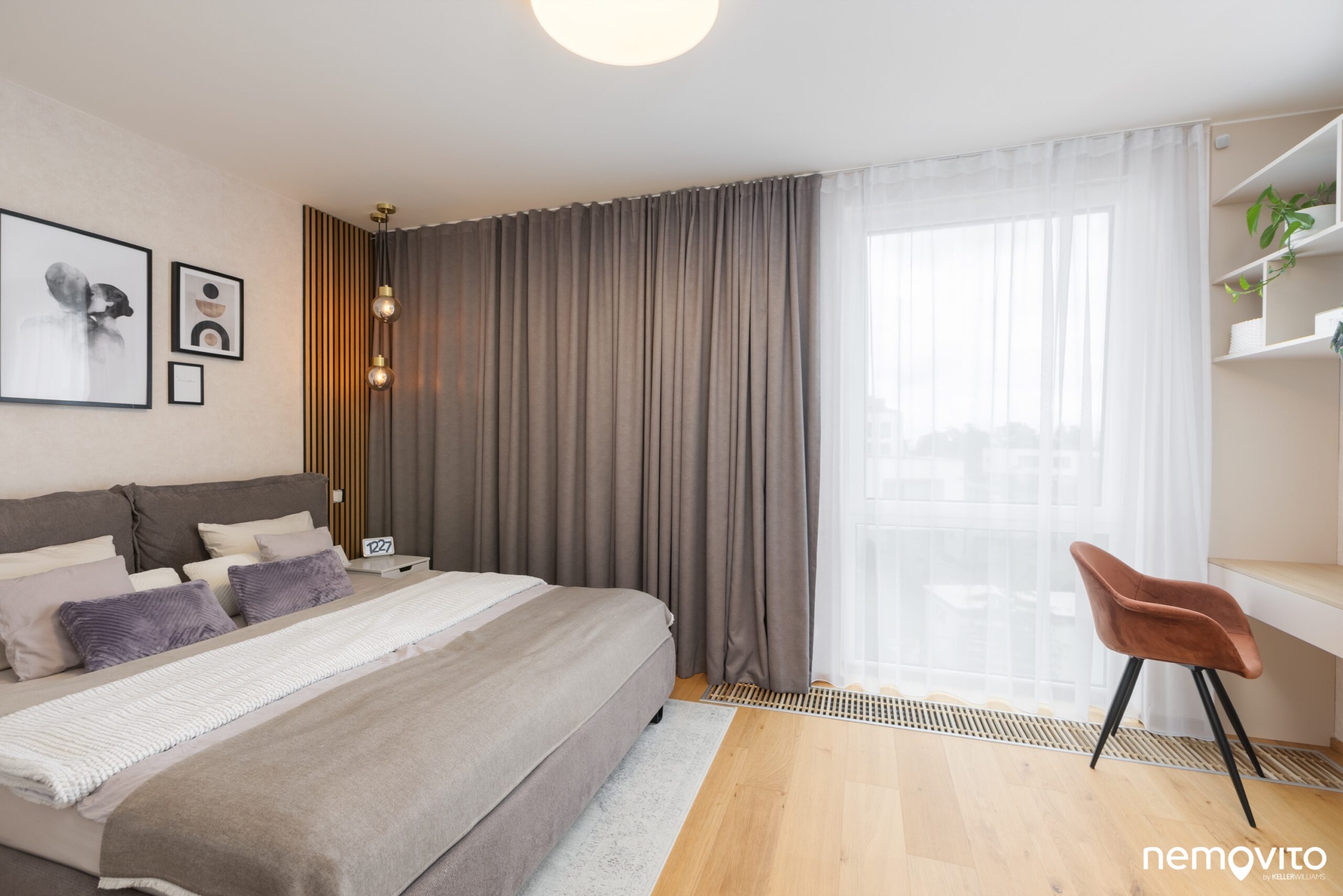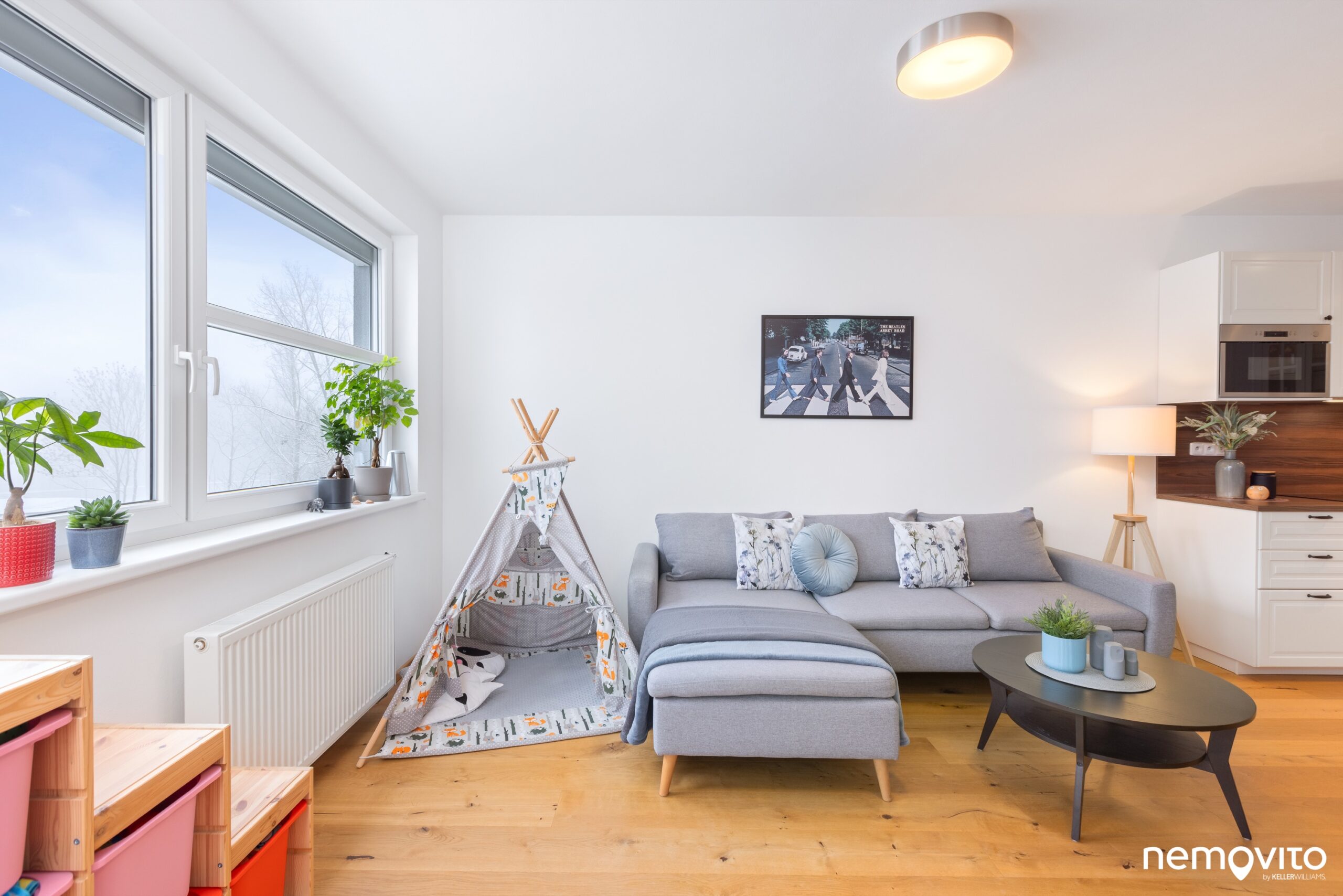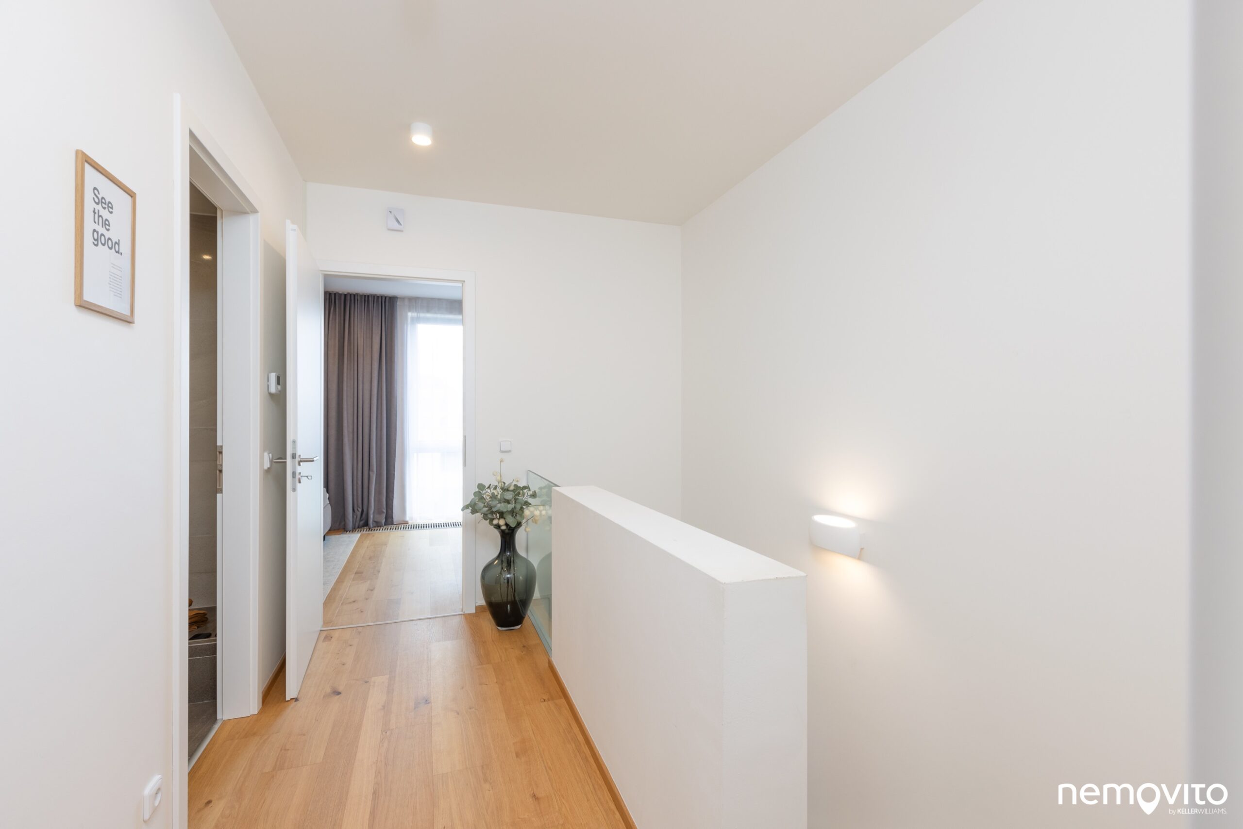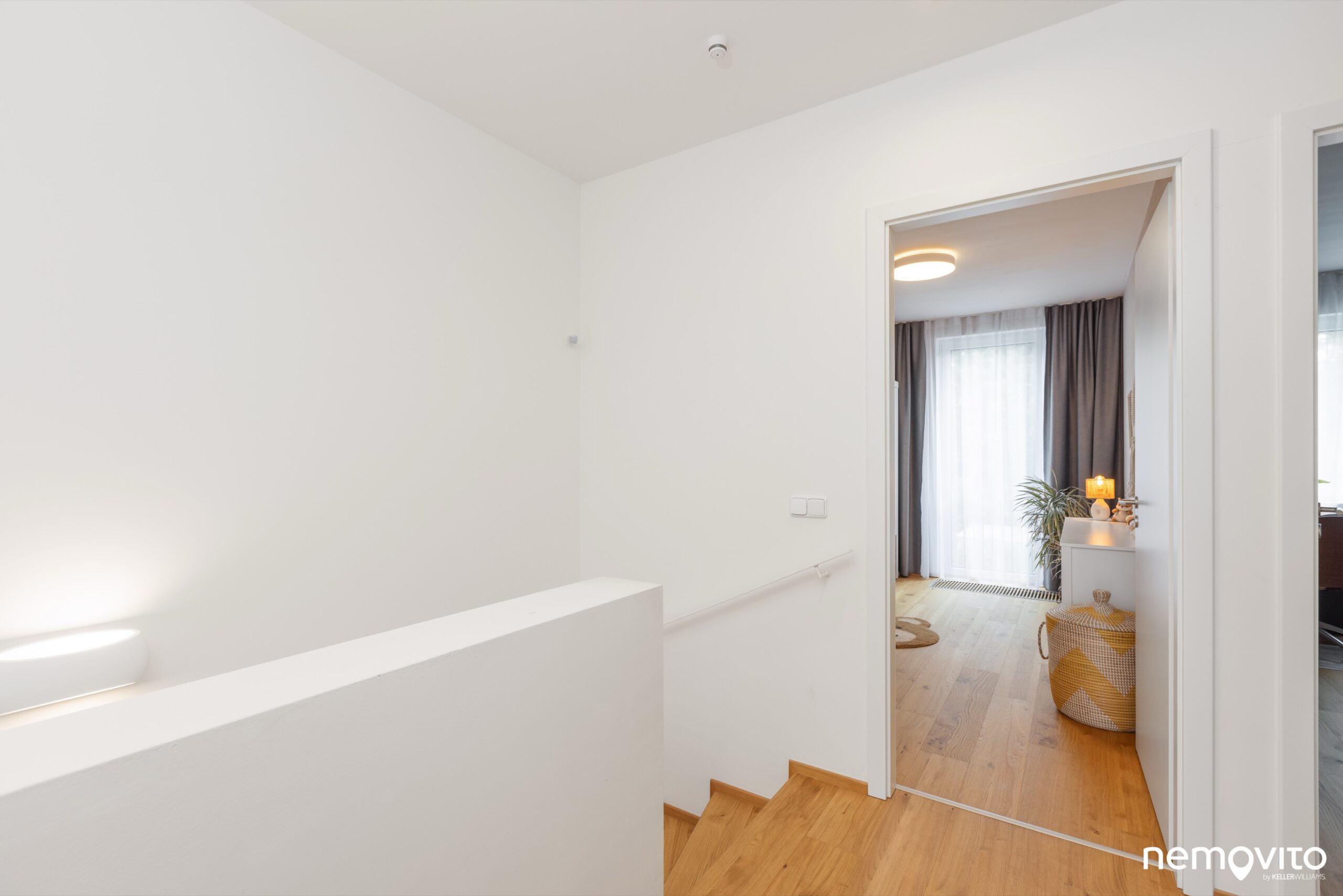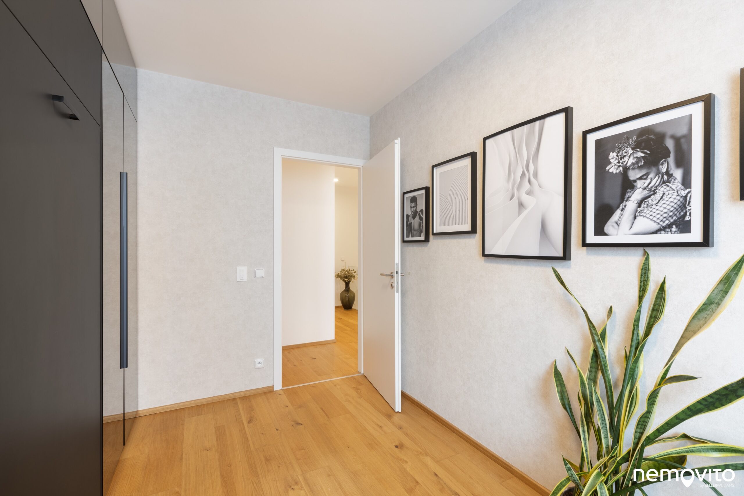 Nejen 4 stěny, ale rovnou celý domov. Tento špičkově vybavený dům, ve kterém proti původnímu standardu nezůstal kámen na kameni, totiž pořizujete přesně tak, jak ho vidíte. Včetně veškerého nábytku. Majitel si pouze odveze kufry s osobními věcmi a stejně tak můžete postupovat i vy. Okamžitě ready, ve špičkovém stavu. A na perfektním místě v projektu, který získával ceny od odborné veřejnosti. Řadovky sice klamou tělem, ale v tomto případě je překvapení dvojnásobné. Kdo by čekal v řadovce takhle obří garáž? Nebo obývák, jehož plocha je skoro 50 m2? Dispozice, která vznikla dle aktuálních potřeb a standardů, nabízí vše pro život moderní rodiny. Soukromá zóna ložnic je až nahoře, vaše návštěva tak nemusí narušovat privátní provoz vaší rodinky. Ponožky tak klidně nechejte poházené kolem postele, ale byla by to přece jenom škoda. Ta krásná dřevěná podlaha by měla zůstat na očích. A co teprve ta kuchyně. Ta by rovnou mohla na titulku magazínu o bydlení.