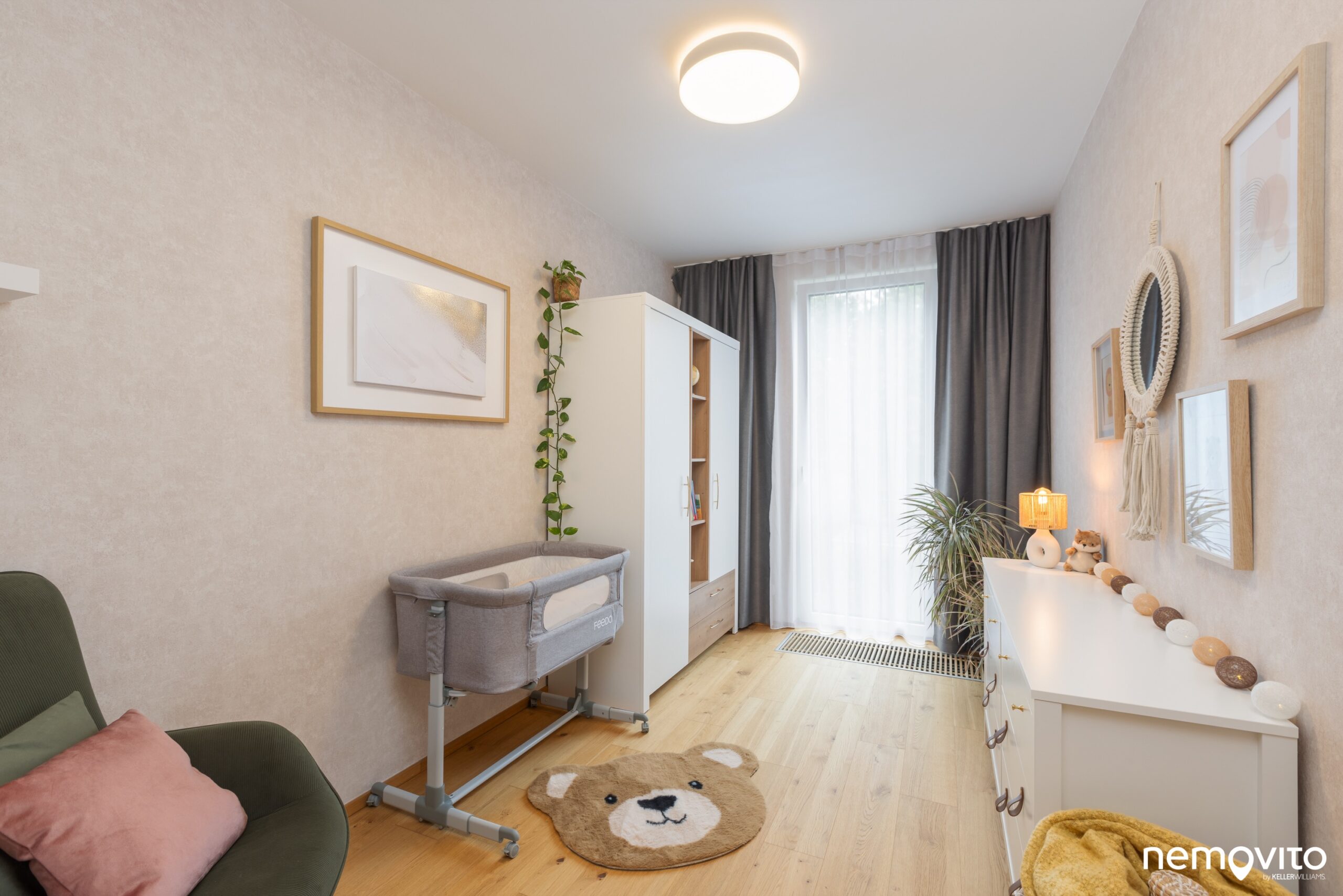 Prvním pokoje je dětská ložnice, která má velikost lehce přes 10 m2 a orientaci směrem do zahrádky.