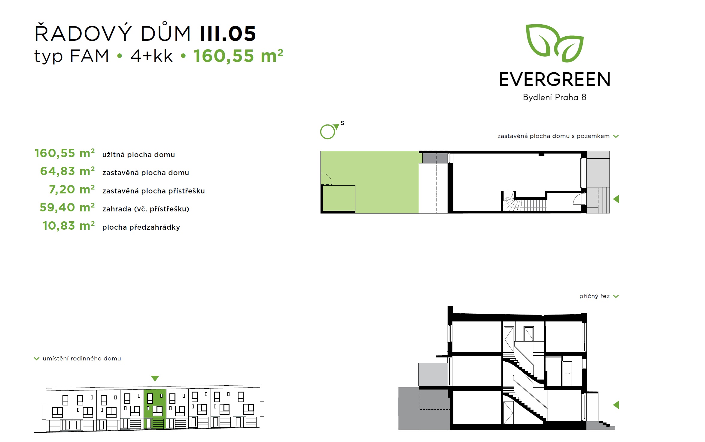 Ačkoliv jsou Ďáblice periferní částí Prahy a bokem jsou, místo bokem rozhodně nenechám. Kdo byste to tady náhodu neznal, tak vězte, že tu stojí jedna z mála pražských hvězdáren. Od domu k ní doputujete ani ne po kilometru. A rovnou navážete na rozlehlý Ďáblický háj, ve kterém můžete celé odpoledne běhat s dětmi nebo se psem. Přitom ale pořád zůstáváte v hlavním městě a na dvě nejbližší stanice metra (Ládví a Střížkov) je to 3,5 km. Kolem domu vás nečeká žádný ruch, protože lokalita není průjezdná a silnice slouží pouze jako obsluha okolních domů. Děti si tak v klidu mohou hrát na ulici a vám nebude třeštit hlava ani z obav o ně, ale ani z jakéhokoliv hluku. Zkrátka ideální místo k bydlení pro rodinu, která nechce do velkého samostatného domu, ale hledá proti bytu vyšší komfort. Větší užitnou hodnotu a v rámci Prahy chce zůstat, nicméně raději na okraji a mimo městský blázinec. Pokud to tak máte, pak bude Evergreen to správné místo pro vás.